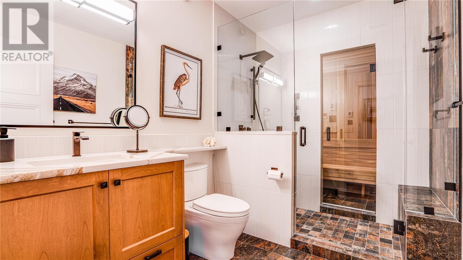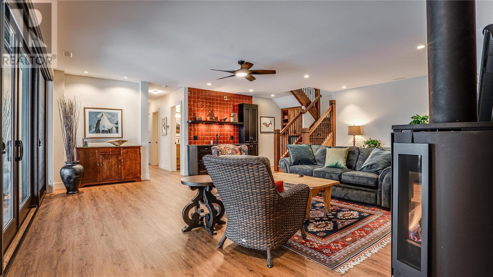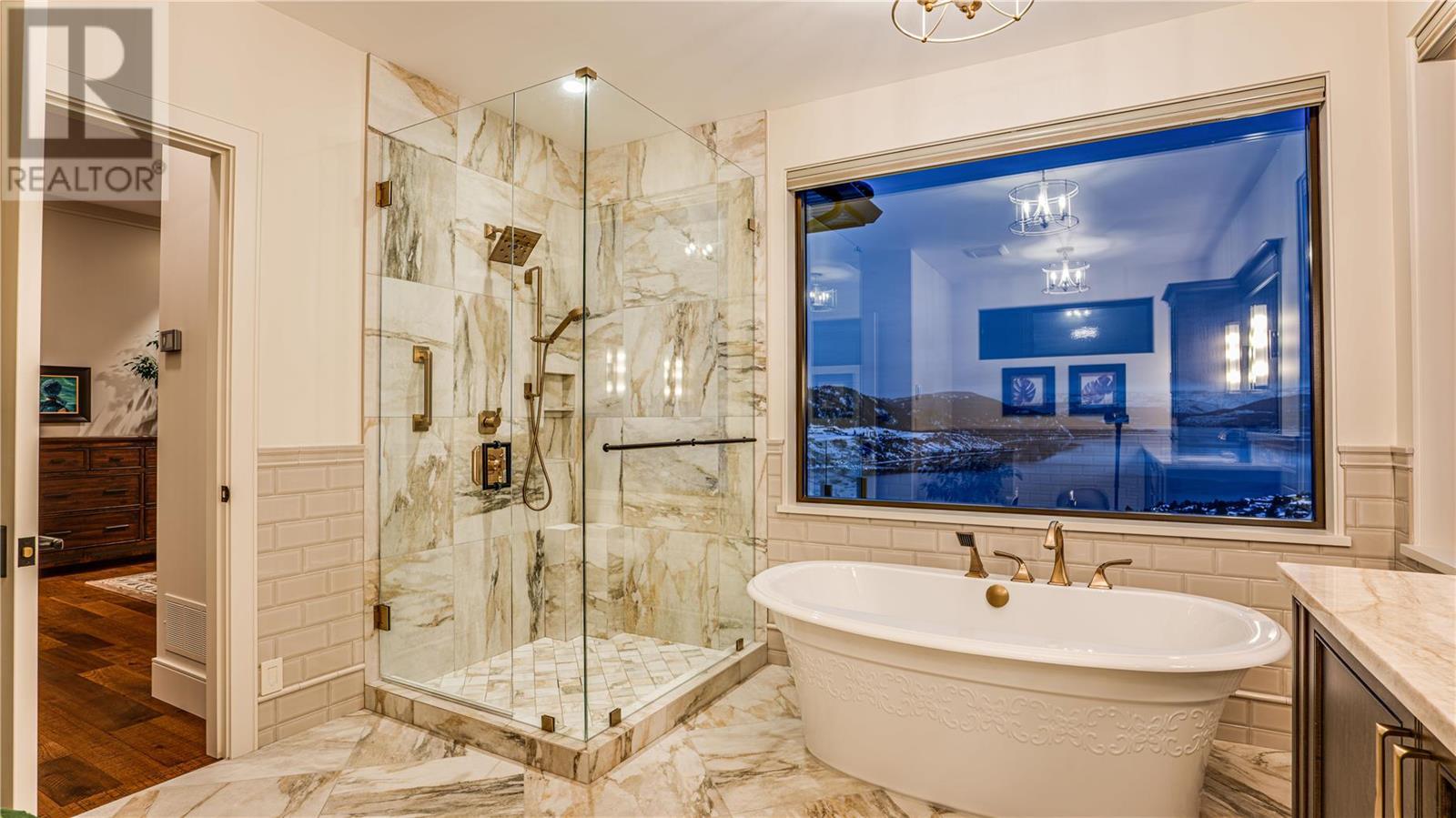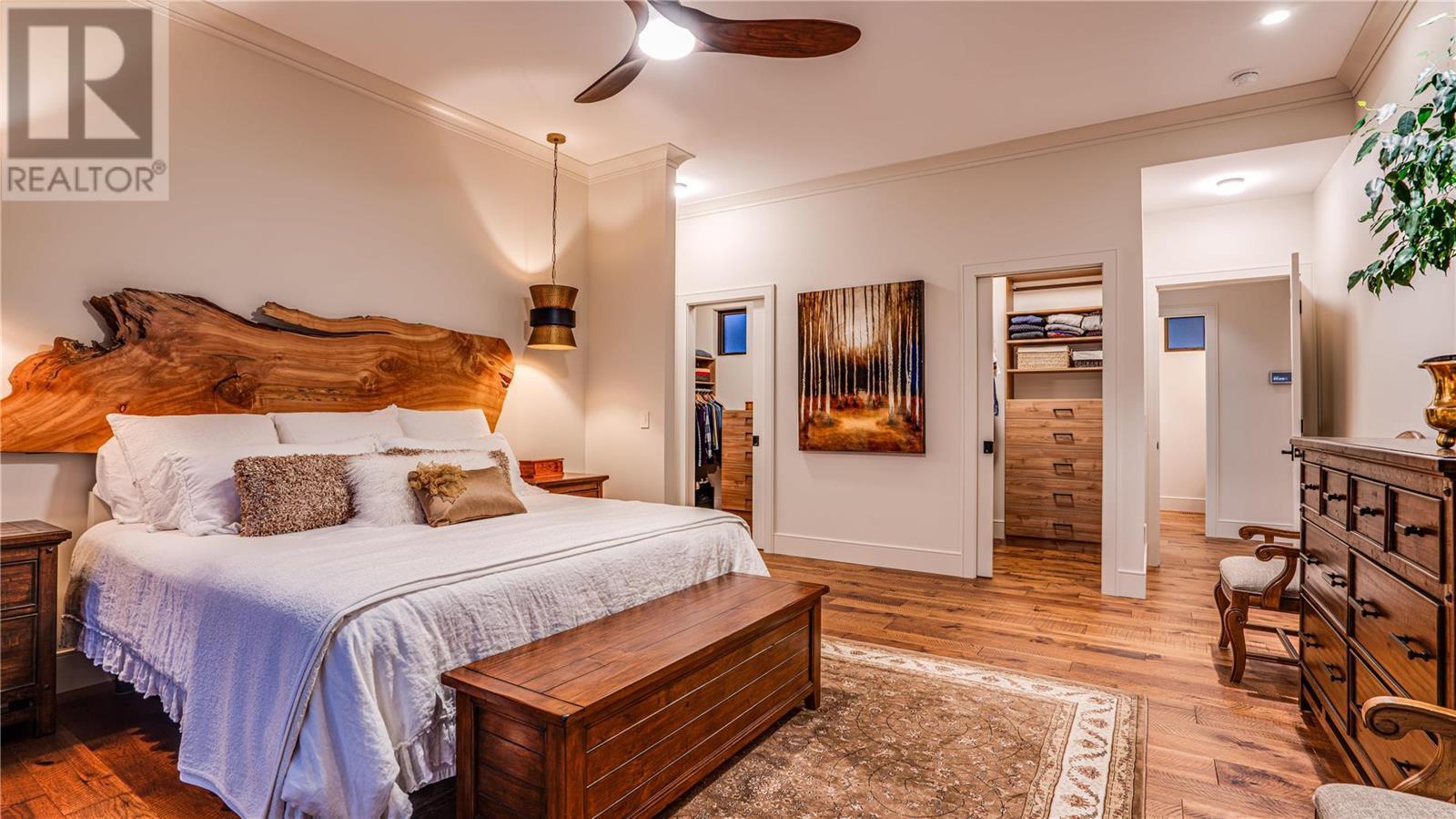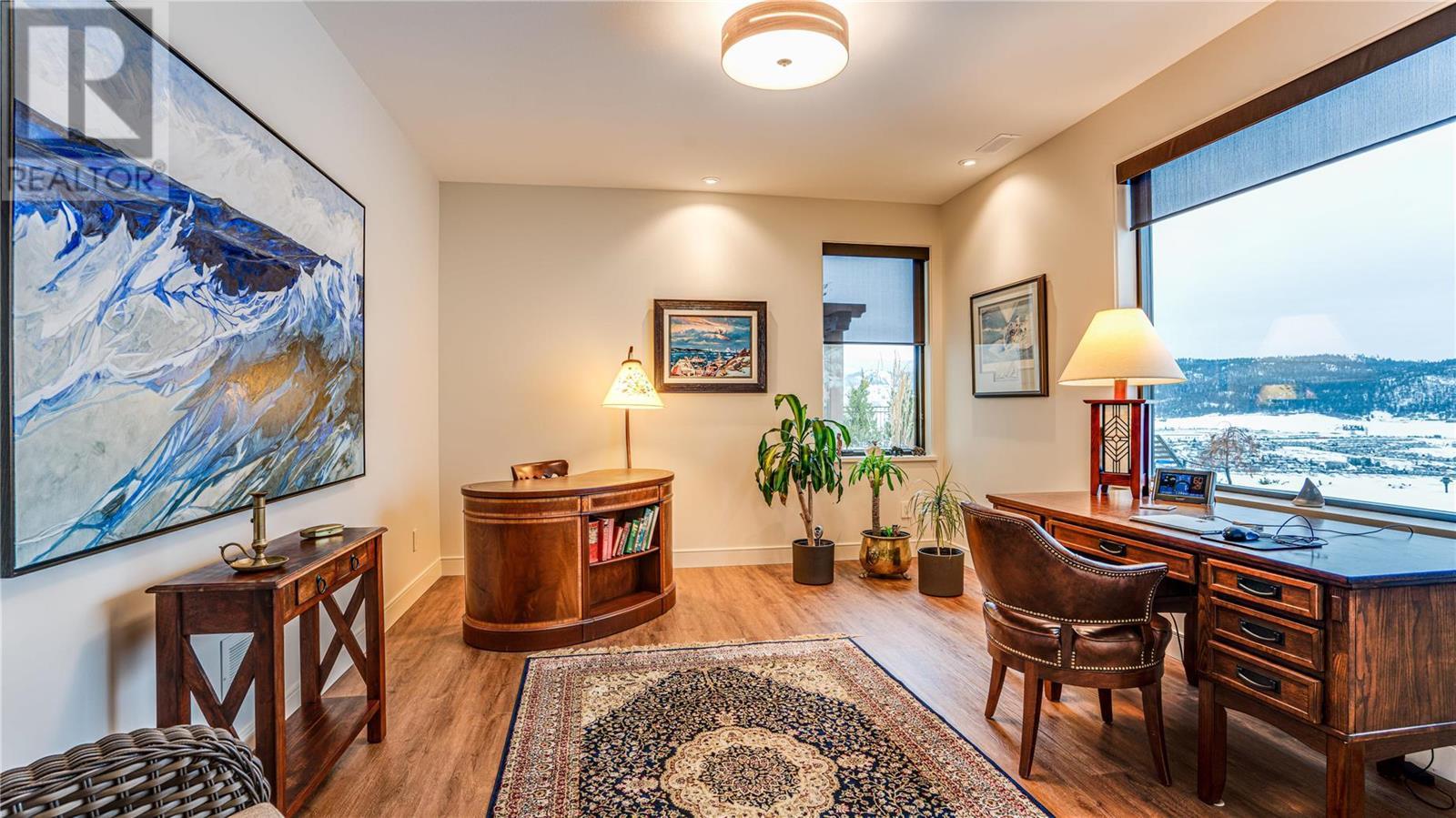 Perched above Okanagan Lake, with breathtaking unobstructed views awaits this spectacular property within a gated community that prioritizes both indoor and outdoor living and entertaining. Inside, a large open-concept layout awaits with exposed beams and natural hickory hardwood flooring. A gourmet kitchen with state-of-the-art appliances with custom made cabinetry stands adjacent to the living area with handsome natural stone-faced gas fireplace. Doors from this area lead directly out to the upper deck, ideal for seamless grill parties and al fresco dining. A main floor master suite comes complete with his and hers walk-in closets and spa-like ensuite bathroom with-in floor heating, soaker tub, walk-in glass shower and under counter motion activated lighting. Further extras on this level, include a two-piece powder room, large laundry room with great storage and a mudroom which doubles as a butler’s pantry. The lower level boasts a massive family room, complete with free standing gas fireplace, wet bar with drawer dishwasher and wine fridge. From this space, access the covered patio with sunken hot tub and impressive inground salt-water pool. Three additional bedrooms on this level combined with a bonus room and full bathroom with sauna to offer space for larger families and guests. Located within The Watermark at The Rise, this fabulous property offers access to incredible amenities for the golf enthusiast. (id:22211)