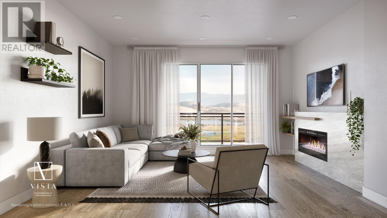 Welcome to Vista Condo unit 204, your new home at Predator Ridge. This 2 bedroom 2 bath home has 1272 square feet of luxury indoor living space and a spacious 284 square foot balcony, ample room to sit back and enjoy the gorgeous surroundings. Currently in construction by award-winning Carrington Communities, the unit features a chef-inspired kitchen with upgraded quartz waterfall countertop, sleek stainless-steel appliances and a spa-like bathroom with double vanity, undermount sinks and walk-in closet. Exclusive amenities include on-site pool and hot tub overlooking the stunning landscape beyond, a private social lounge with kitchen, stone fireplace and patio and conveniences such as a bike storage room, dog wash station, and golf cart parking. Homeowners at Vista Condominiums have the added benefit of having access to world-class Predator Ridge amenities, including 2 award winning golf courses, golf practice facility with driving range, putting greens and chipping area, access to over 75 kms of hiking and biking trails, fitness centre with 25 metre lap pool, a variety of restaurants, boutique racquet club, outdoor yoga platform and more. Photos are representative. (id:22211)