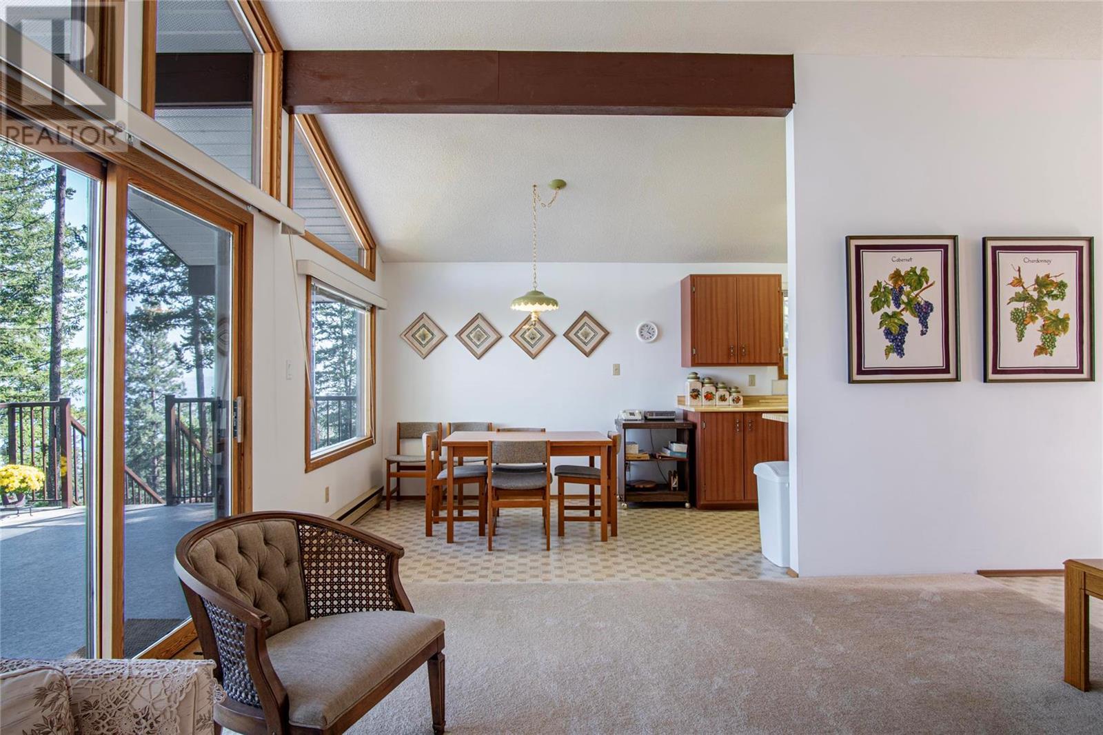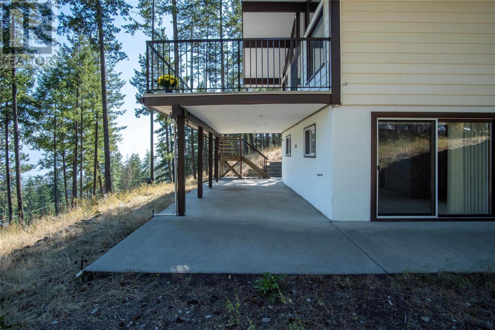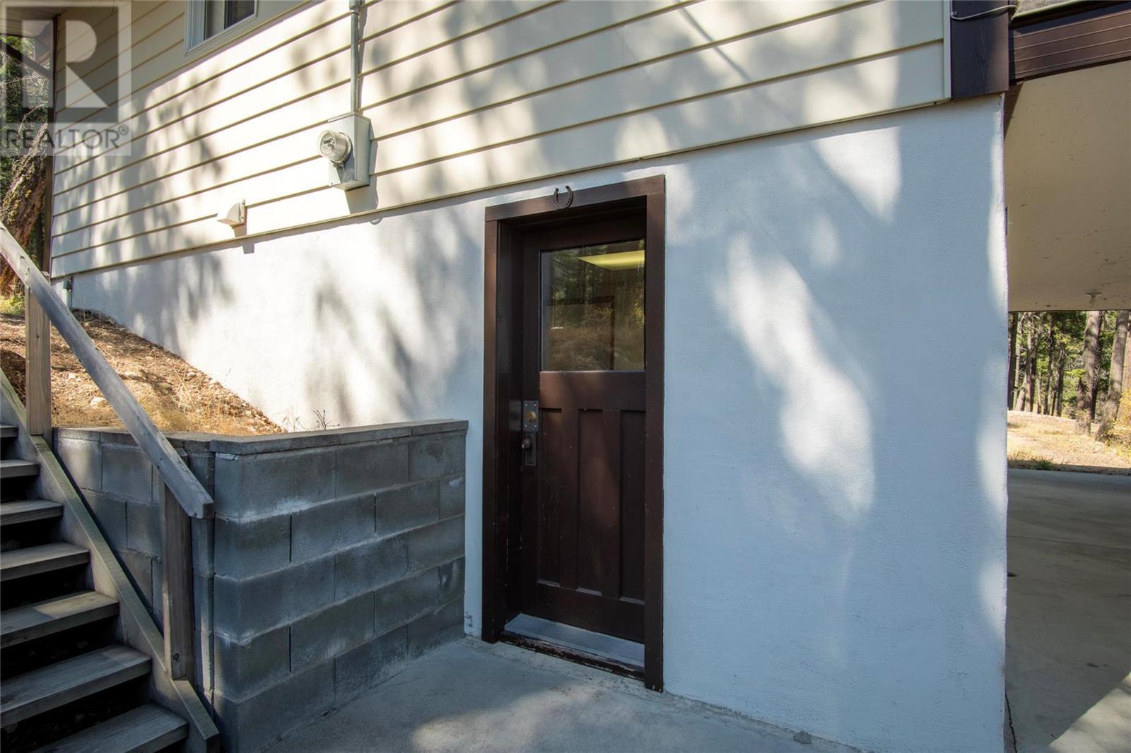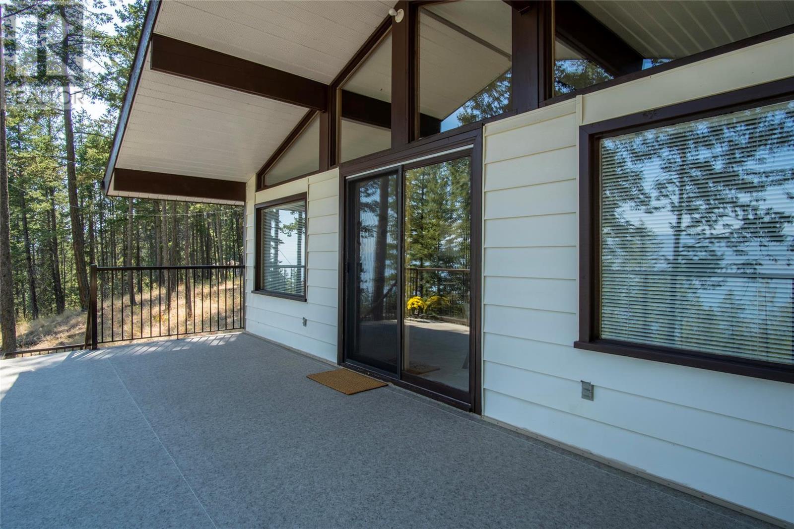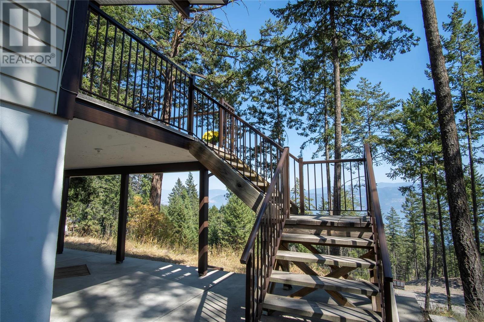 Nestled in a peaceful, park-like setting and surrounded by stately tree growth, this serene retreat boasts floor to vaulted ceiling windows and an open-concept layout that brings the outside in and showcases incredible Lake and Mountain views. Minutes from three separate boat launches, crown land, and numerous trail systems, the property would make an ideal second home for the recreational enthusiast. On the main floor, a light-filled living and dining/kitchen area overlooks Okanagan Lake, with direct access to a large deck for entertaining. A single bedroom on this level shares a full hall bathroom with guests. Below the main floor, the finished walkout basement level contains the second bedroom and full bathroom, as well as a bonus family room. From this level, you can access the covered lower patio with stairs leading up to the main floor deck. Positioned on a level, 0.64-acre lot with a sloping driveway, this home offers just enough space to provide privacy while remaining low-maintenance for a seasonal residence. (id:22211)