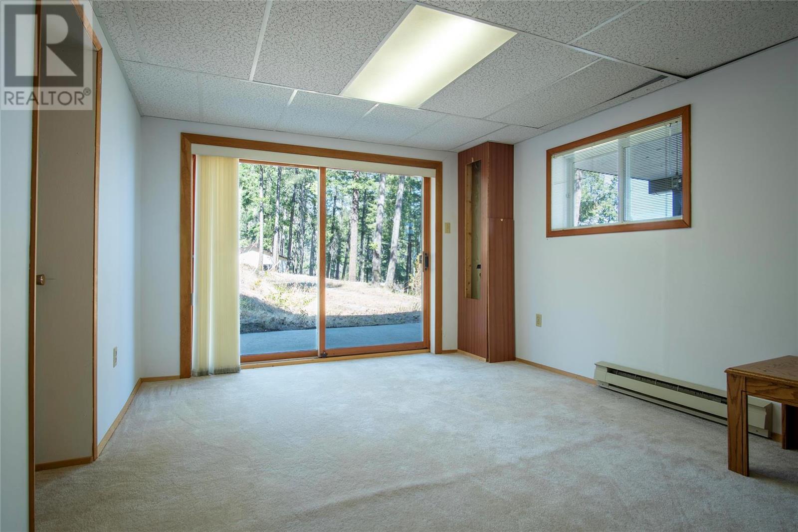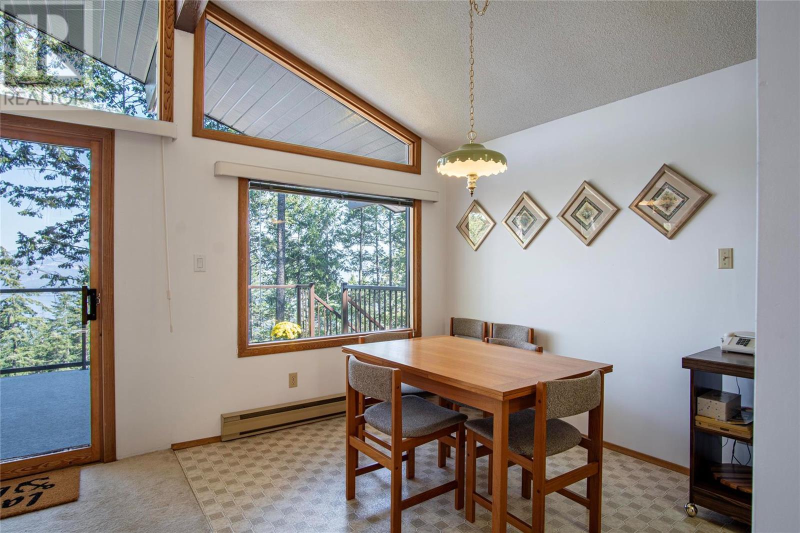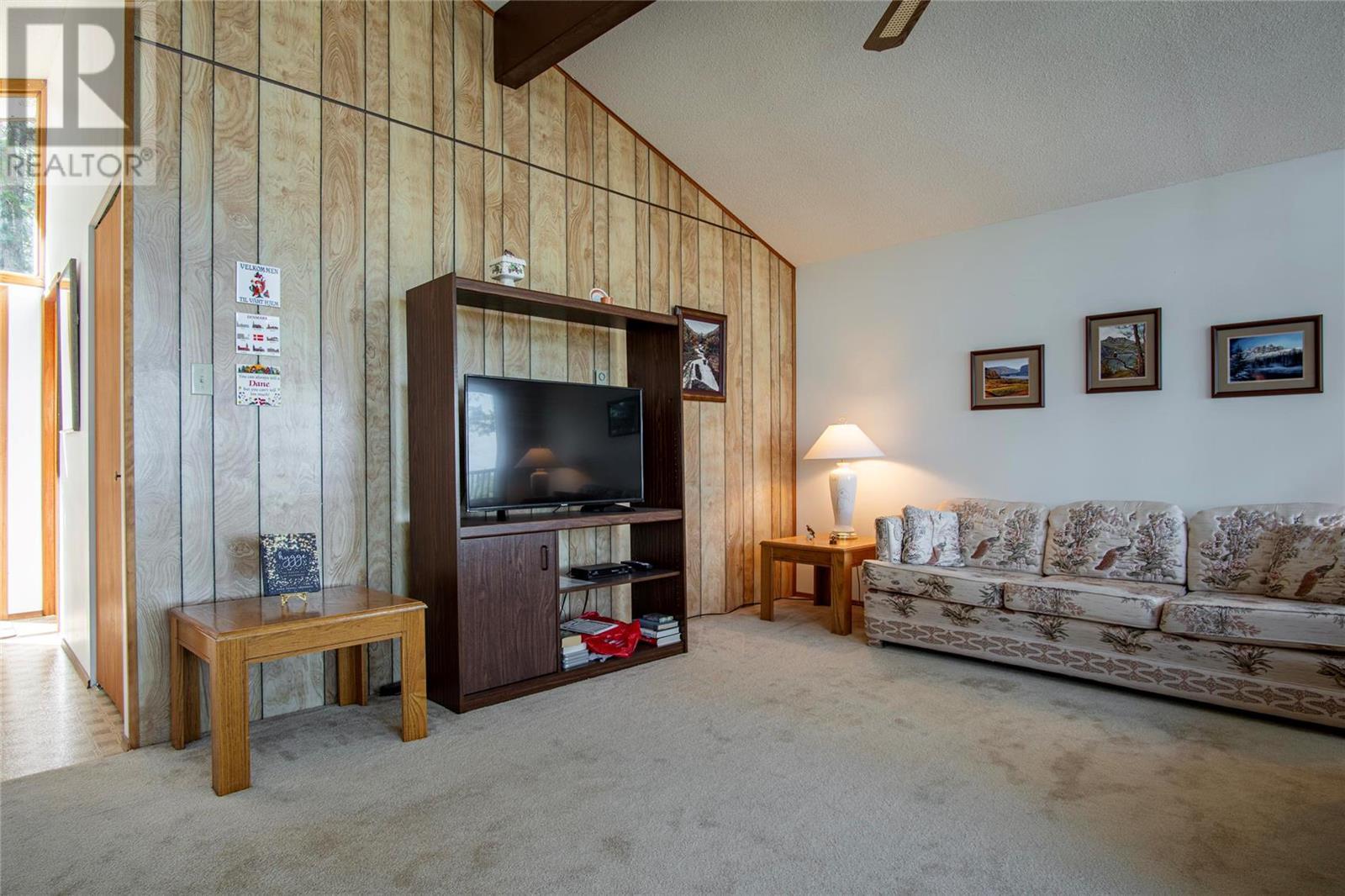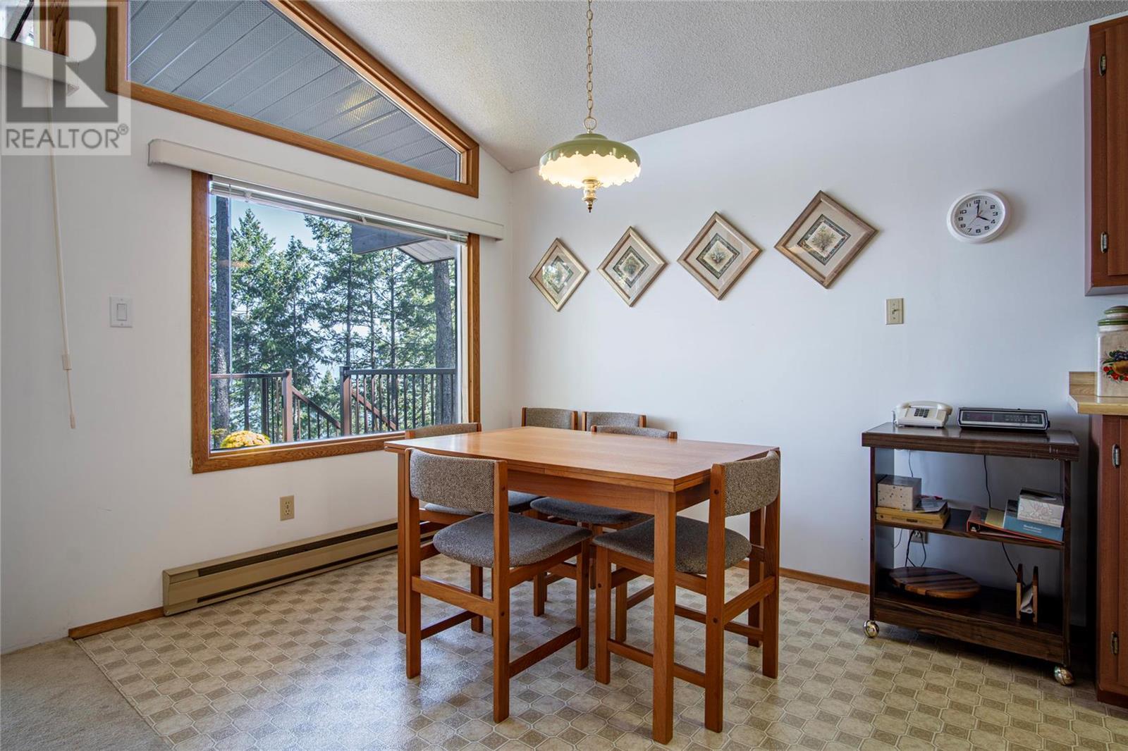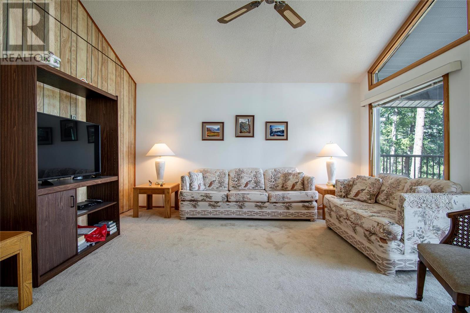 Nestled in a peaceful, park-like setting and surrounded by stately tree growth, this serene retreat boasts floor to vaulted ceiling windows and an open-concept layout that brings the outside in and showcases incredible Lake and Mountain views. Minutes from three separate boat launches, crown land, and numerous trail systems, the property would make an ideal second home for the recreational enthusiast. On the main floor, a light-filled living and dining/kitchen area overlooks Okanagan Lake, with direct access to a large deck for entertaining. A single bedroom on this level shares a full hall bathroom with guests. Below the main floor, the finished walkout basement level contains the second bedroom and full bathroom, as well as a bonus family room. From this level, you can access the covered lower patio with stairs leading up to the main floor deck. Positioned on a level, 0.64-acre lot with a sloping driveway, this home offers just enough space to provide privacy while remaining low-maintenance for a seasonal residence. (id:22211)