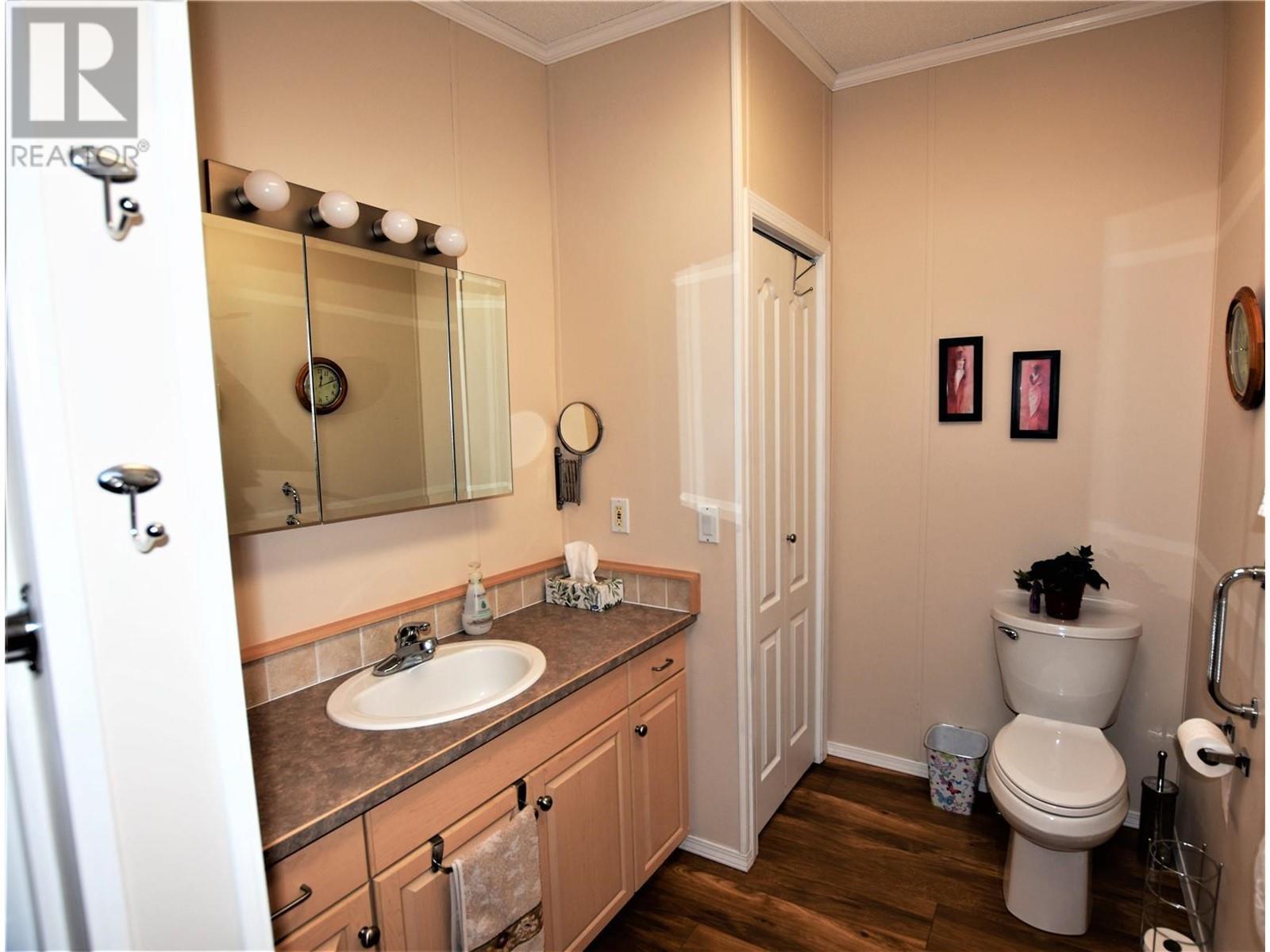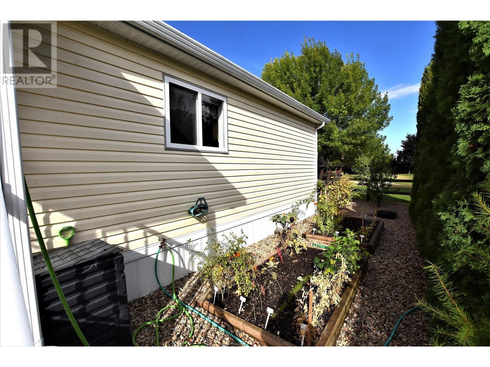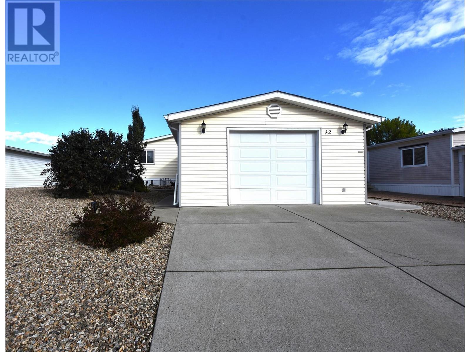 Welcome to unit 32 in Lawrence Heights a fabulous well cared for adult community. Very well maintained 3 bedroom 2 bathroom home backing onto dedicated parkland. Open plan main living area with newer flooring (about 2 years) throughout. Spacious kitchen with plenty of storage and stainless steel appliances. Dining area beside the kitchen will easily fit your large dining table with seating for 6 or 8. There are sliders beside the dining area that lead out to a covered back patio for ease of BBQing. The master bedroom will accommodate a king sized bed and is completed with a 4 piece en-suite. Bedroom 3 has french doors and also substitutes as an office. Other features included a water softener, heat pump for heating and cooling, attached double garage with storage room at the back of it, RV plug and a sani dump. Roof is about 2.5 years old, hot water tank about 2 years old. Pad rental is $388 per month. Pets allowed with park manager approval. Up to two medium dogs. Less than 15 minutes from town and 5 minutes to the golf course. (id:22211)