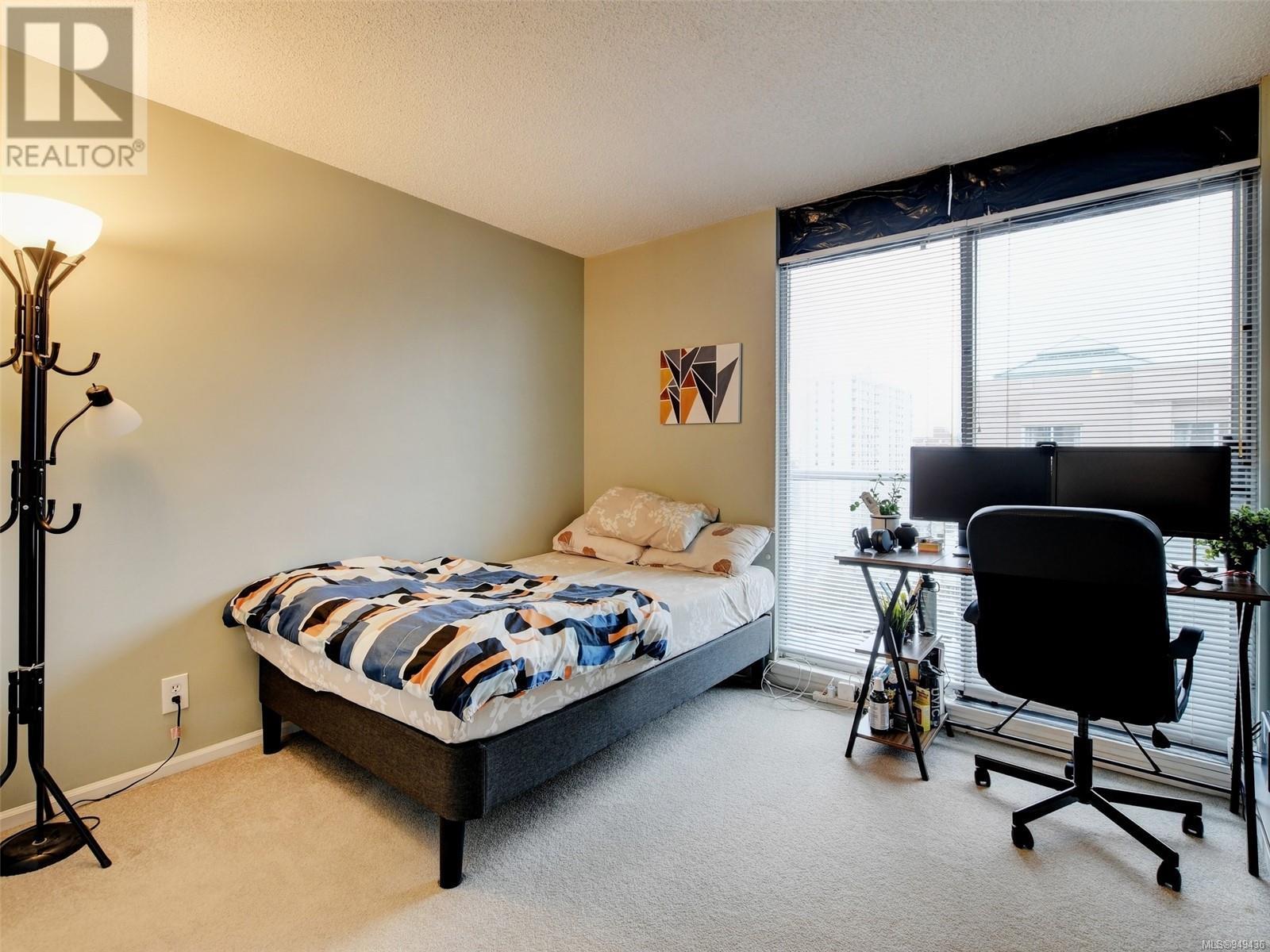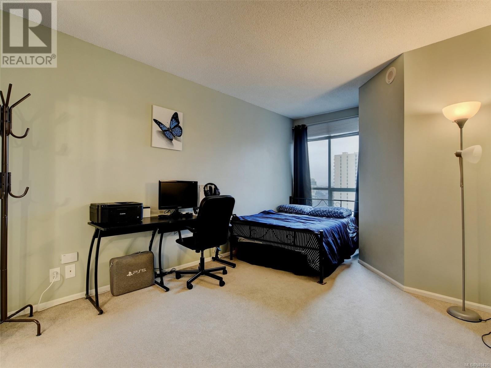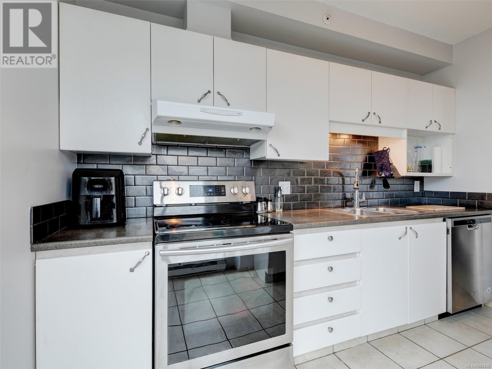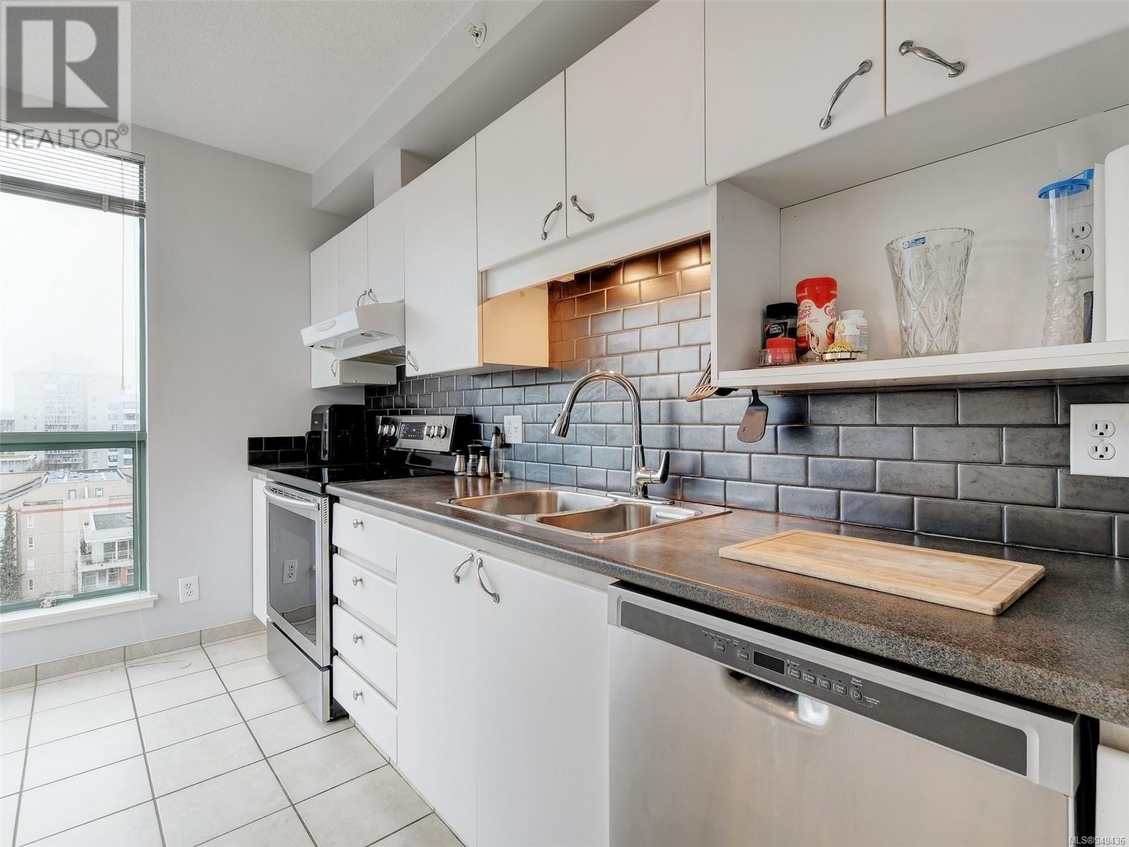 Perched high up on the 11th floor with views to the west, south and north, this roomy 2 bedroom, 2 bathroom condo is bright, clean & ready to move into. Fantastic open design, floor to ceiling windows, chic kitchen with S/S appliances & ceramic backsplash, eat-in kitchen plus dining room, plenty of closet space throughout including a walk-in laundry room, and a huge balcony with sweeping views. Regents Park is a rare large-lot development with ample green space & Visitor Parking, 2 steel & concrete buildings sharing a Fitness Centre, Hot Tub, bright & modern Lounge, a Workshop for all of your projects. Includes a storage locker, bike storage, secure underground parking (EV-ready subject to Strata approval), small dog or cat permitted. Step out the lobby door to essential amenities, boutiques & dining located right within your own Harris Green neighbourhood or walk a few blocks to Downtown Victoria, Cook Street Village, Dallas Rd or Beacon Hill Park. (id:22211)