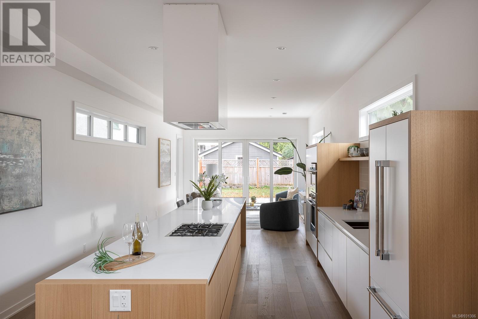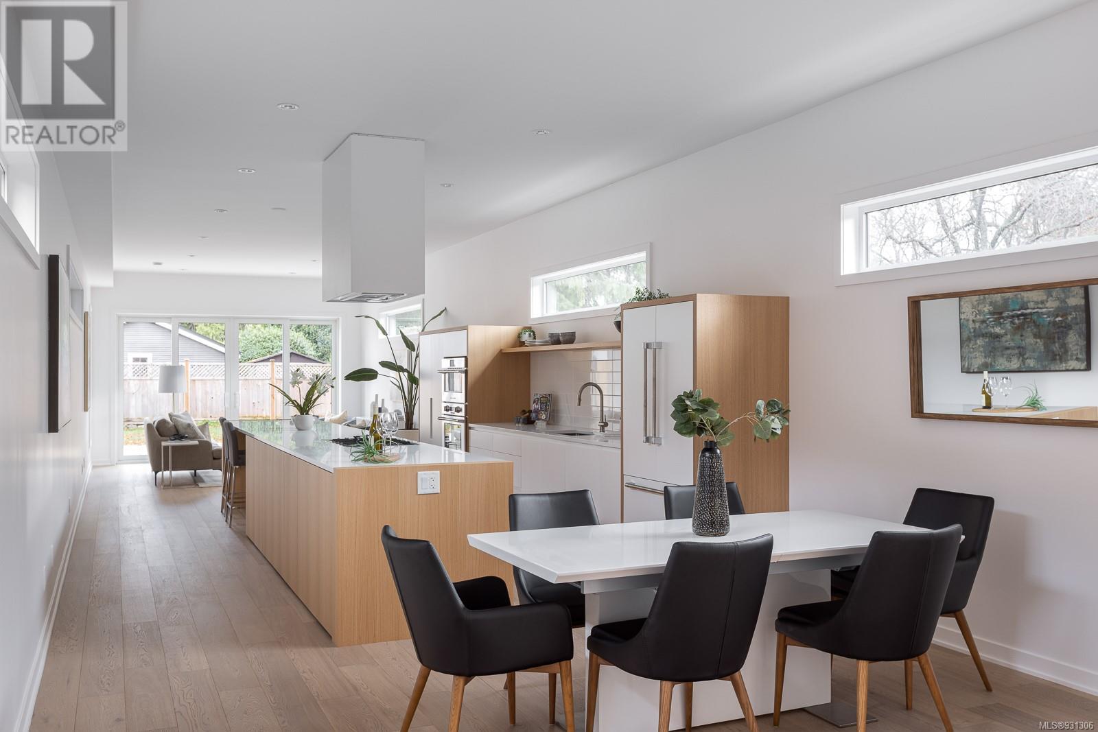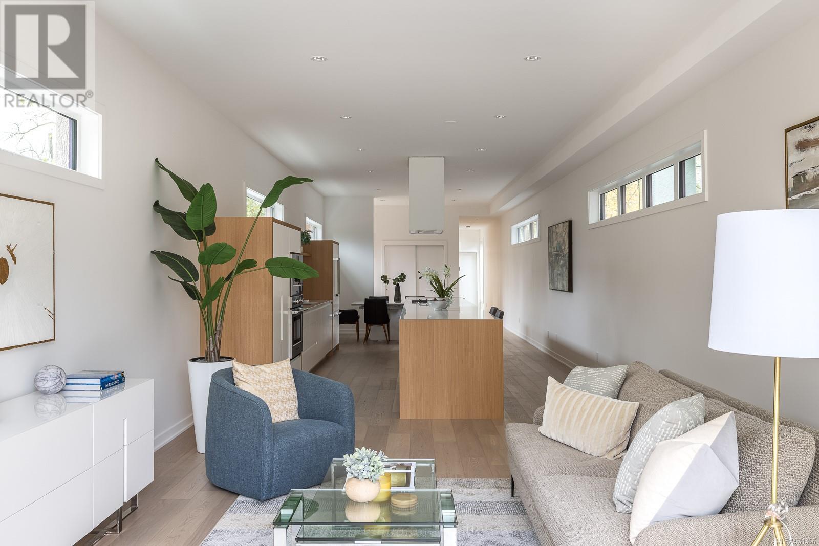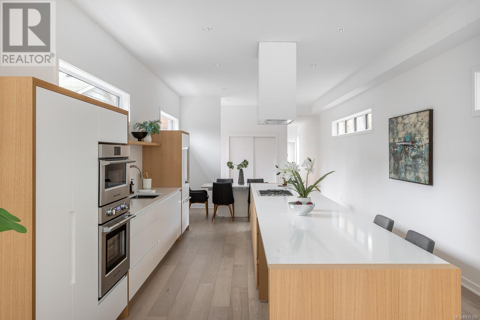 Neslted in amongst Rocklands finest, this new modernistic build designed by dHKarchitects features an open concept layout with an abundance of windows to bring in the natural sunlight complimenting the light and tranquil colour palette. Built to the highest standards, this beautifully crafted home features 10-ft main level ceilings, radiant in-floor heating throughout and custom millwork by Jason Good. Perfect for entertaining, the chef's kitchen showcases an oversized island with a built-in gas range, state-of-the-art finishings and Fisher Paykel appliances. You will love the luxurious primary bedroom with private balcony, spa-like ensuite with stylish heated tile floor and walk-in closet with a centre island and built-in organizers. Additionally, upstairs you will find two more bedrooms with a jack-and-jill bathroom and a family room with a second balcony. Centrally located in a desirable area, close to Oak Bay Avenue, Craigdarroch Castle, Government House, Downtown, and much more. (id:22211)