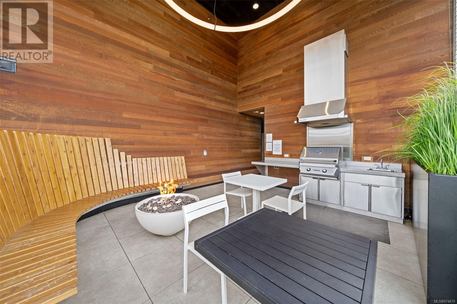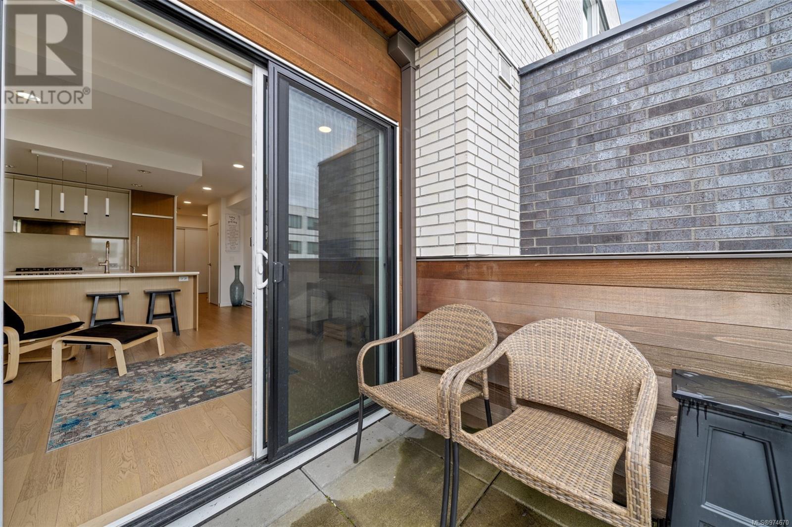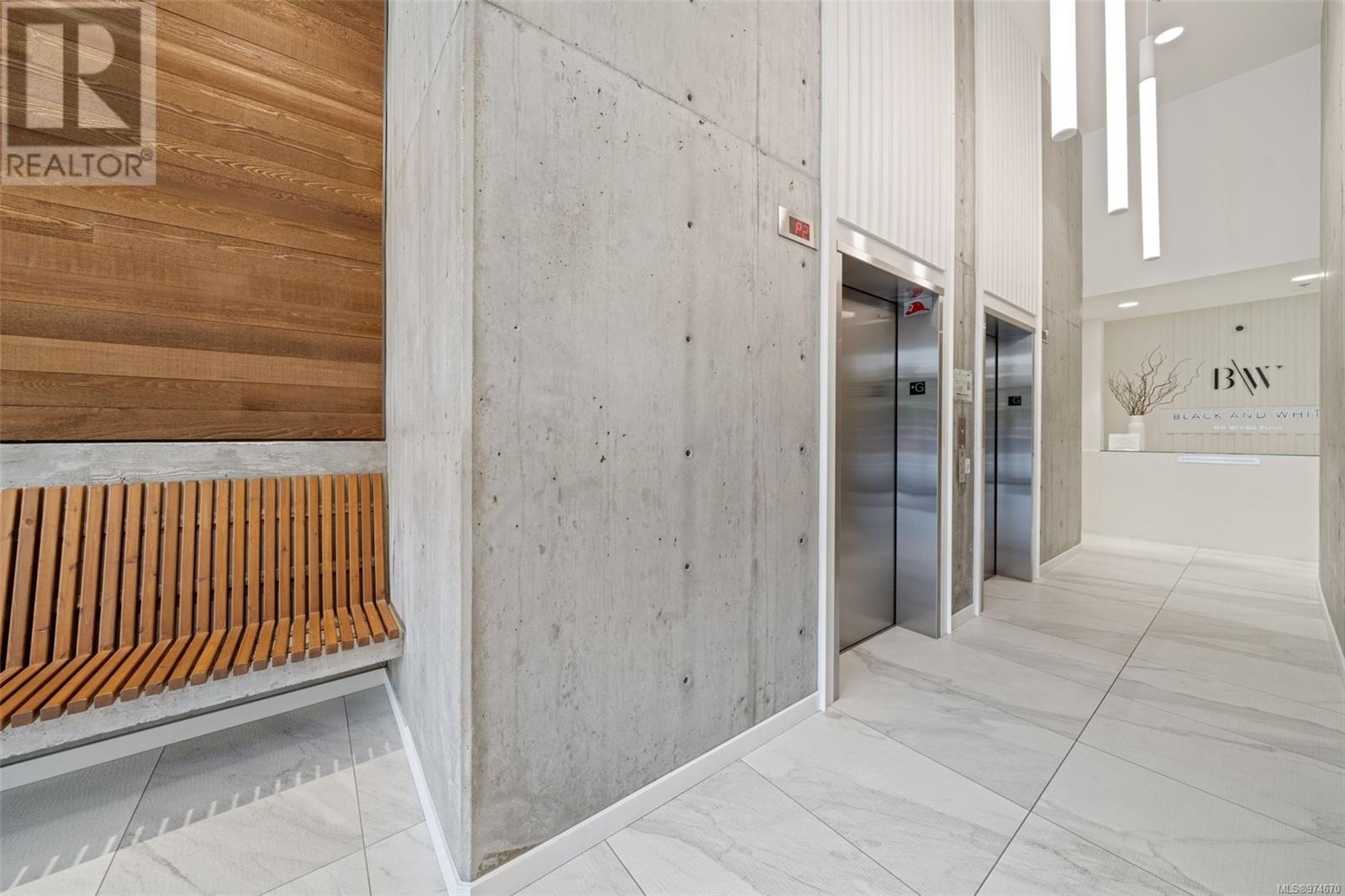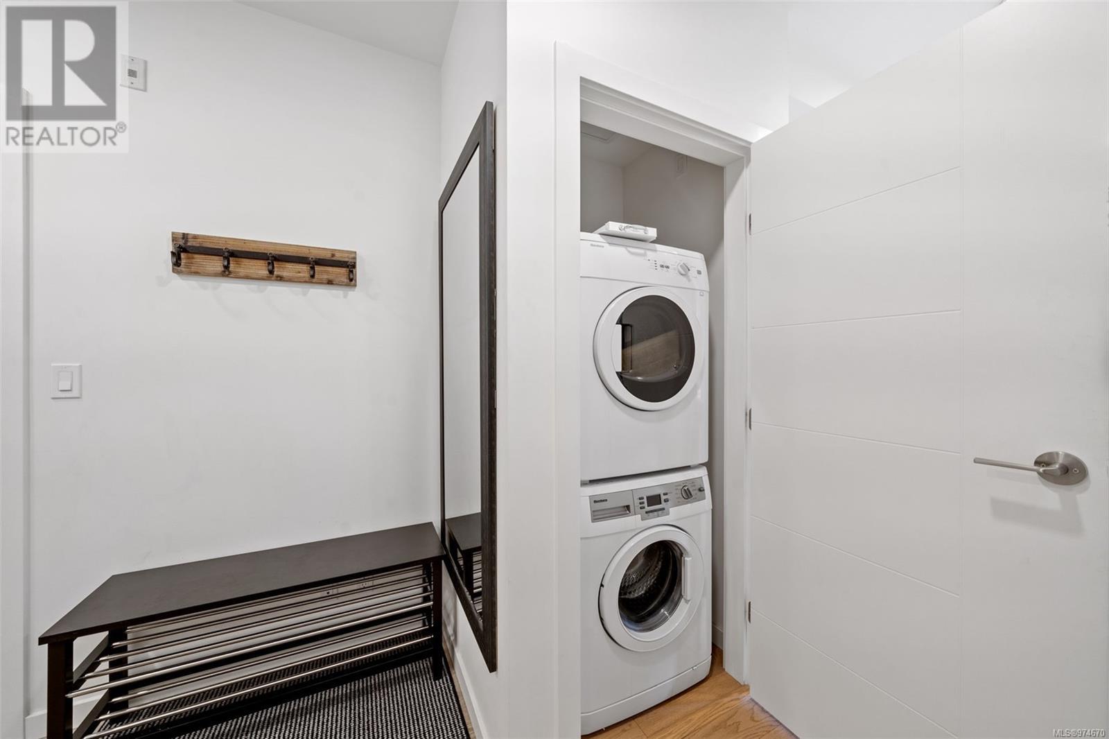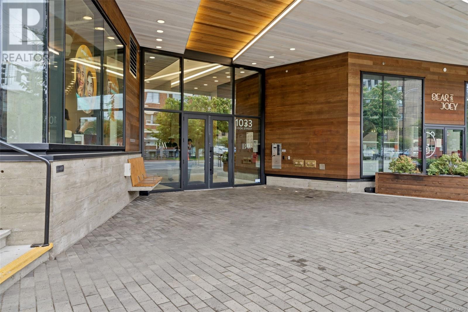 Welcome to the Black and White, a boutique collection of residences by award-winning Abstract Development. Located on the edge of Cook Street Village this contemporary one-bedroom apartment harmonizes modern and timeless design elements and the location provides convenient access to all that downtown Victoria has to offer. This stylish living space spans 537 sq.ft. showcases high-end integrated appliances including a gas range, quartz countertops, hardwood flooring, in-suite laundry, storage, and PARKING. The luxurious spa-like bathroom features a rain shower and heated floors, adding a touch of opulence. Step outside onto the delightful two-person patio, ideal for savoring a morning coffee or enjoying a relaxing evening breeze. This professionally managed building includes a community patio with a fire pit and BBQ, bike storage, a dog wash room, & EV charging. (id:22211)