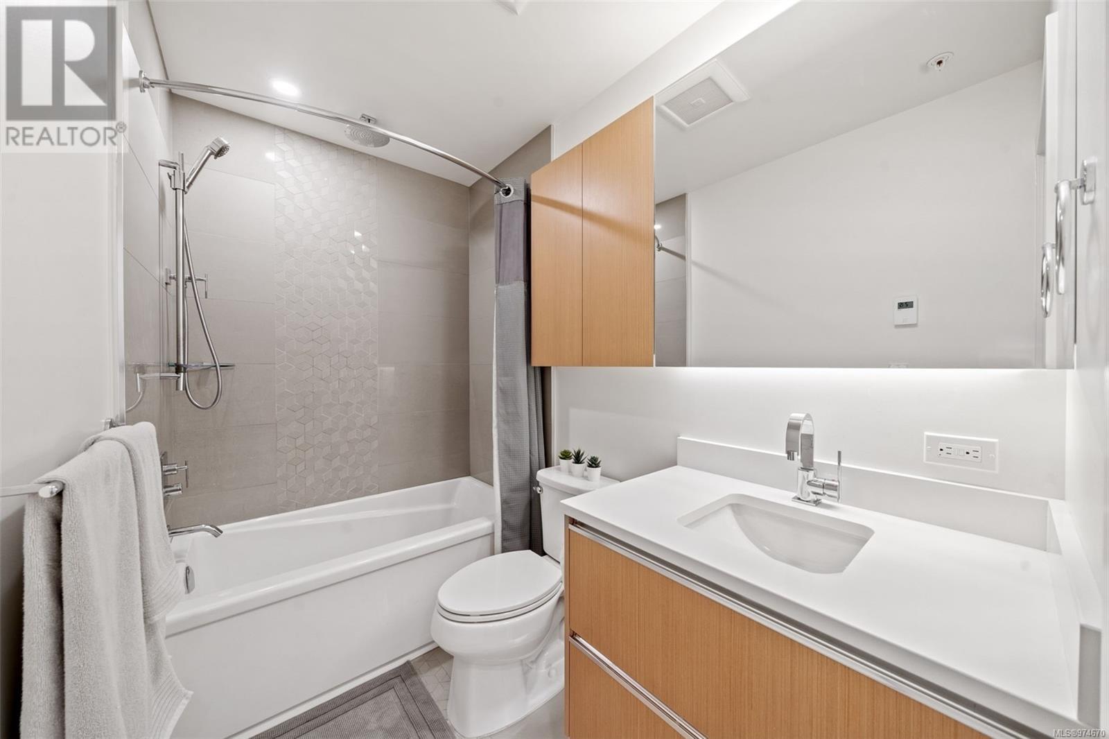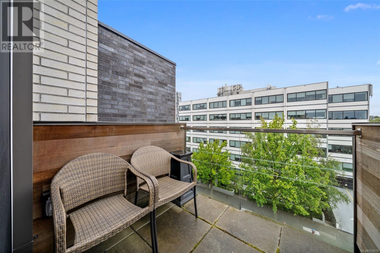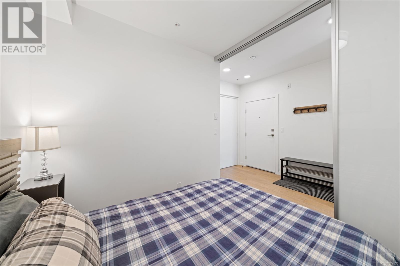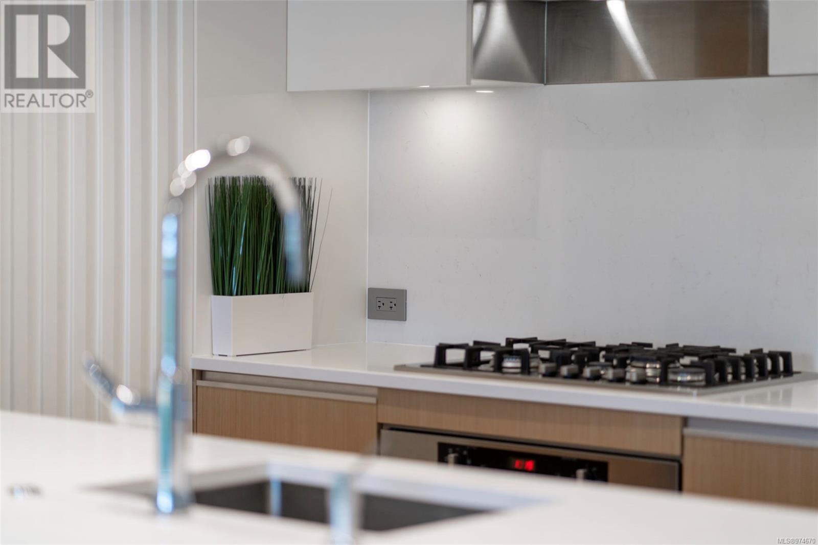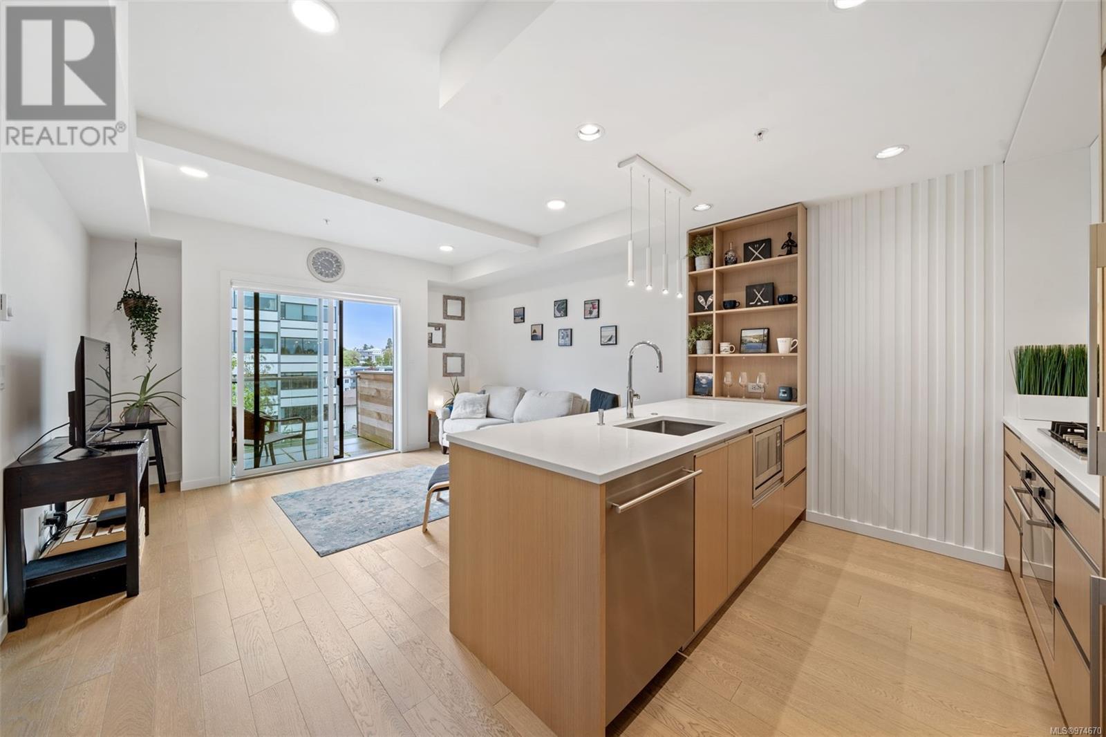 Welcome to the Black and White, a boutique collection of residences by award-winning Abstract Development. Located on the edge of Cook Street Village this contemporary one-bedroom apartment harmonizes modern and timeless design elements and the location provides convenient access to all that downtown Victoria has to offer. This stylish living space spans 537 sq.ft. showcases high-end integrated appliances including a gas range, quartz countertops, hardwood flooring, in-suite laundry, storage, and PARKING. The luxurious spa-like bathroom features a rain shower and heated floors, adding a touch of opulence. Step outside onto the delightful two-person patio, ideal for savoring a morning coffee or enjoying a relaxing evening breeze. This professionally managed building includes a community patio with a fire pit and BBQ, bike storage, a dog wash room, & EV charging. (id:22211)