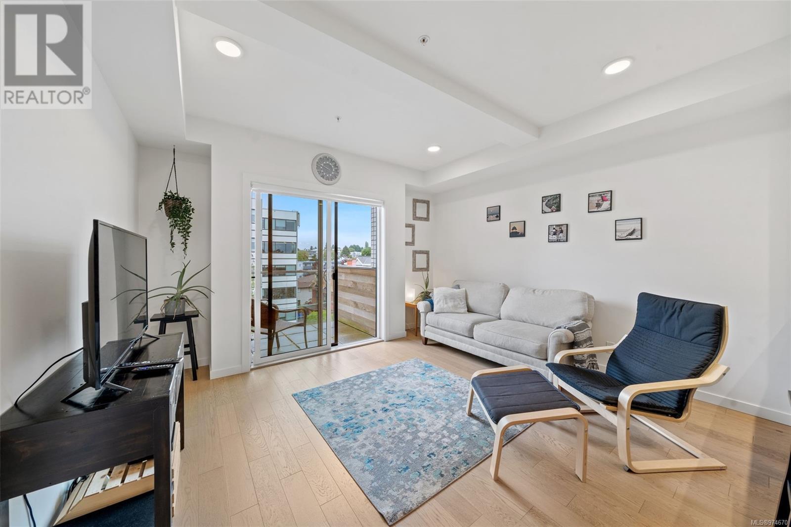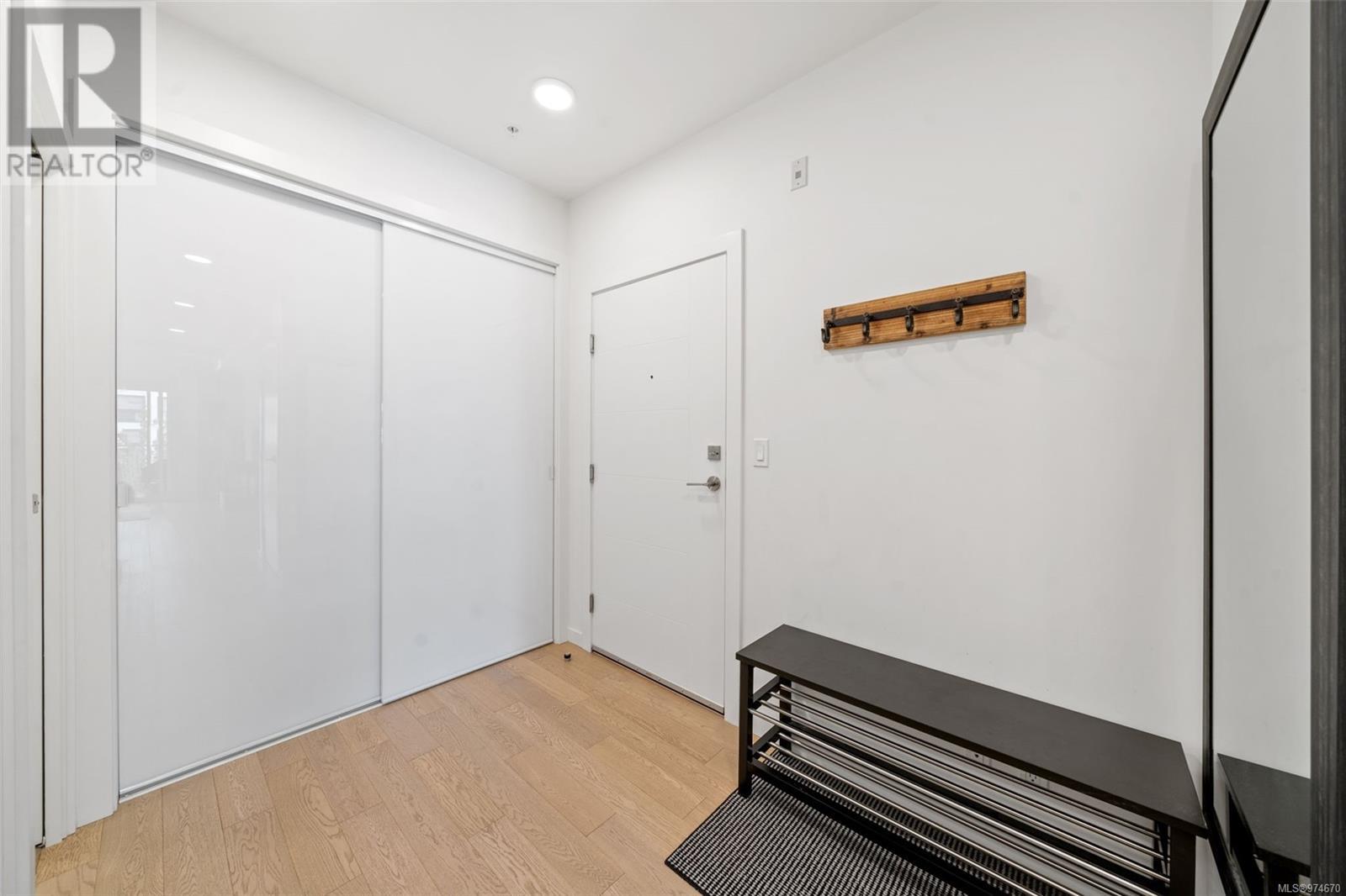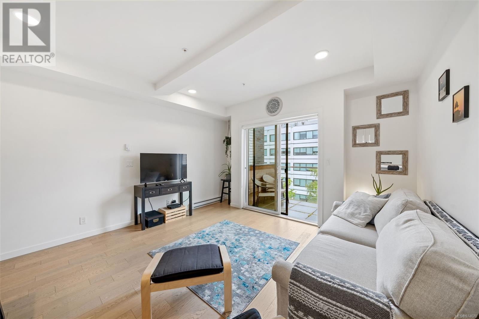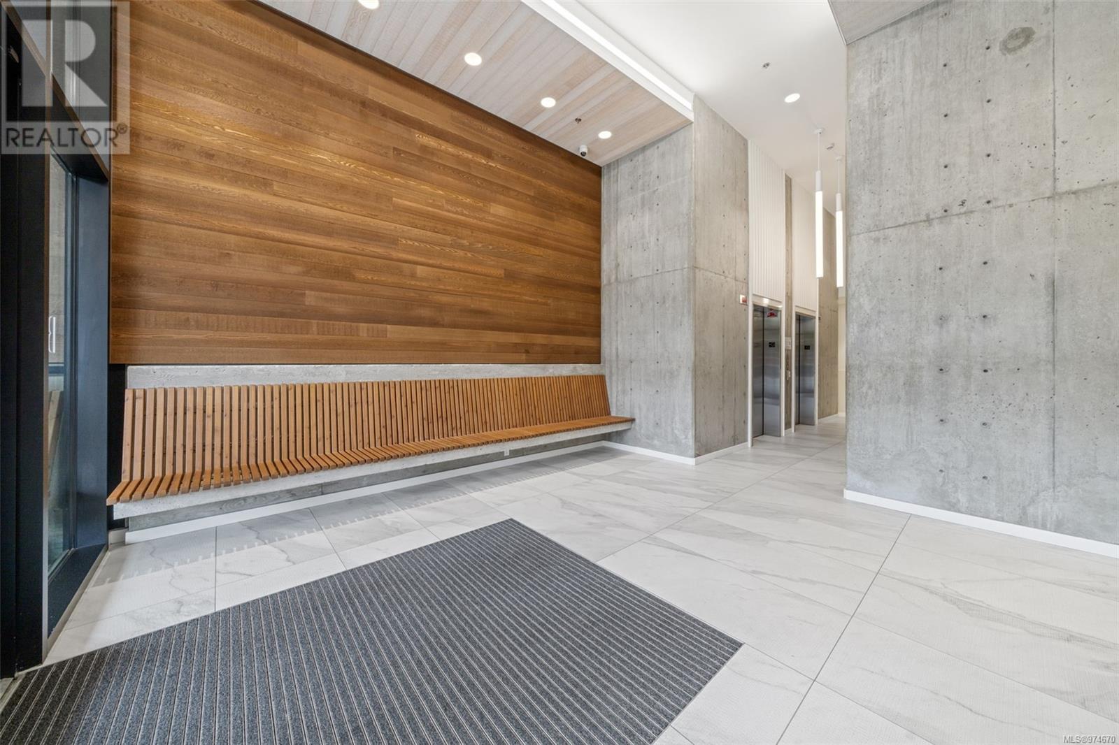 Welcome to the Black and White, a boutique collection of residences by award-winning Abstract Development. Located on the edge of Cook Street Village this contemporary one-bedroom apartment harmonizes modern and timeless design elements and the location provides convenient access to all that downtown Victoria has to offer. This stylish living space spans 537 sq.ft. showcases high-end integrated appliances including a gas range, quartz countertops, hardwood flooring, in-suite laundry, storage, and PARKING. The luxurious spa-like bathroom features a rain shower and heated floors, adding a touch of opulence. Step outside onto the delightful two-person patio, ideal for savoring a morning coffee or enjoying a relaxing evening breeze. This professionally managed building includes a community patio with a fire pit and BBQ, bike storage, a dog wash room, & EV charging. (id:22211)