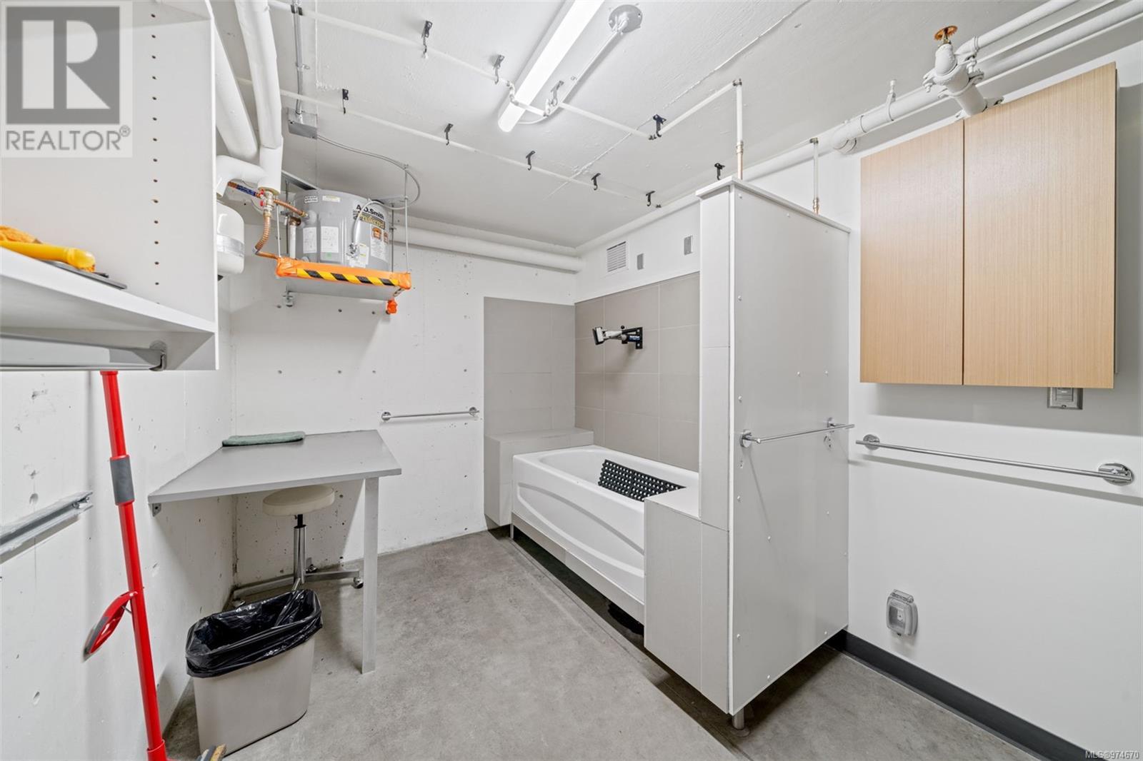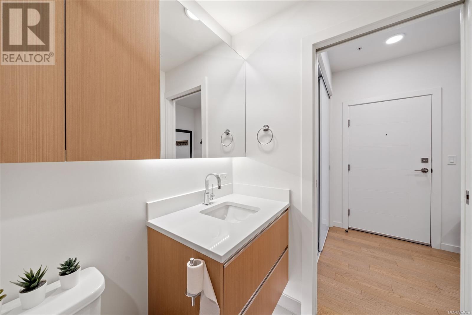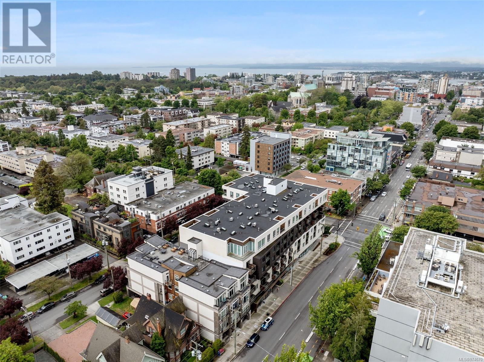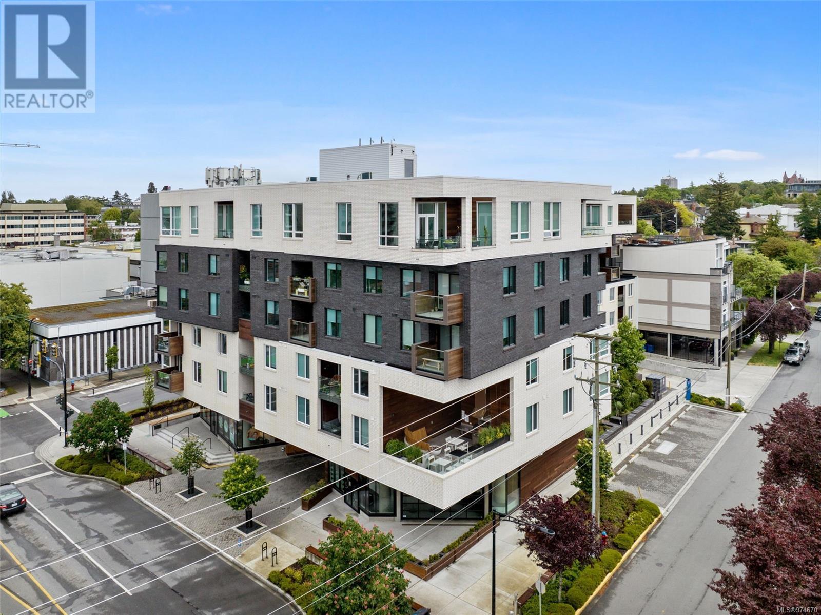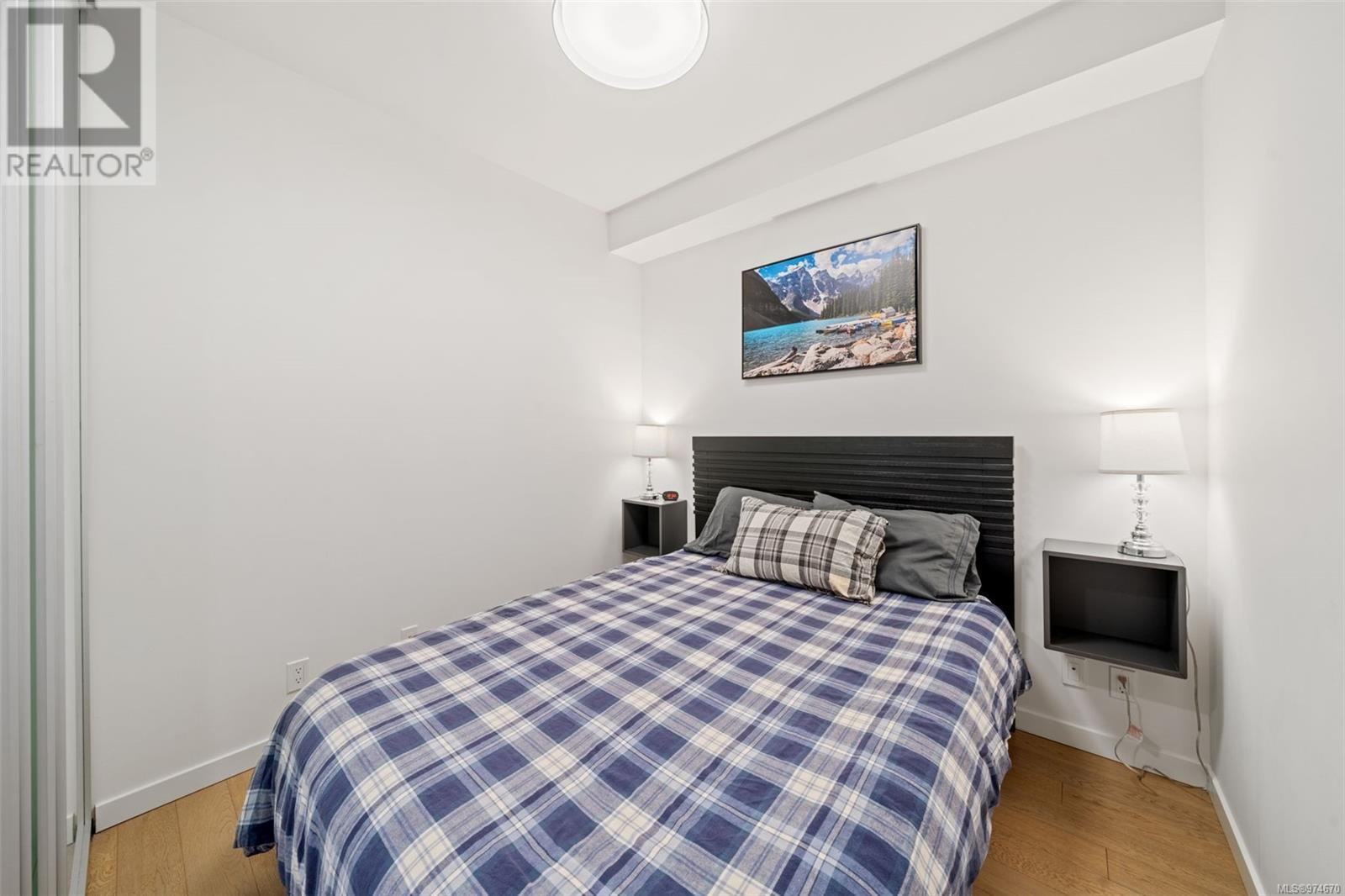 Welcome to the Black and White, a boutique collection of residences by award-winning Abstract Development. Located on the edge of Cook Street Village this contemporary one-bedroom apartment harmonizes modern and timeless design elements and the location provides convenient access to all that downtown Victoria has to offer. This stylish living space spans 537 sq.ft. showcases high-end integrated appliances including a gas range, quartz countertops, hardwood flooring, in-suite laundry, storage, and PARKING. The luxurious spa-like bathroom features a rain shower and heated floors, adding a touch of opulence. Step outside onto the delightful two-person patio, ideal for savoring a morning coffee or enjoying a relaxing evening breeze. This professionally managed building includes a community patio with a fire pit and BBQ, bike storage, a dog wash room, & EV charging. (id:22211)