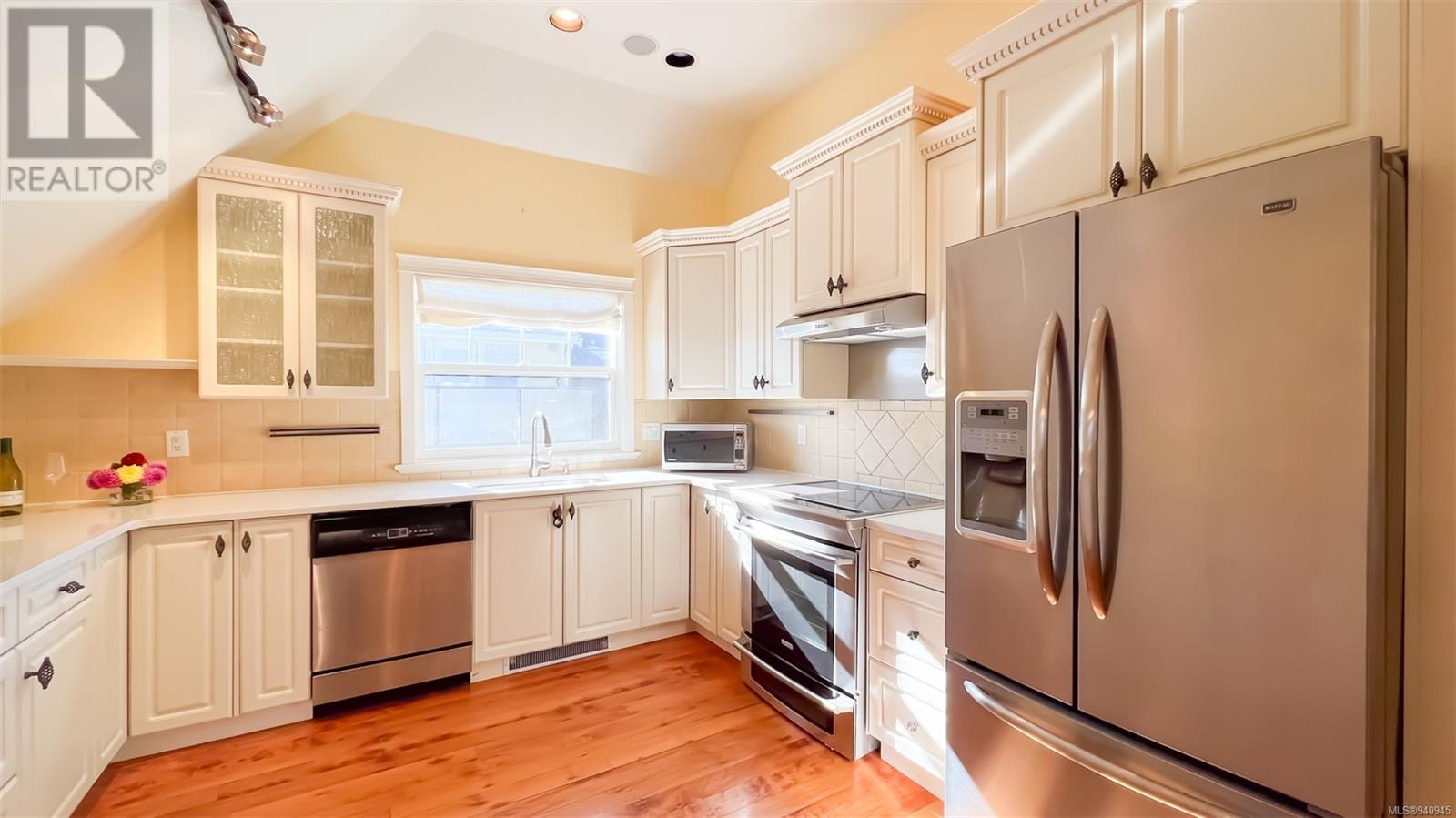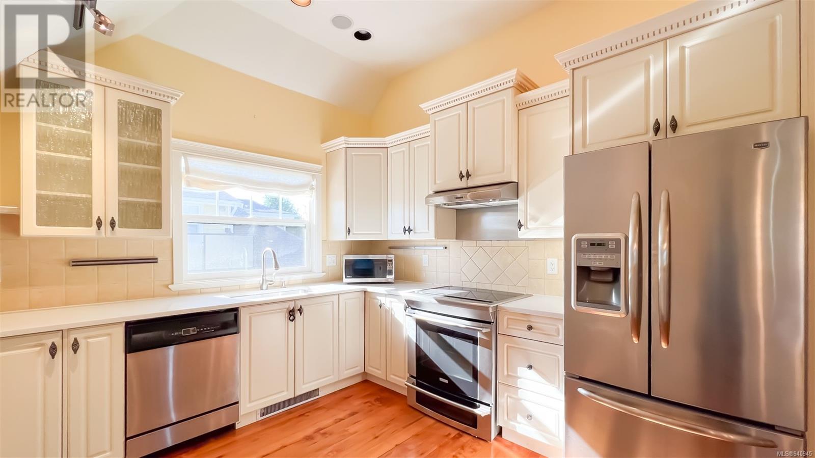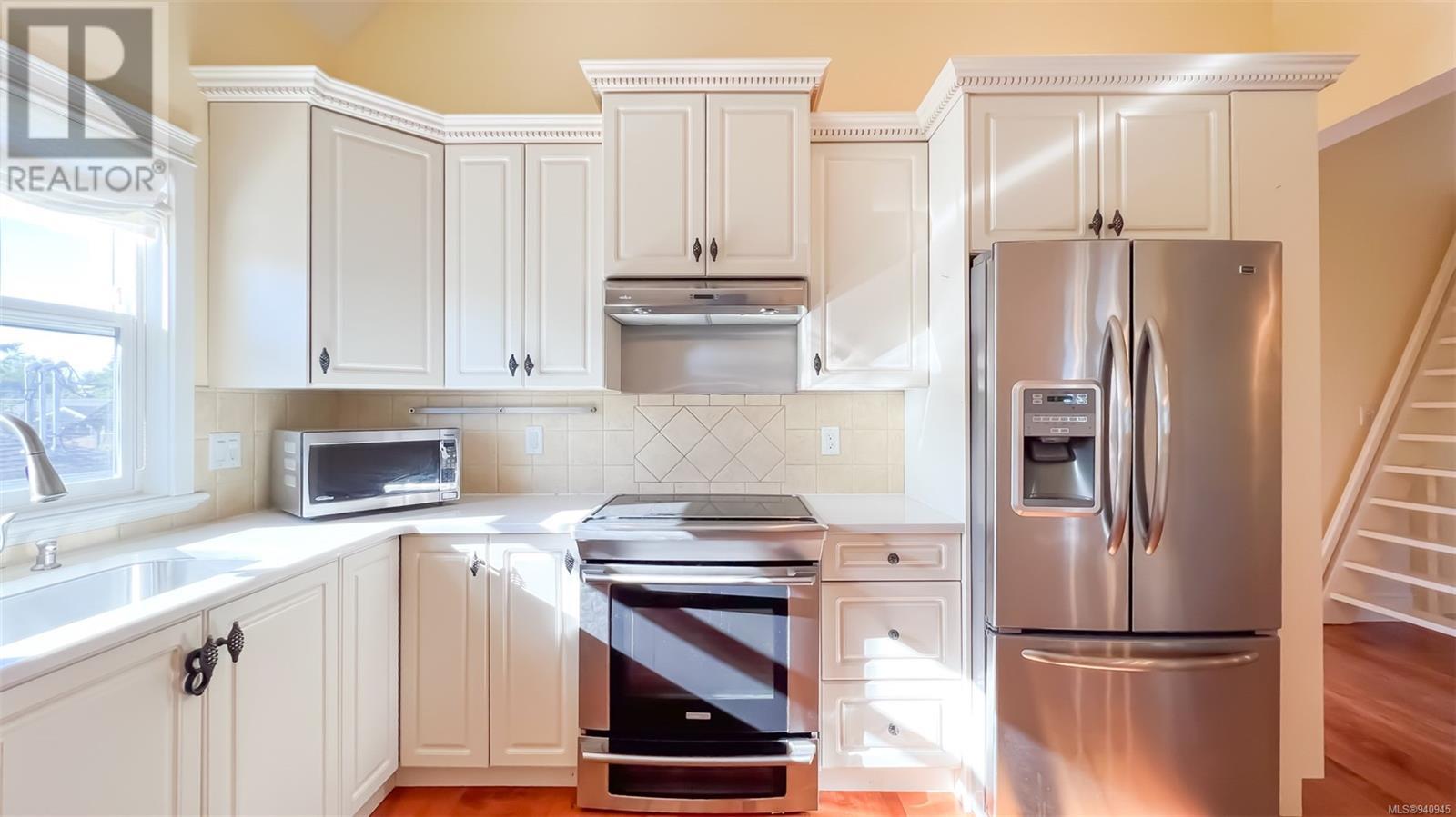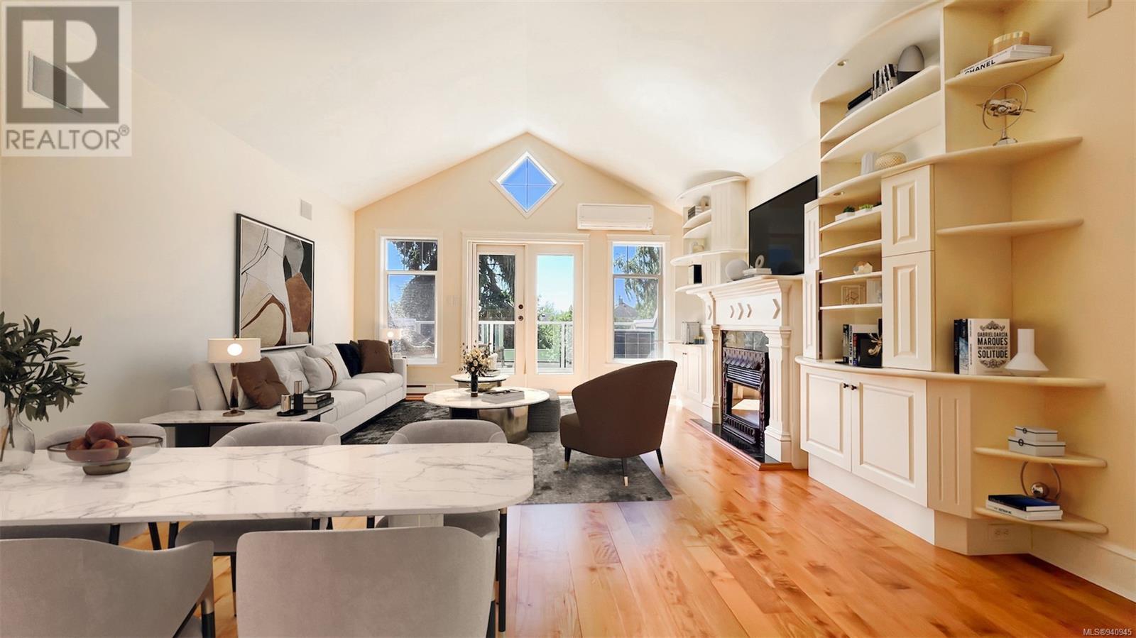 Welcome to the jewel of Fairfield! This modern, bright and spacious walk-up townhouse will WOW you. A character conversion built by Abstract Developments, this TH features vaulted ceilings, maple flooring, an electric fireplace to make you feel cozy in the winter and a heat pump to keep you cool in the summer (and reduces your heating costs)! The spacious kitchen will delight any chef and is perfect for entertaining your friends or family who can chat with you while sitting at the breakfast bar. Heated bathroom floors, quartz countertops, quality appliances, and an induction cooktop are just a few modern features to make your life more enjoyable. Enjoy a welcoming entrance and a south facing deck with a picturesque view of treetops and the Olympic Mountains. It is BBQ friendly, has ample storage, a flex room, parking and laundry. What more could you want? Ask your agent to read the details provided in supplements on the current strata fee. (id:22211)