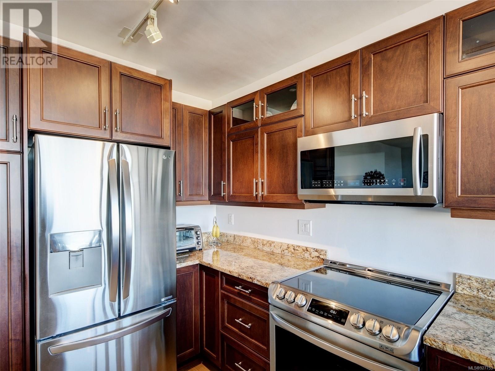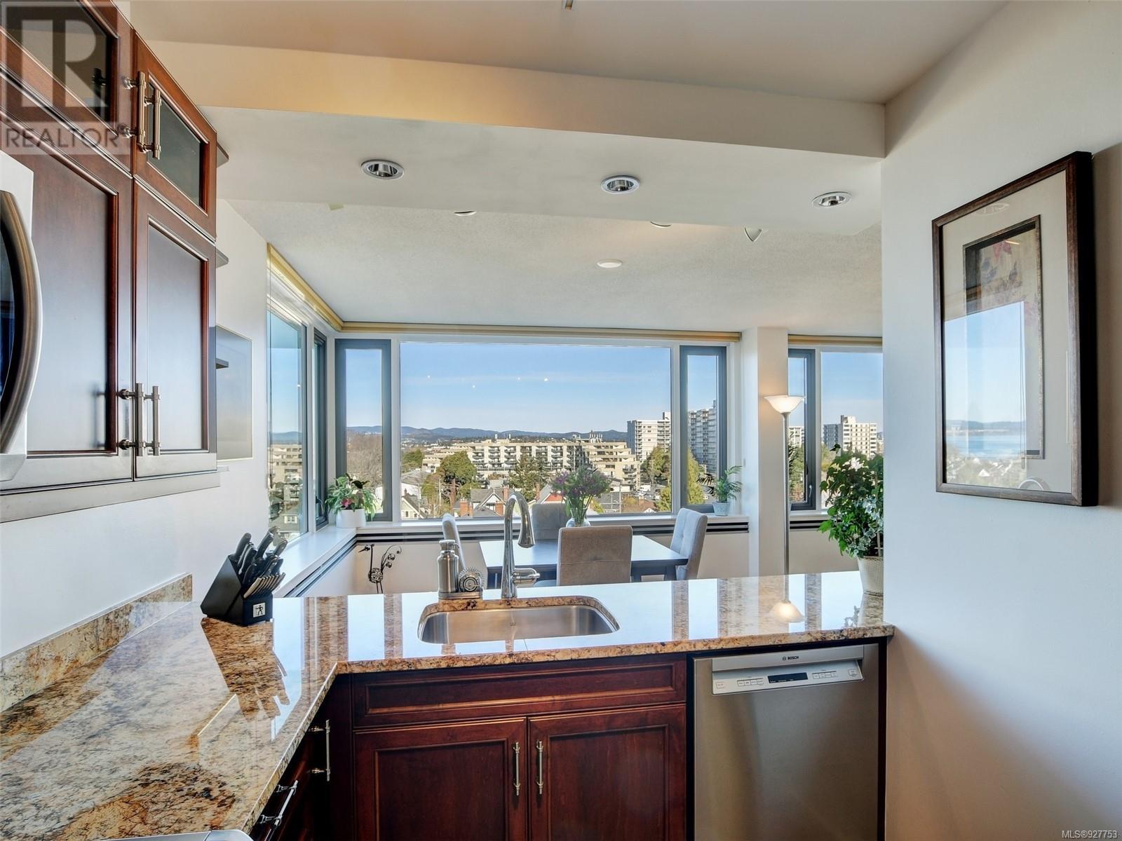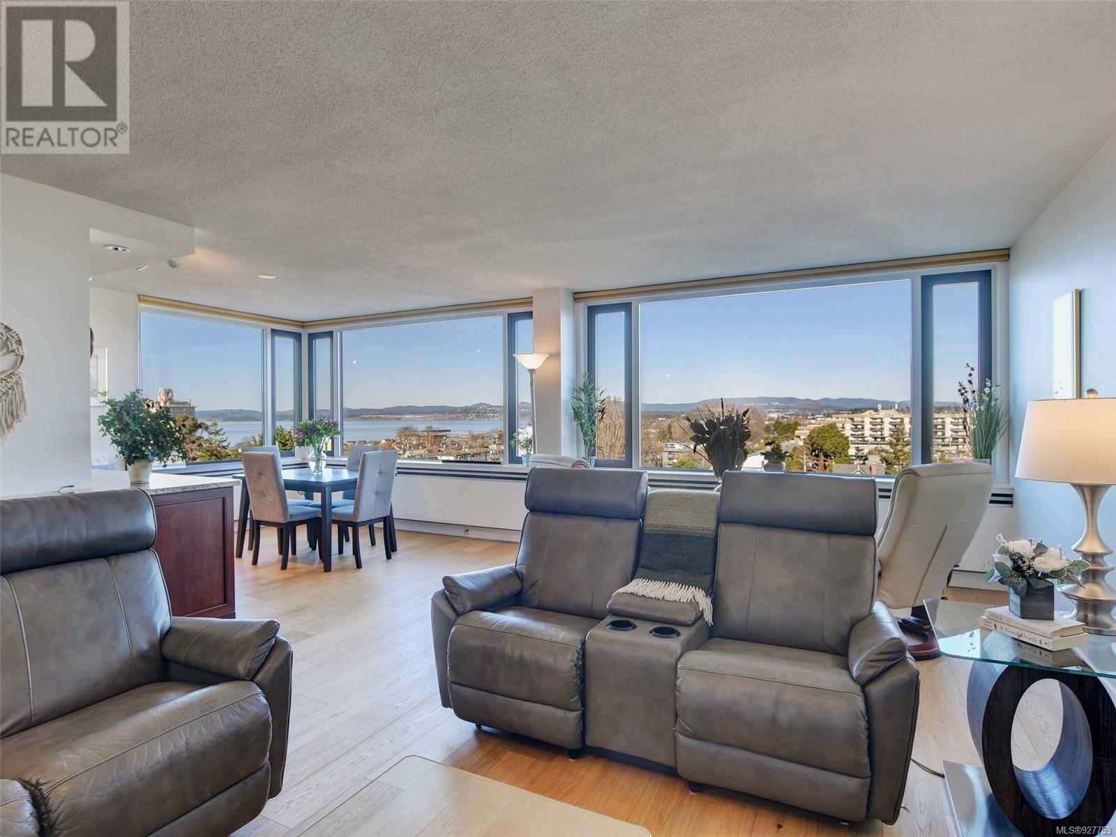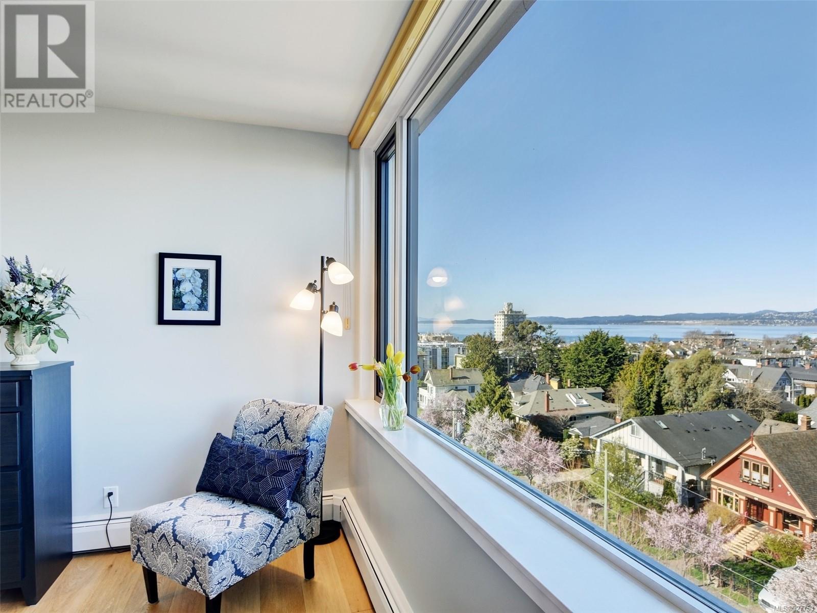 Excellent value for the this high quality southwest facing corner condo offering incredible panoramic and unobstructed views of the ocean, mountains & James Bay. The wall to wall windows offer an abundance of light and full views from all the principal rooms. Situated in the heart of James Bay on a quiet and short tree laden street this steel and concrete complex offers so much at one of the best values in today's market. Truly a meticulous and move-in ready residence. The open concept floor plan is perfect with no wasted space. An updated two bedroom and two bathroom home with modern features in all the right places including custom maple kitchen, granite counters, high-end s/s appliances and oak hardwood throughout. Spacious principal bedroom with walk in closet & 4 piece ensuite. The 2nd bedroom/office already has a Murphy bed for guests. In suite laundry room. Walking distance to restaurants, shops, ocean, Beacon Hill Park. The complex offers an indoor pool, sauna, hot tub, meeting room, live-in caretaker, guest suite, bike storage and more. Strata Fees incl heat, hot water & recreation. A lovely pleasure to visit. You will be impressed. (id:22211)