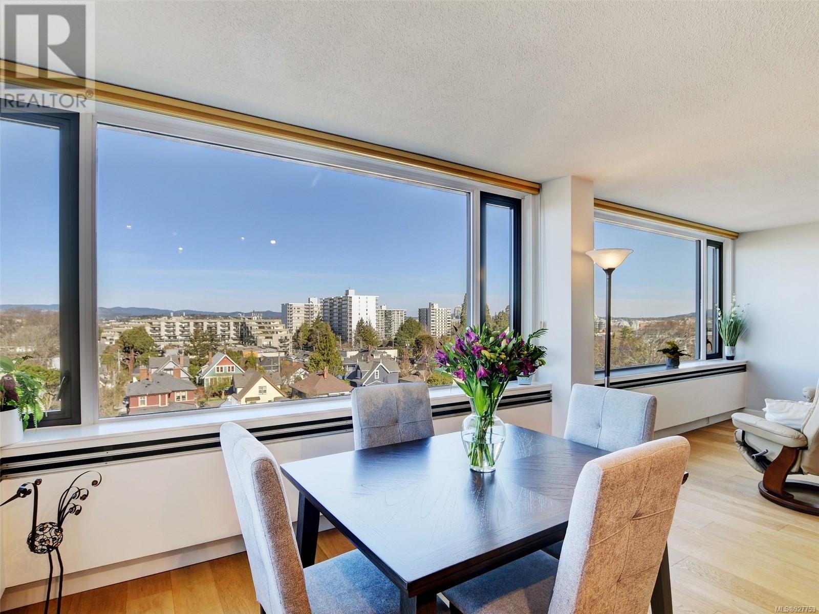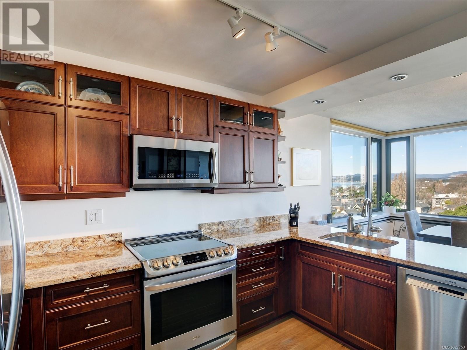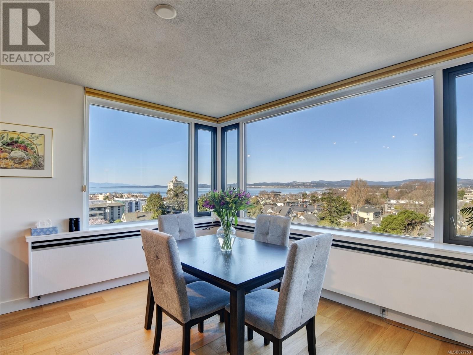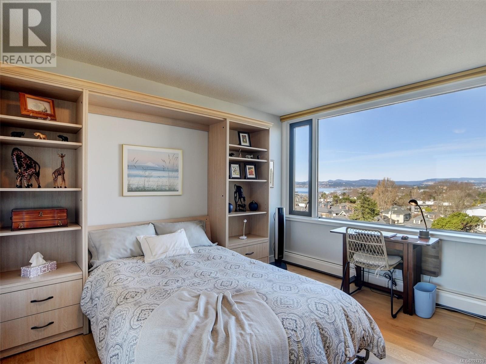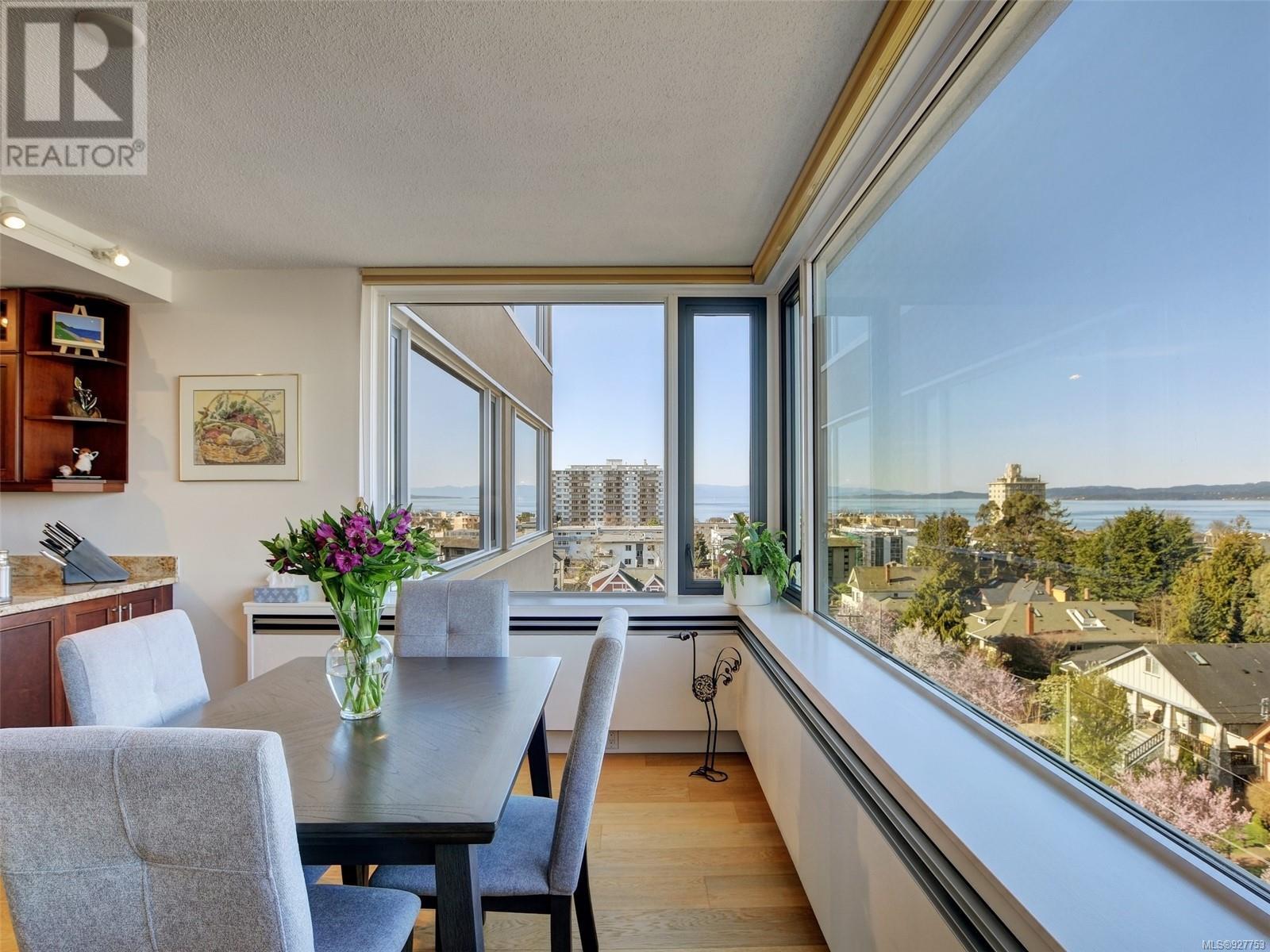 Excellent value for the this high quality southwest facing corner condo offering incredible panoramic and unobstructed views of the ocean, mountains & James Bay. The wall to wall windows offer an abundance of light and full views from all the principal rooms. Situated in the heart of James Bay on a quiet and short tree laden street this steel and concrete complex offers so much at one of the best values in today's market. Truly a meticulous and move-in ready residence. The open concept floor plan is perfect with no wasted space. An updated two bedroom and two bathroom home with modern features in all the right places including custom maple kitchen, granite counters, high-end s/s appliances and oak hardwood throughout. Spacious principal bedroom with walk in closet & 4 piece ensuite. The 2nd bedroom/office already has a Murphy bed for guests. In suite laundry room. Walking distance to restaurants, shops, ocean, Beacon Hill Park. The complex offers an indoor pool, sauna, hot tub, meeting room, live-in caretaker, guest suite, bike storage and more. Strata Fees incl heat, hot water & recreation. A lovely pleasure to visit. You will be impressed. (id:22211)