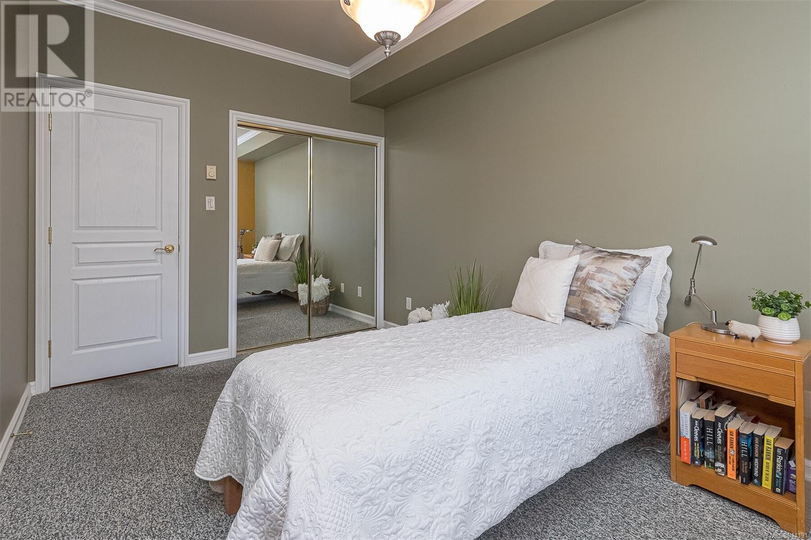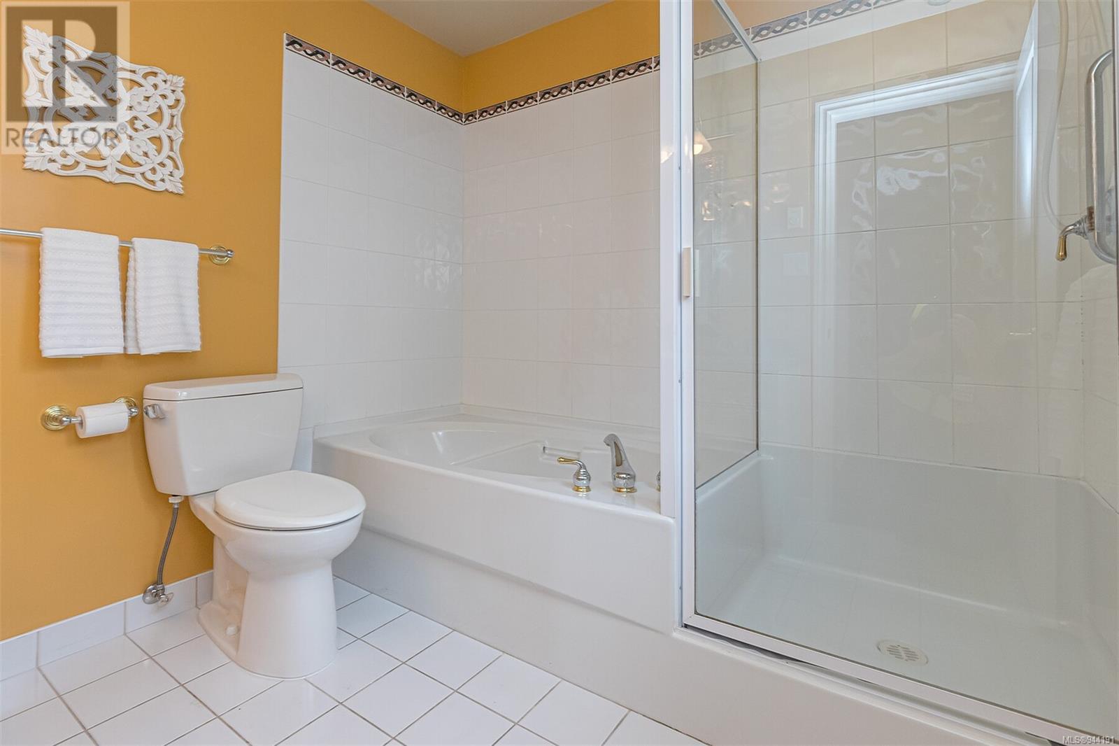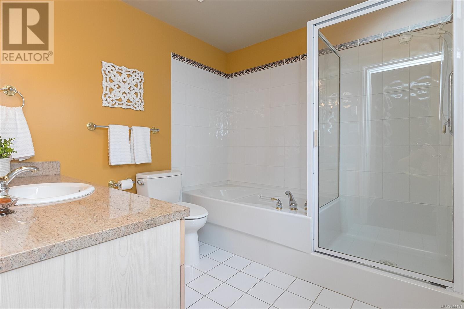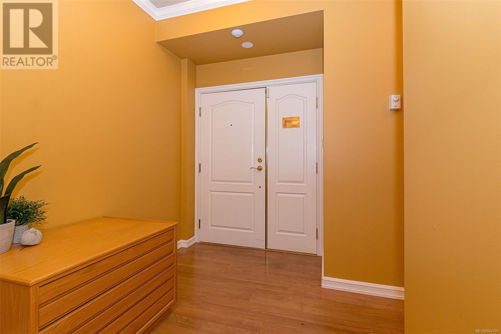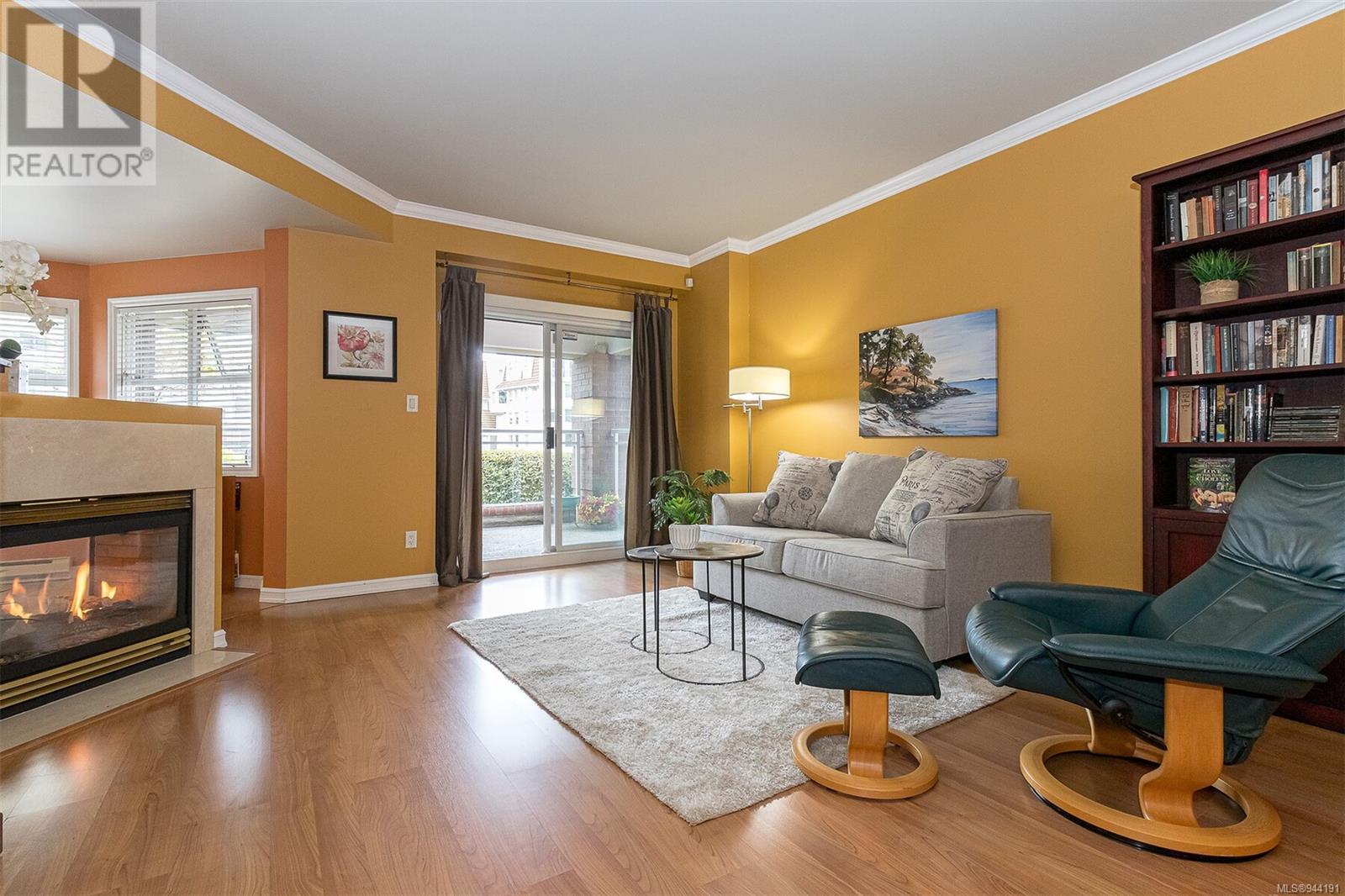 Just steps from the vibrant Songhees walkway! Bright and spacious, this 2 bdrm, 2 bath home faces south east overlooking the inner courtyard. Perfect for those looking to downsize from a home, with over 1450 square ft. Kitchen with plenty of cabinets, granite countertops, large pantry, insuite laundry, and eating area. Open concept living/dining room with double sided gas fireplace. Overheight ceilings with crown moldings. Slider leads to patio to enjoy the afternoon sun. Large primary suite with walk in closet and ensuite with soaker tub and separate shower. Well laid out floor plan with bedrooms nicely separated. This well maintained and managed concrete and steel building offers plenty of amenities – gym, bike and kayak storage, meeting room and car wash area. Underground parking and storage included. Pets welcome. Fabulous location to walk or bike or dine at nearby restaurants or a few minutes downtown. (id:22211)