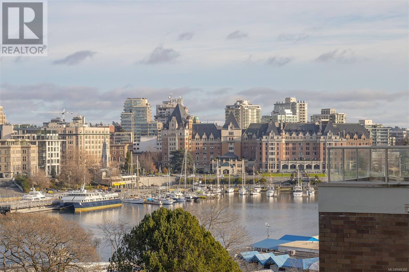 Come and discover this absolutely stunning 8th floor 2-Bedroom, 2-Bath condo with some of the most incredible views of the magical Victoria Inner Harbour, marina's, and city including the historic Empress Hotel. This large 1200 sf home has been completely transformed into a modern and sophisticated residence so you can just move in and enjoy. You will love the brand new wood grained chefs kitchen featuring quartz counters, 5 person eating bar, new Stainless Steel appliances, and under-counter lighting. Very open design allows beautiful views from all principal rooms including both over-sized bedrooms. All new flooring including top quality laminate, new bathrooms, new fixtures, new feature fireplace, and all redecorated. Laurel point offers a gym, rec room, pool, library, and underground secure parking. This location is second to none - steps into the Inner Harbour, Fisherman's Wharf, restaurants, and shopping. You deserve this so come and view today. (id:22211)