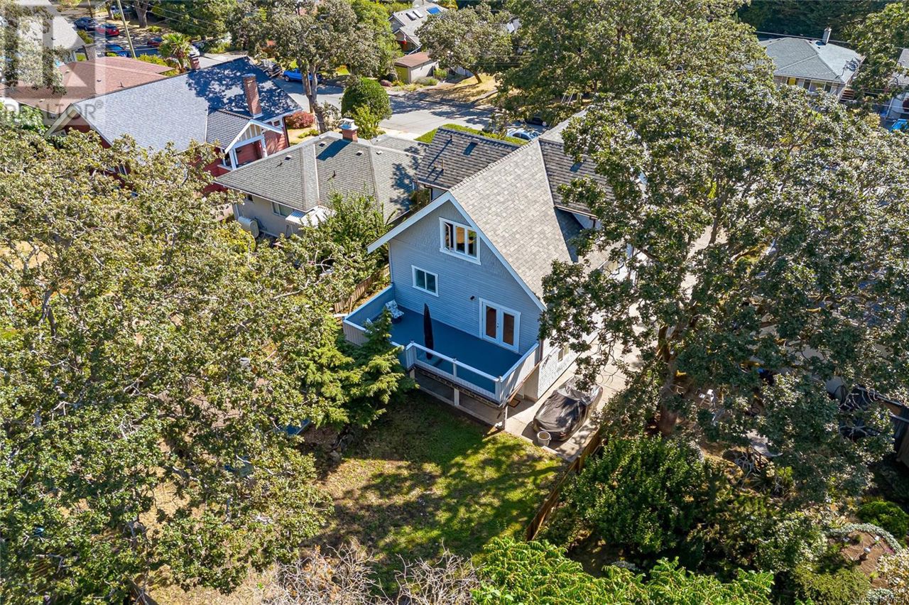 For nearly four decades, this Oaklands gem has been lovingly rebuilt, restored, and maintained by the same owners. A true labour of love in one of Victoria’s most sought-after family neighbourhoods. A short walk to Oaklands School, parks, and the community centre, 2718 Roseberry offers the kind of lifestyle that grows with your family. From the street, the home’s character is undeniable: a covered front porch, wood sash windows, and lush greenery welcome you in. Inside, wood floors, high ceilings, and classic woodwork provide a warm backdrop for daily life. The main level features an updated kitchen filled with natural light that opens to the generous dining room. Head out through the french doors to the sunny west facing deck. The flexible front room is perfect for working from home, or a enclosed toy room for the kids. Tucked beneath the stairs, a powder room offer extra convenience for busy households. Upstairs, you’ll find three comfortable bedrooms, an office nook, full bathroom, and clever storage in the eaves. The primary suite is generously sized with a walk-in closet and attic access. Downstairs, a newer bachelor suite with insulated ceilings for sound proofing, private entry provides versatility for extended family, guests, or added income. The rest of the lower level offers a workshop, laundry, and ample storage, all built atop a solid partially underpinned foundation with interior perimeter drains that run beneath the slab to a rock pit. The backyard is a blend of purpose and play, with built-up garden beds, a whimsical pond (yes, with fish!), and a reinforced deck ready for your future hot tub. With updates that include a gas hot water furnace, on-demand hot water, rewired electrical, and drywall throughout majority of the home, the heavy lifting has been done. A rare opportunity to own a true character home with decades of thoughtful stewardship, nestled in a tight-knit community where your family can put down roots. (id:61201)