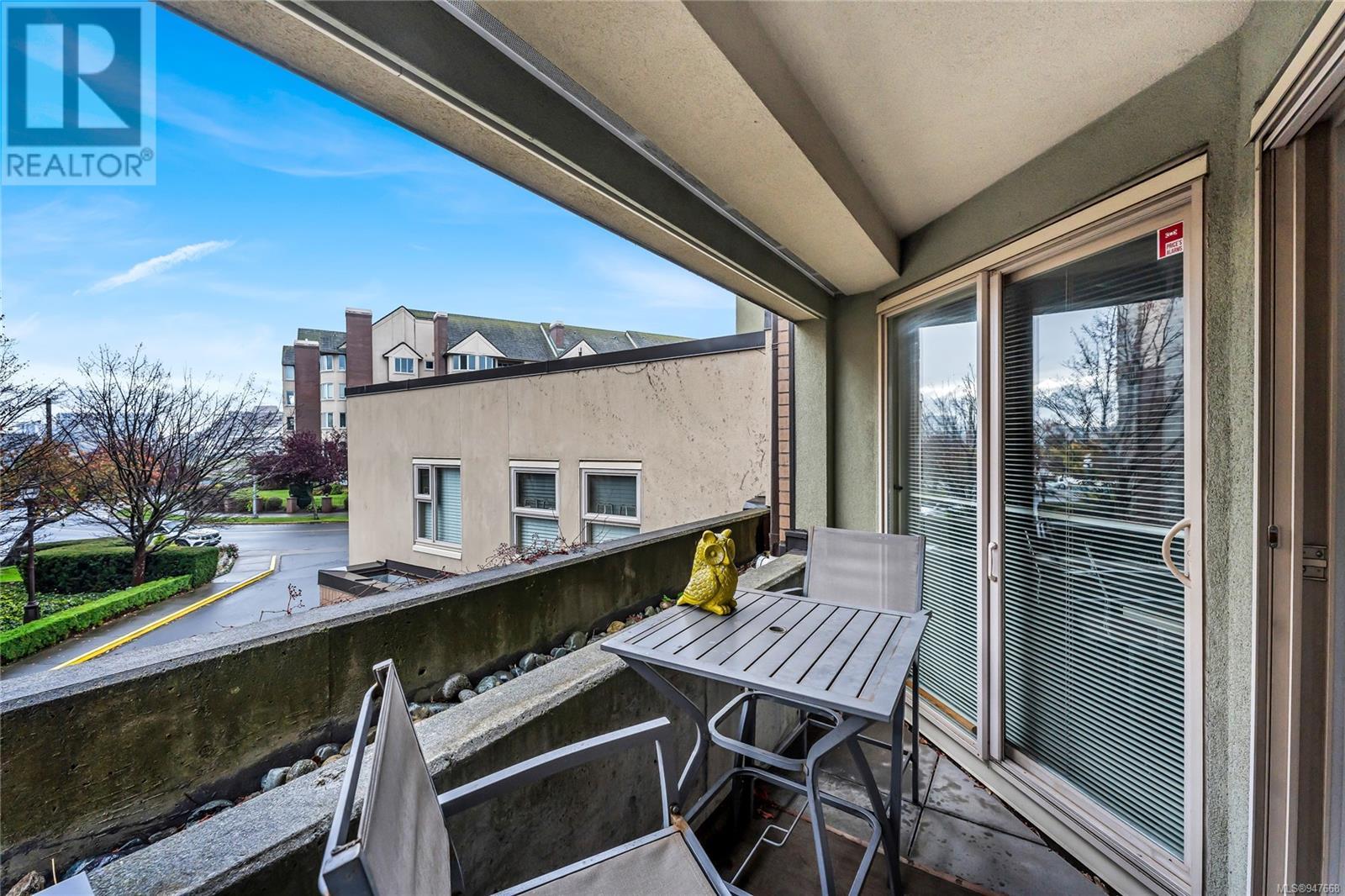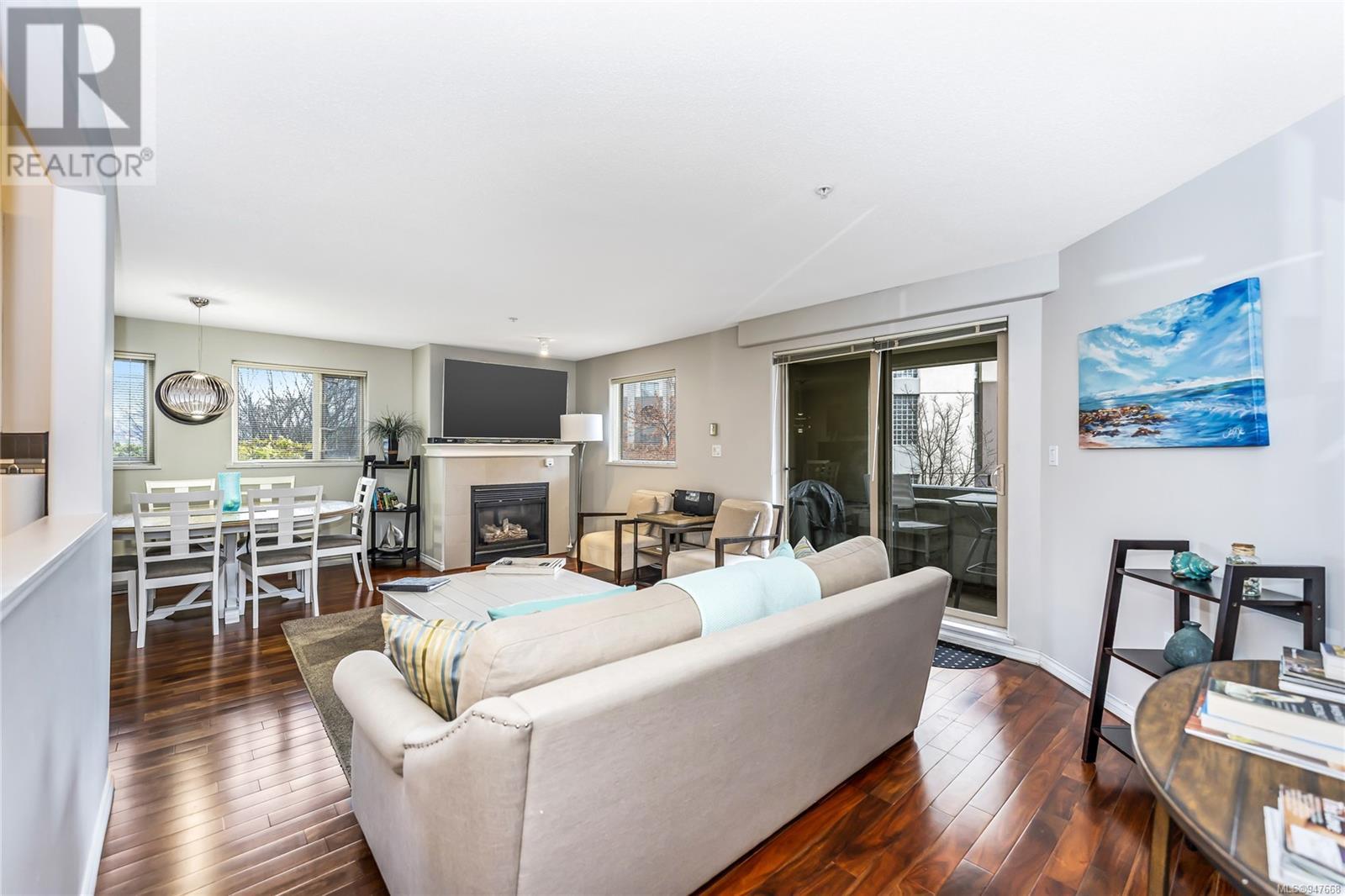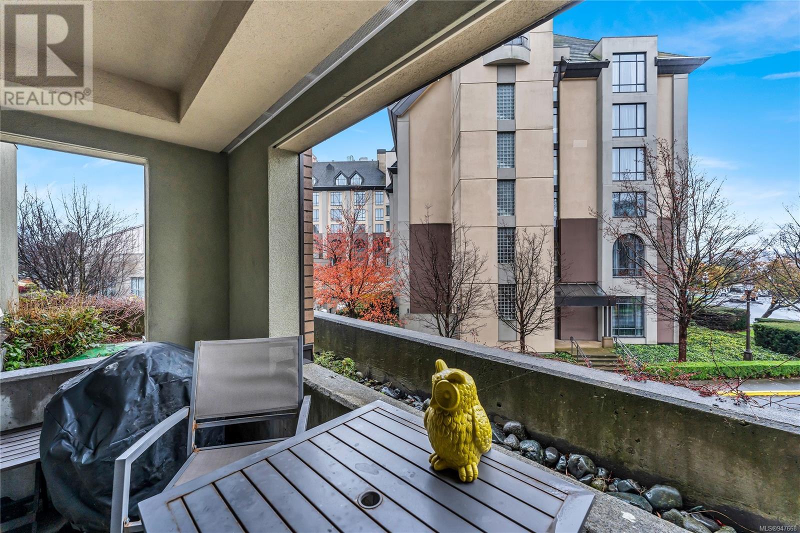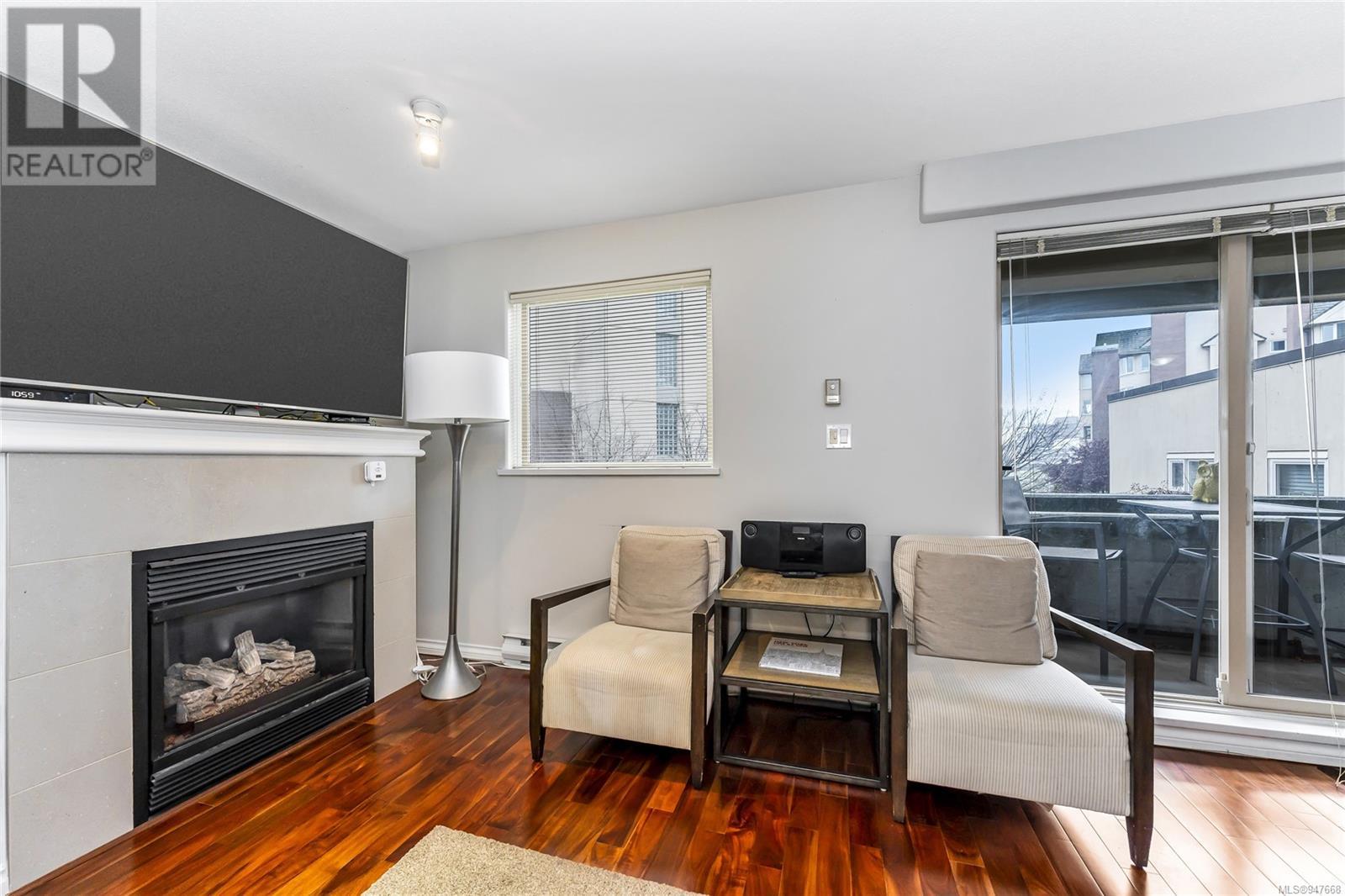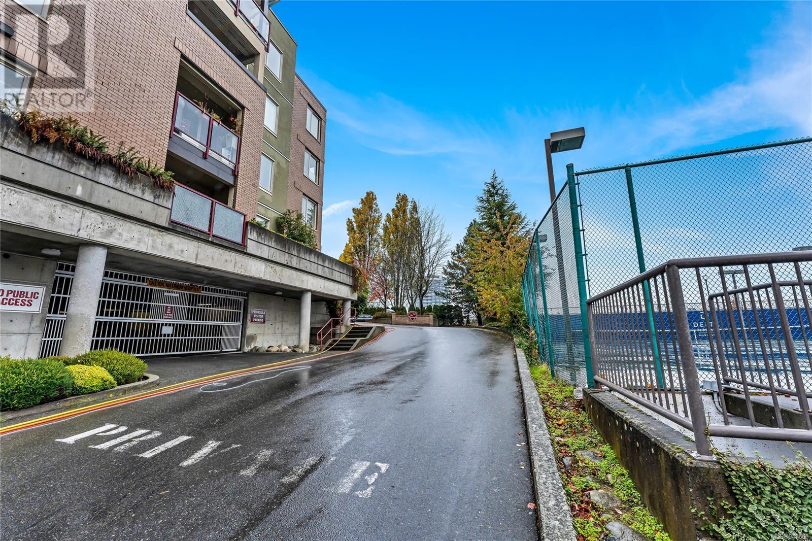 Don't miss this bright corner unit situated on the main (not ground) level, offering a terrific layout w/2 Bedrooms PLUS Den & 2 Baths, as well as 2 underground secure parking spaces. You will love the layout with separated bedrooms, and enjoy cooking in your large kitchen with stainless steel appliances and granite countertops overlooking the living room with cozy gas fireplace and engineered hardwood flooring. Enjoy BBQ's and ocean views on your covered patio accessing both the living room & spacious primary bedroom w/walk-in closet & 4pc ensuite! The easy access to the outdoors is great for your small dog, only steps to the Inner Harbour and one of Victoria's finest waterfront walkways. Truly a great place to call home. Bike/run the Galloping Goose trail. Quick stroll to downtown shops, restaurants, entertainment & amenities. Rentals and pets allowed! (id:22211)