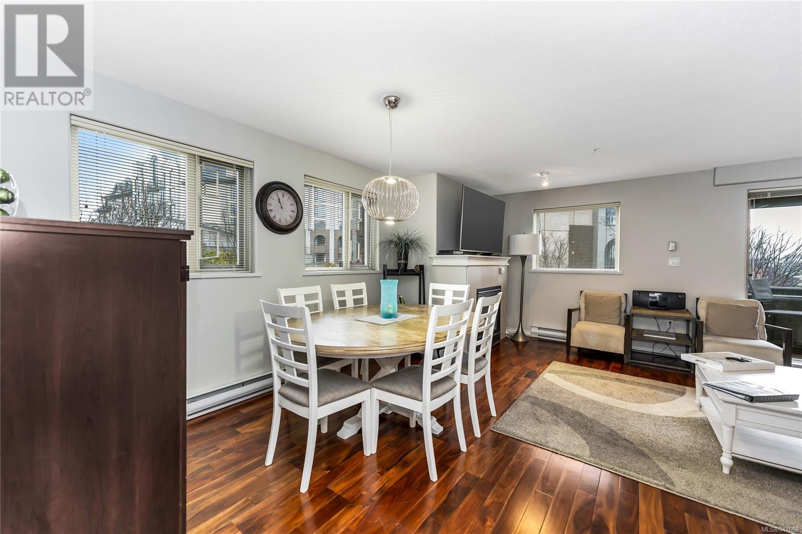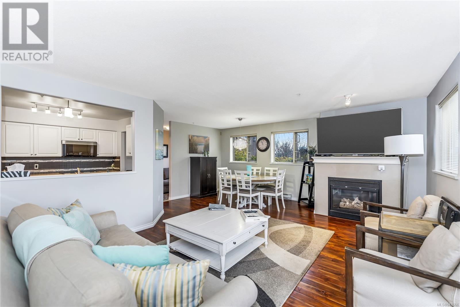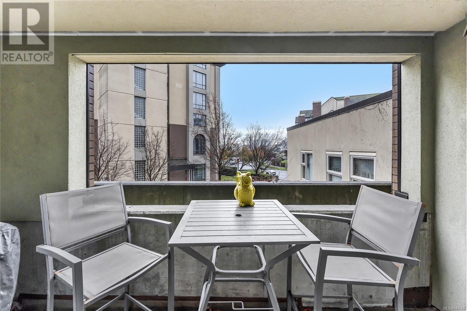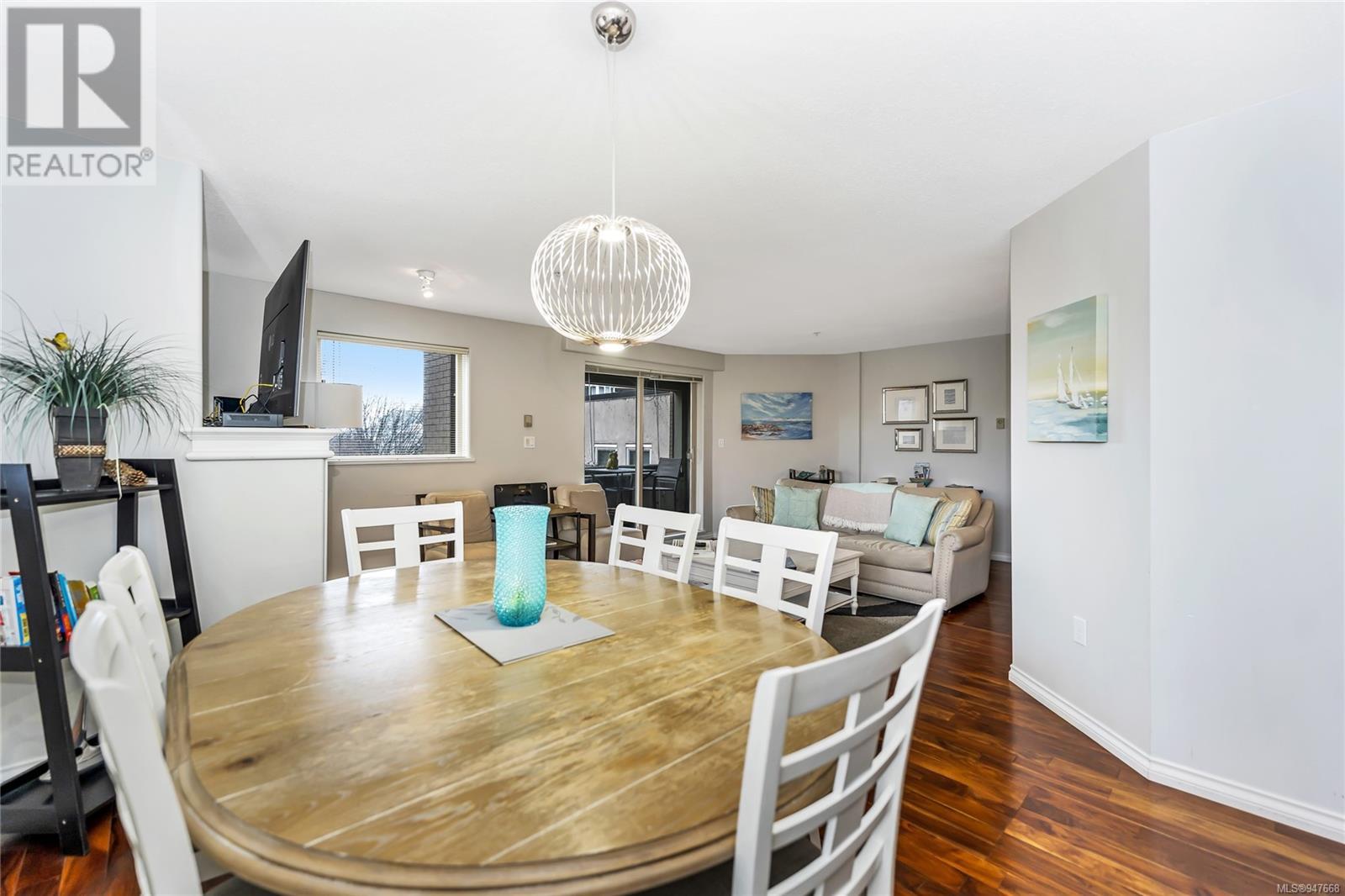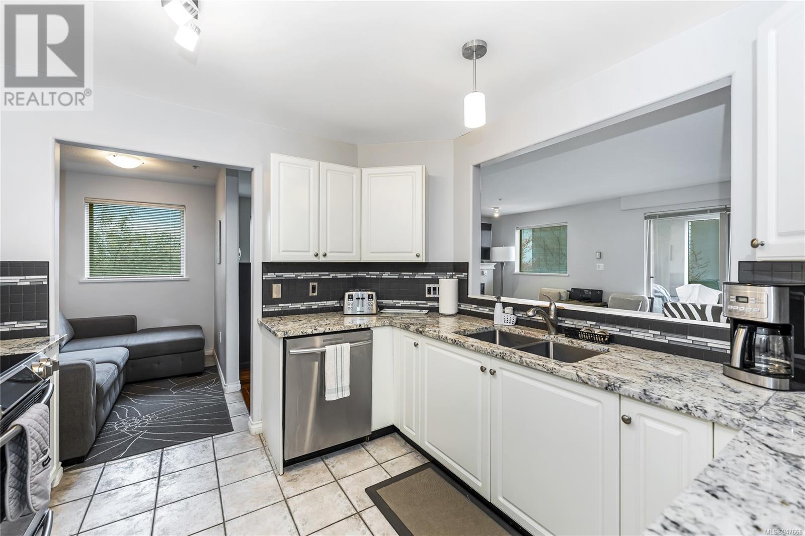 Don't miss this bright corner unit situated on the main (not ground) level, offering a terrific layout w/2 Bedrooms PLUS Den & 2 Baths, as well as 2 underground secure parking spaces. You will love the layout with separated bedrooms, and enjoy cooking in your large kitchen with stainless steel appliances and granite countertops overlooking the living room with cozy gas fireplace and engineered hardwood flooring. Enjoy BBQ's and ocean views on your covered patio accessing both the living room & spacious primary bedroom w/walk-in closet & 4pc ensuite! The easy access to the outdoors is great for your small dog, only steps to the Inner Harbour and one of Victoria's finest waterfront walkways. Truly a great place to call home. Bike/run the Galloping Goose trail. Quick stroll to downtown shops, restaurants, entertainment & amenities. Rentals and pets allowed! (id:22211)