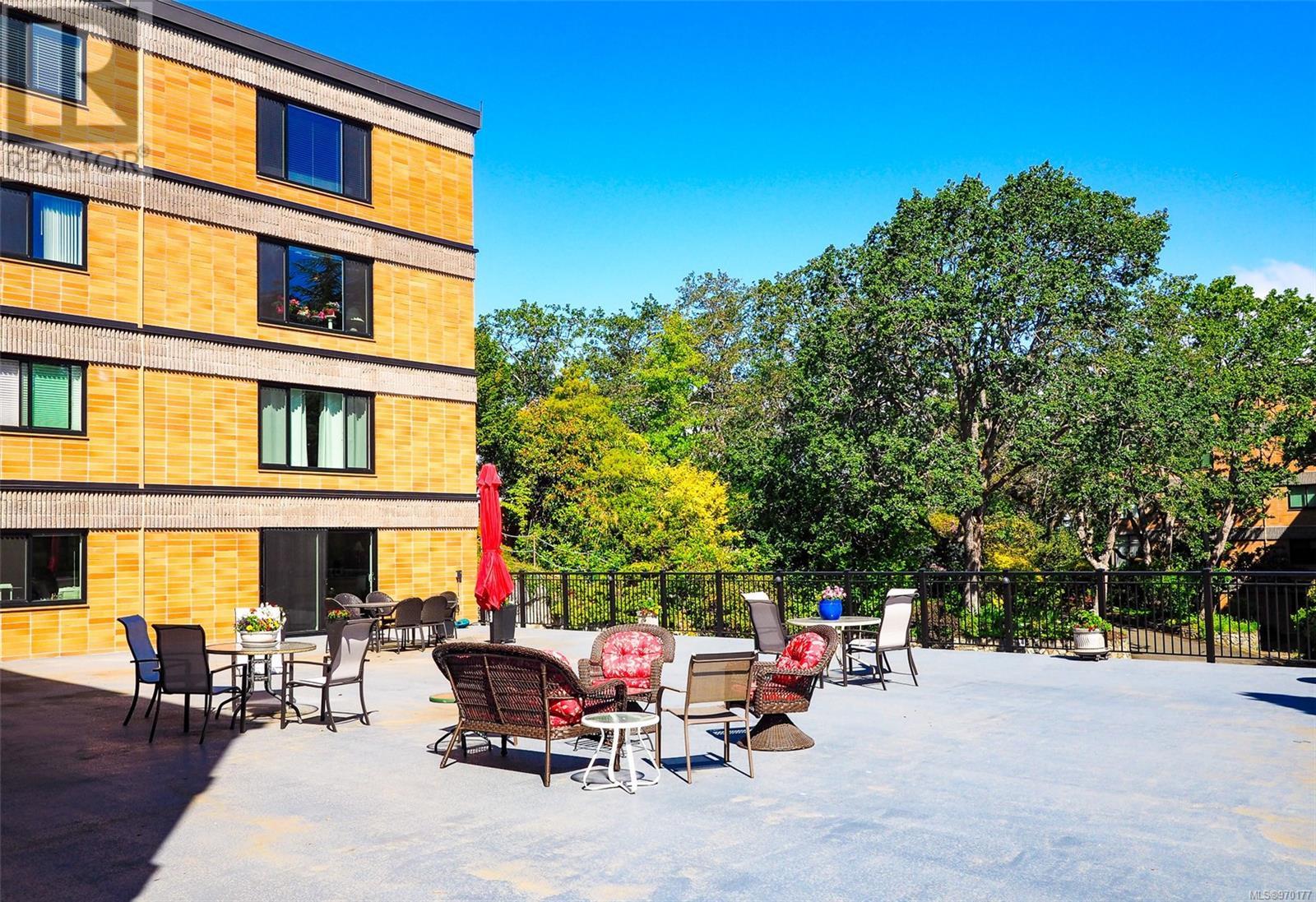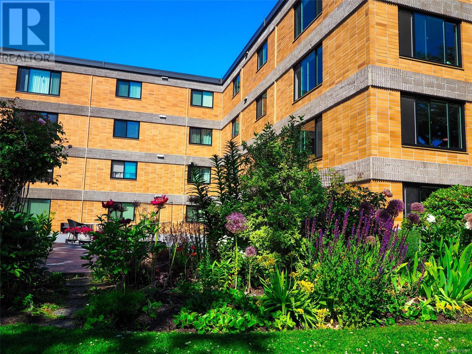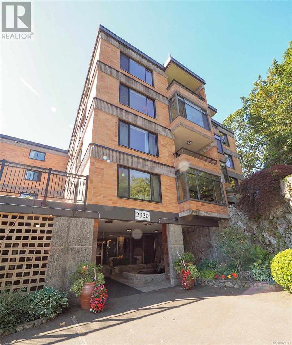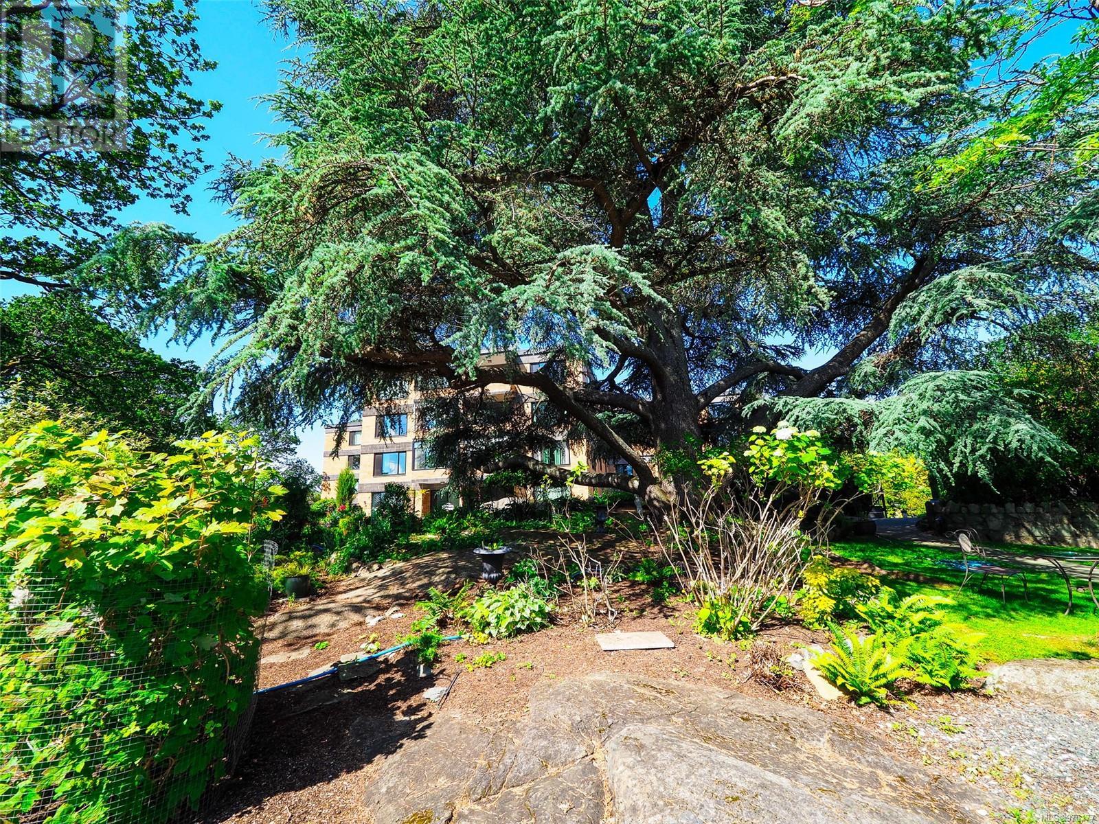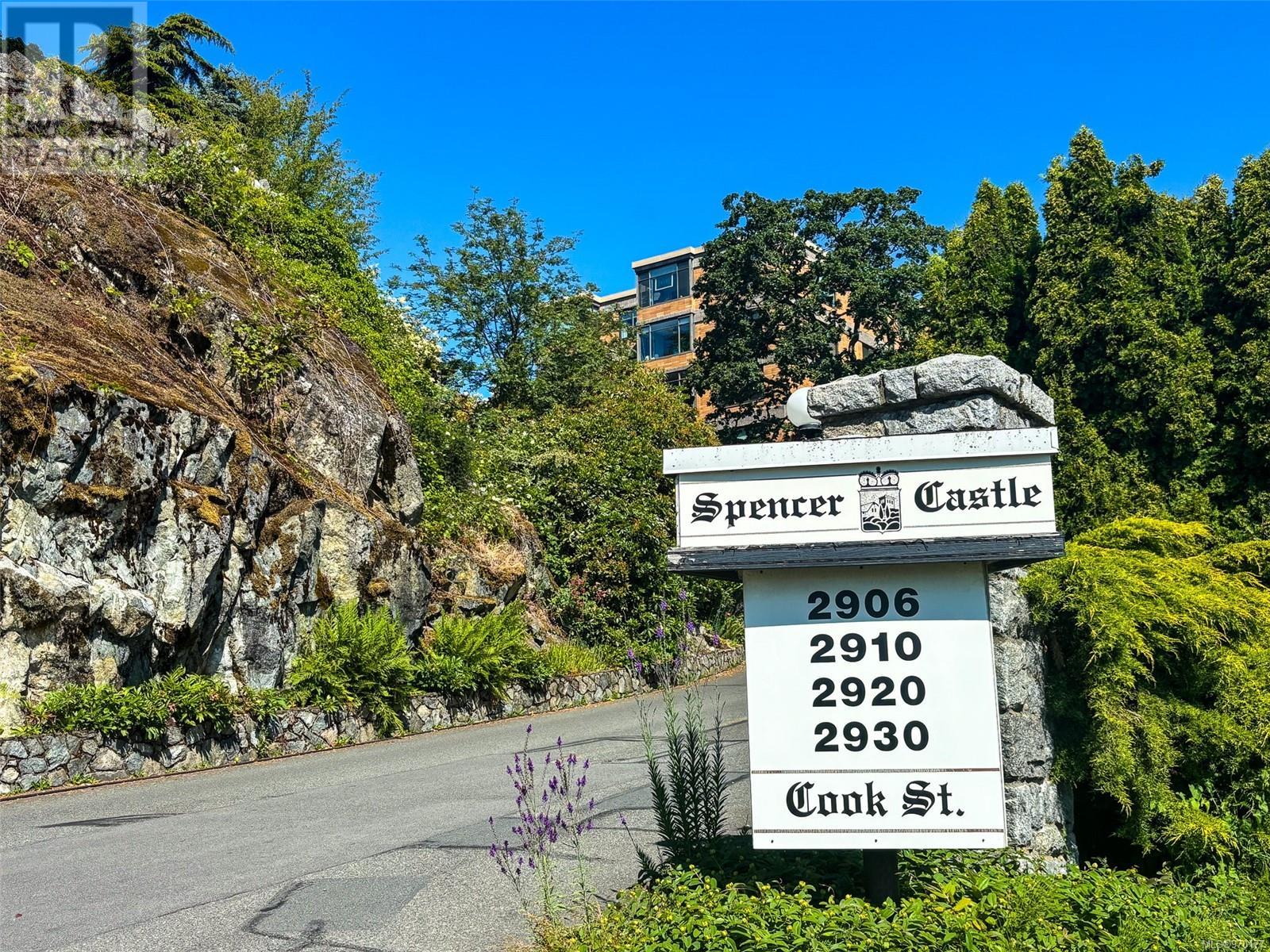 Perched atop a scenic hill, this 2-bed, 2-bath home boasts panoramic views of Spencer Castle, Victoria, Mountains and the Ocean. Crafted from enduring steel and concrete, its modern design seamlessly integrates with the natural landscape. Inside, expansive windows illuminate the airy living spaces, offering relaxation and entertainment. Ready for your personal renovation, this residence promises comfort and functionality. As part of the complex, residents enjoy shared access to the historic Spencer Castle, currently undergoing renovations to offer six guest suites, entertaining spaces, and luxury amenities like a pool and sauna. Outside, manicured lawns and quaint trails invite exploration. Whether on the private balcony or the roof top patio, this property epitomizes refined living. Don't miss this rare chance to embrace elegance and tranquility in one of Victoria's most sought-after locations. Experience daily breathtaking views and timeless charm. Call Liz at 250-634-8989 to book your showing today! (id:22211)