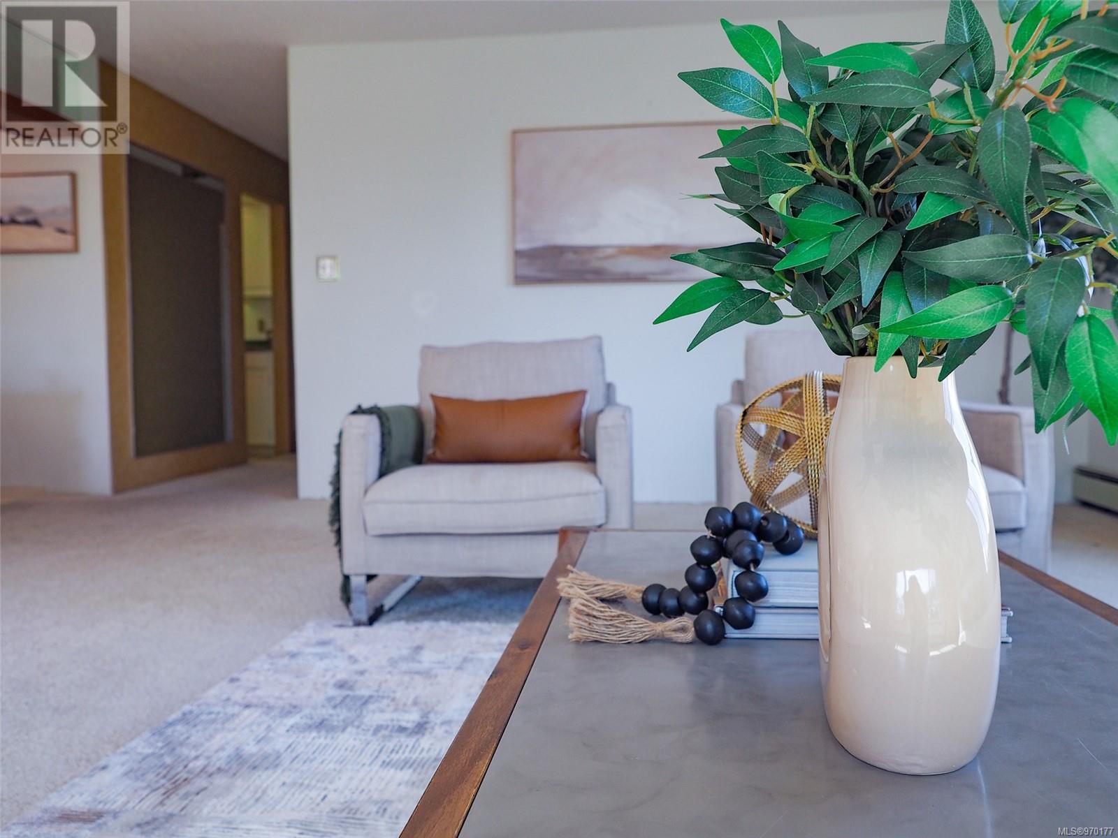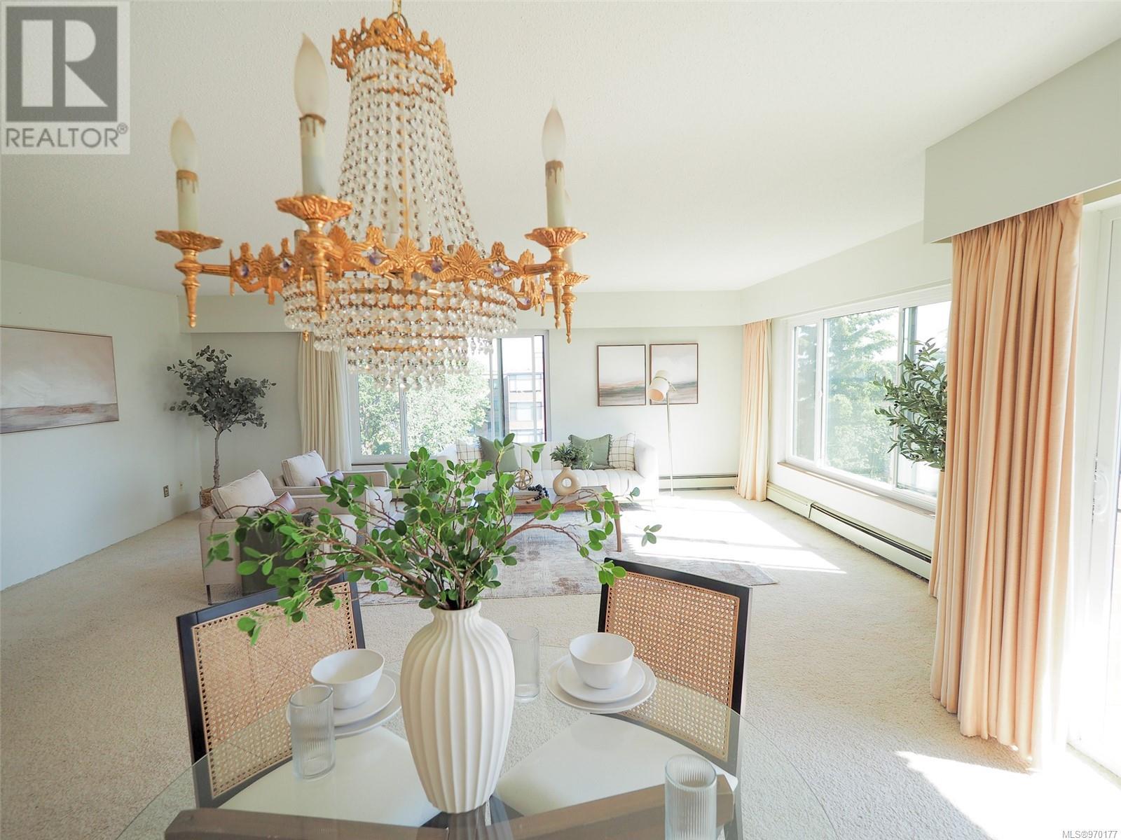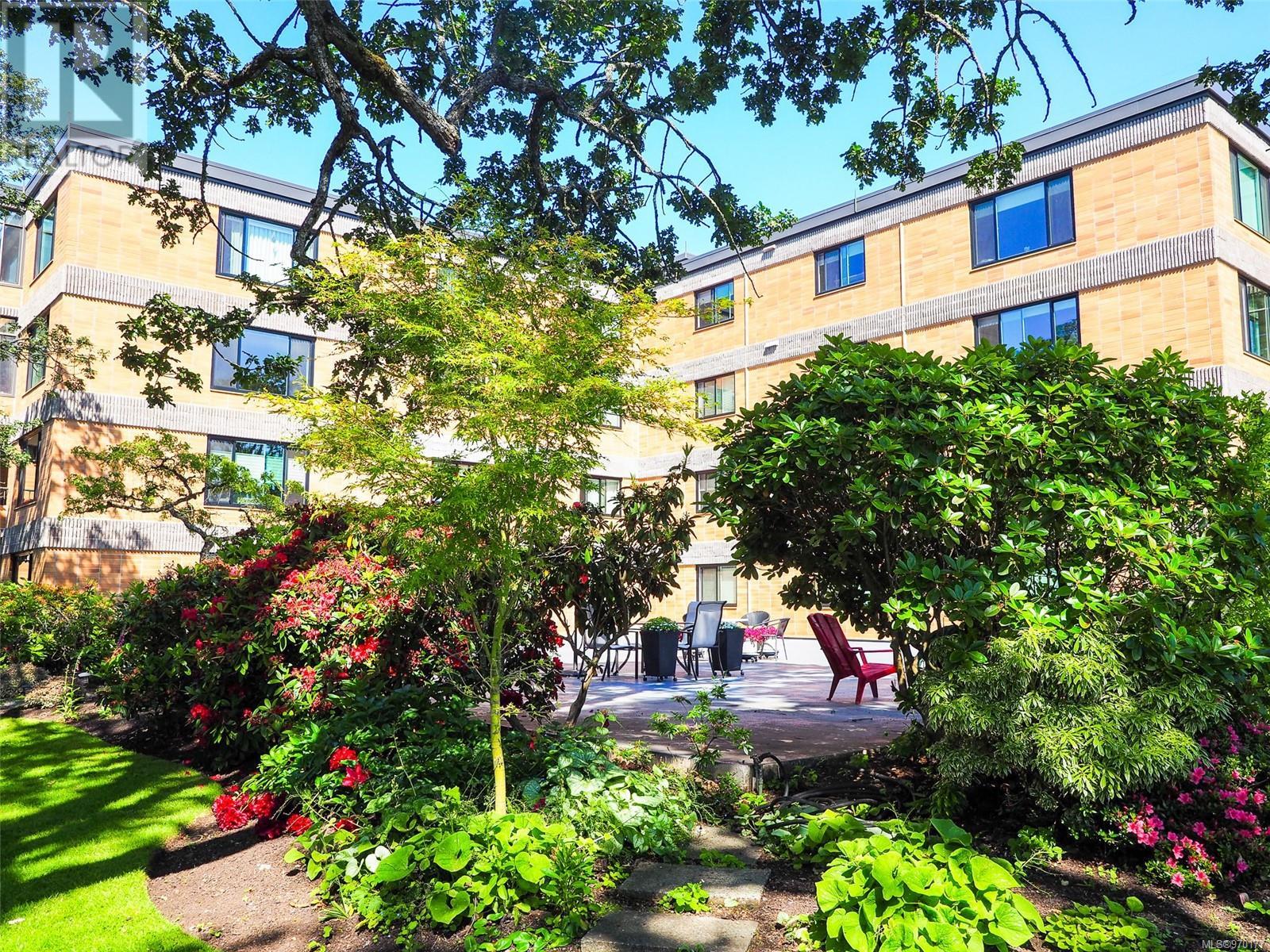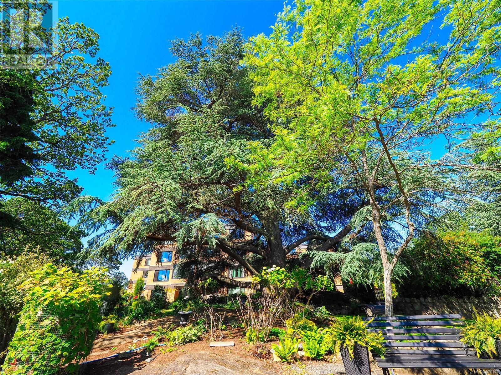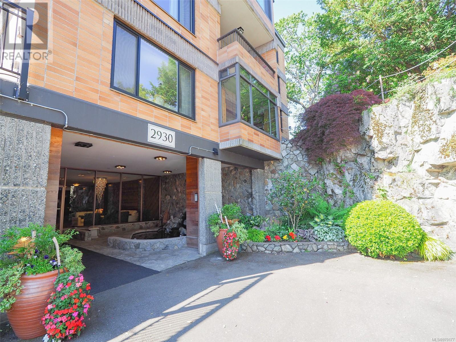 Perched atop a scenic hill, this 2-bed, 2-bath home boasts panoramic views of Spencer Castle, Victoria, Mountains and the Ocean. Crafted from enduring steel and concrete, its modern design seamlessly integrates with the natural landscape. Inside, expansive windows illuminate the airy living spaces, offering relaxation and entertainment. Ready for your personal renovation, this residence promises comfort and functionality. As part of the complex, residents enjoy shared access to the historic Spencer Castle, currently undergoing renovations to offer six guest suites, entertaining spaces, and luxury amenities like a pool and sauna. Outside, manicured lawns and quaint trails invite exploration. Whether on the private balcony or the roof top patio, this property epitomizes refined living. Don't miss this rare chance to embrace elegance and tranquility in one of Victoria's most sought-after locations. Experience daily breathtaking views and timeless charm. Call Liz at 250-634-8989 to book your showing today! (id:22211)