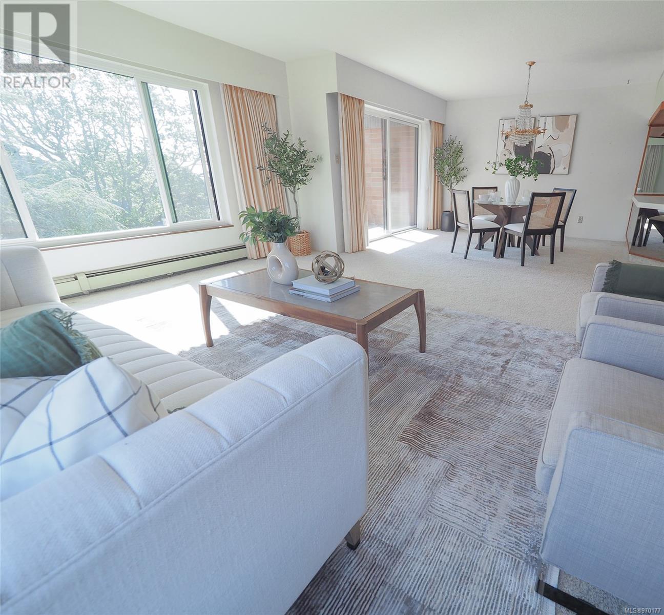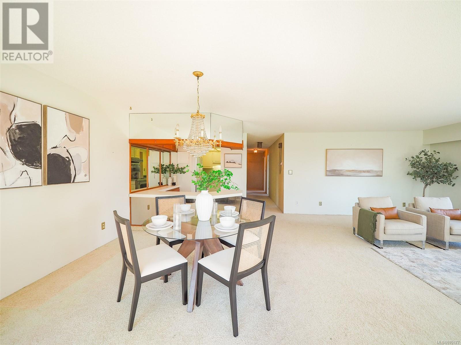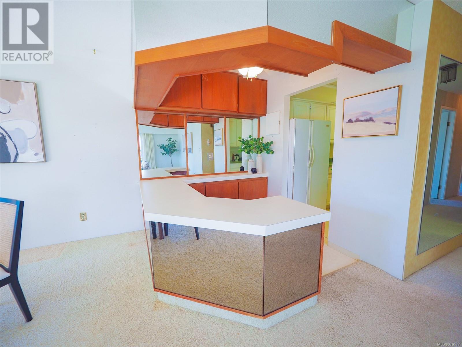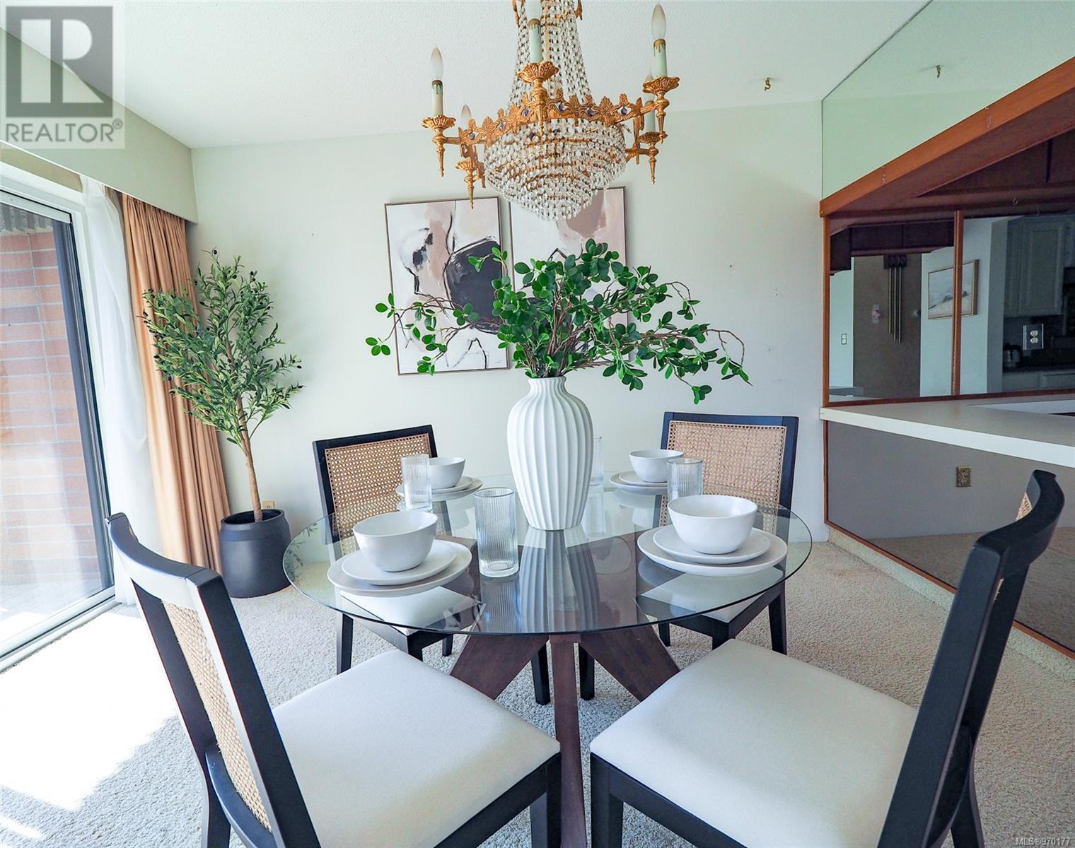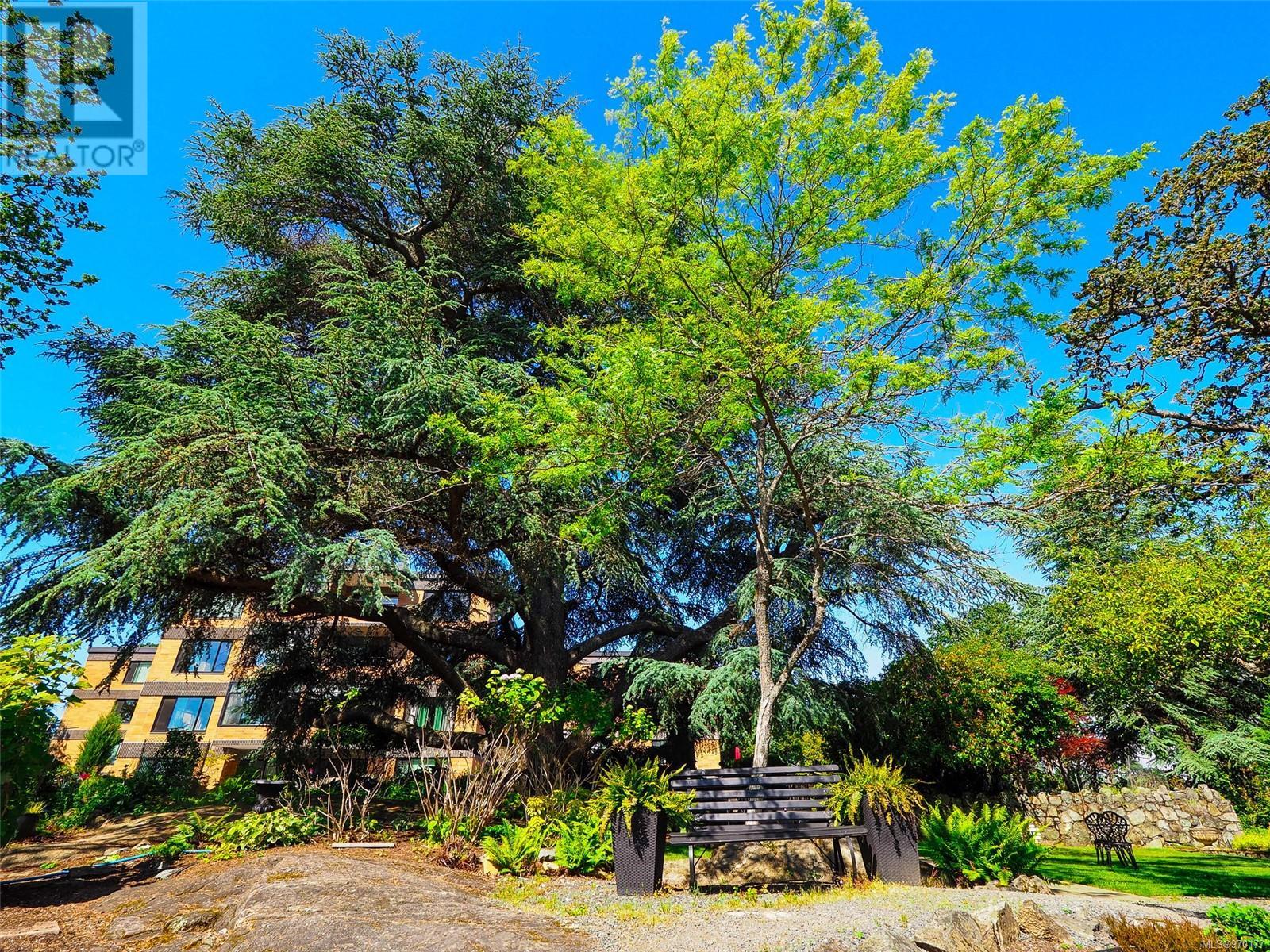 Perched atop a scenic hill, this 2-bed, 2-bath home boasts panoramic views of Spencer Castle, Victoria, Mountains and the Ocean. Crafted from enduring steel and concrete, its modern design seamlessly integrates with the natural landscape. Inside, expansive windows illuminate the airy living spaces, offering relaxation and entertainment. Ready for your personal renovation, this residence promises comfort and functionality. As part of the complex, residents enjoy shared access to the historic Spencer Castle, currently undergoing renovations to offer six guest suites, entertaining spaces, and luxury amenities like a pool and sauna. Outside, manicured lawns and quaint trails invite exploration. Whether on the private balcony or the roof top patio, this property epitomizes refined living. Don't miss this rare chance to embrace elegance and tranquility in one of Victoria's most sought-after locations. Experience daily breathtaking views and timeless charm. Call Liz at 250-634-8989 to book your showing today! (id:22211)