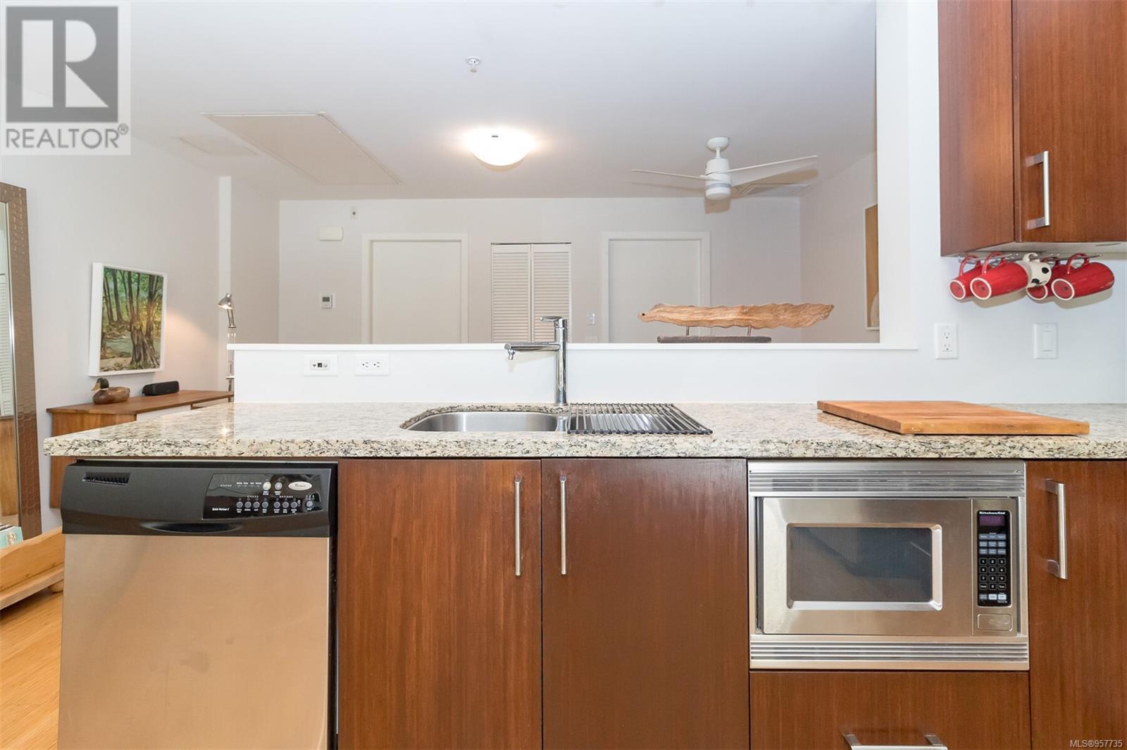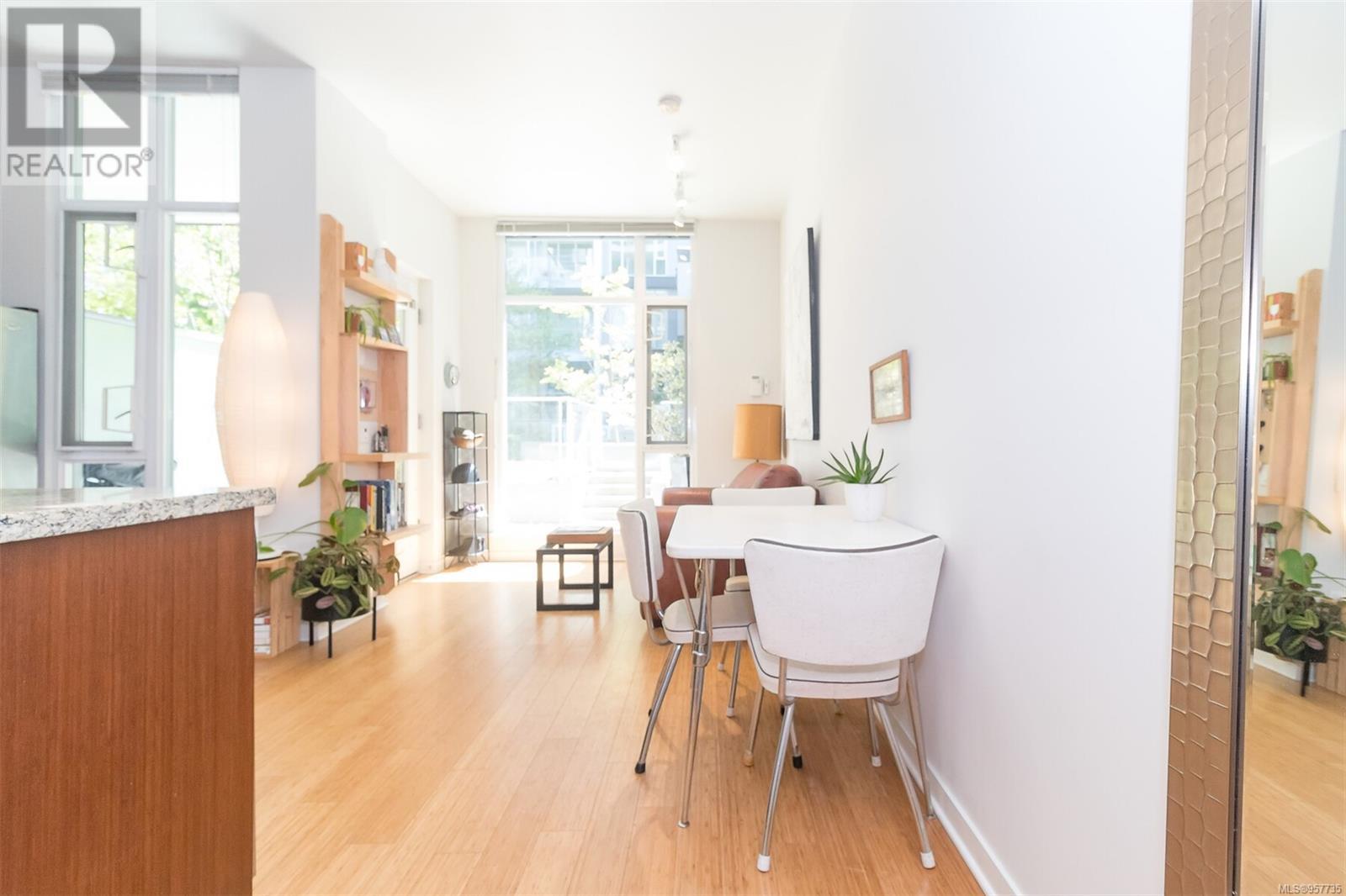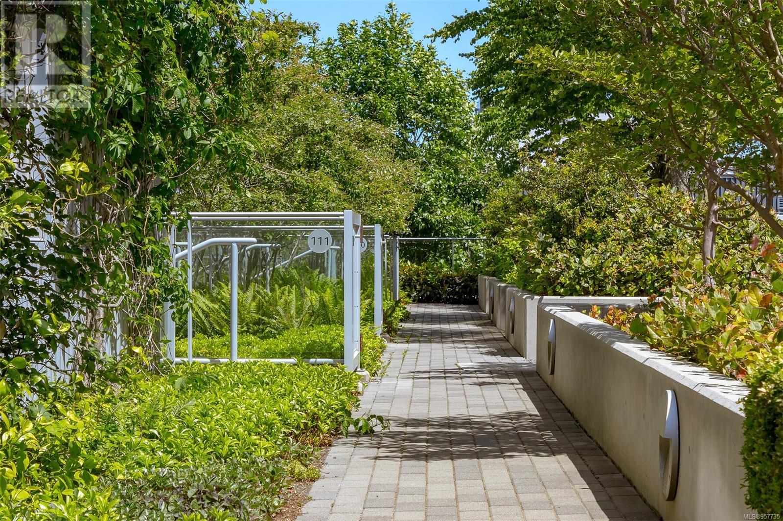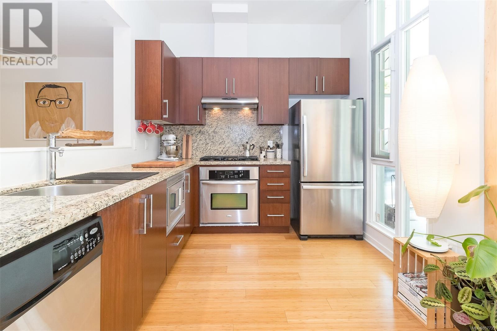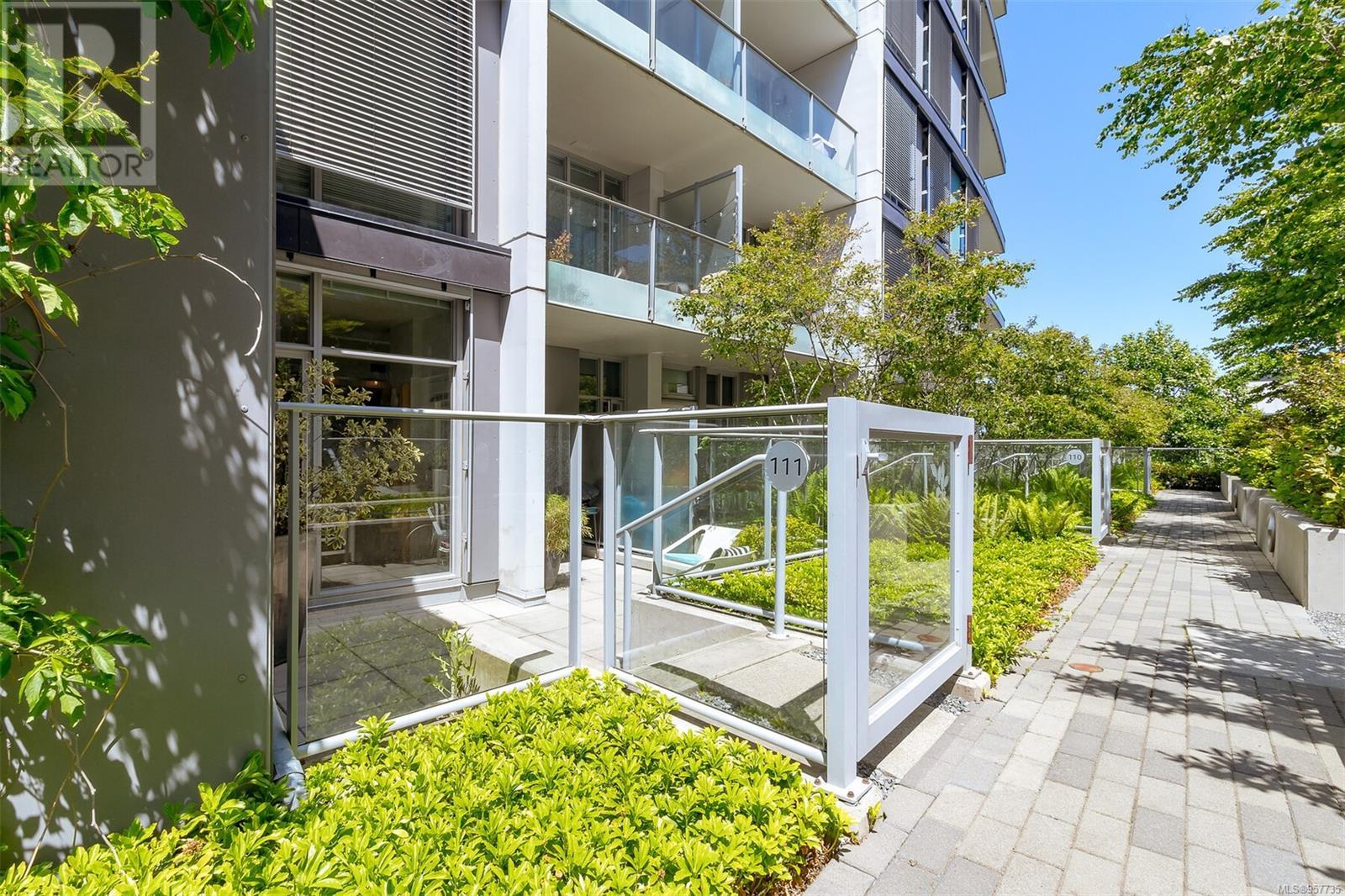 Vic West Living at is best in this bright and stylish south facing garden level suite in the popular Balance building at Dockside Green, just steps away from the Inner Harbour and everything Victoria has to offer. With its private entry from the garden terrace, this open concept suite boasts ample living space, a large kitchen with plenty of cabinets and an eating area. The 9' ceilings and soaring windows flood the space with natural light. Additional highlights include a soaker tub with modern glass shower doors, a walk-in closet, in-suite laundry, granite countertops, stainless steel appliances, and remote-controlled blinds. The LEED-certified Dockside Green incorporates innovative on-site amenities such as sewage treatment, water conservation and reclamation systems. Conveniently located along the Galloping Goose Trail for easy connectivity to bike and walking paths. Underground parking and storage are also included. (id:22211)