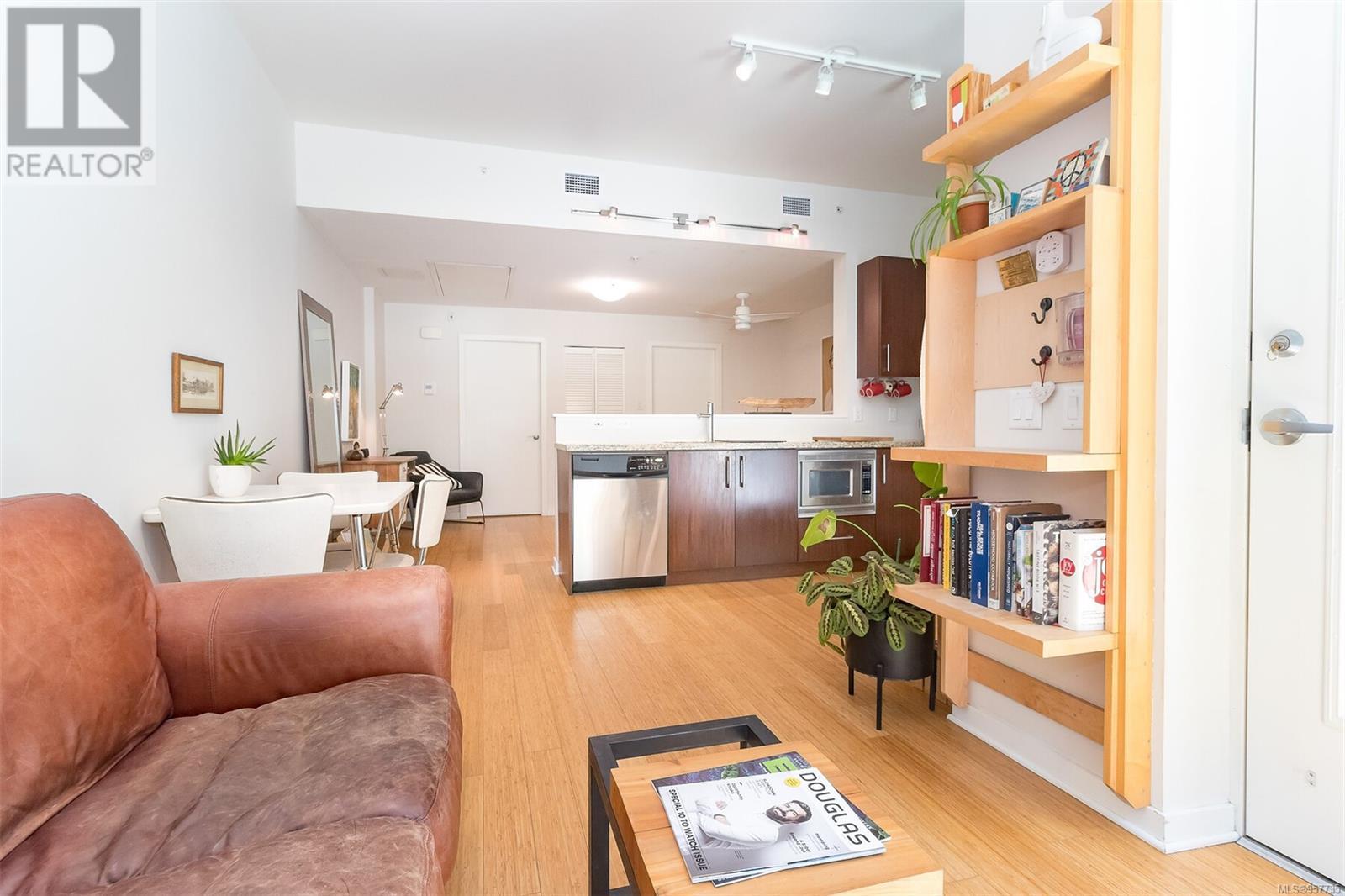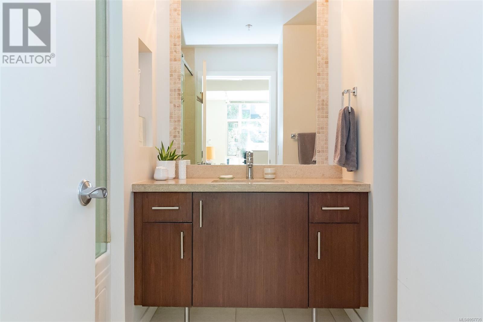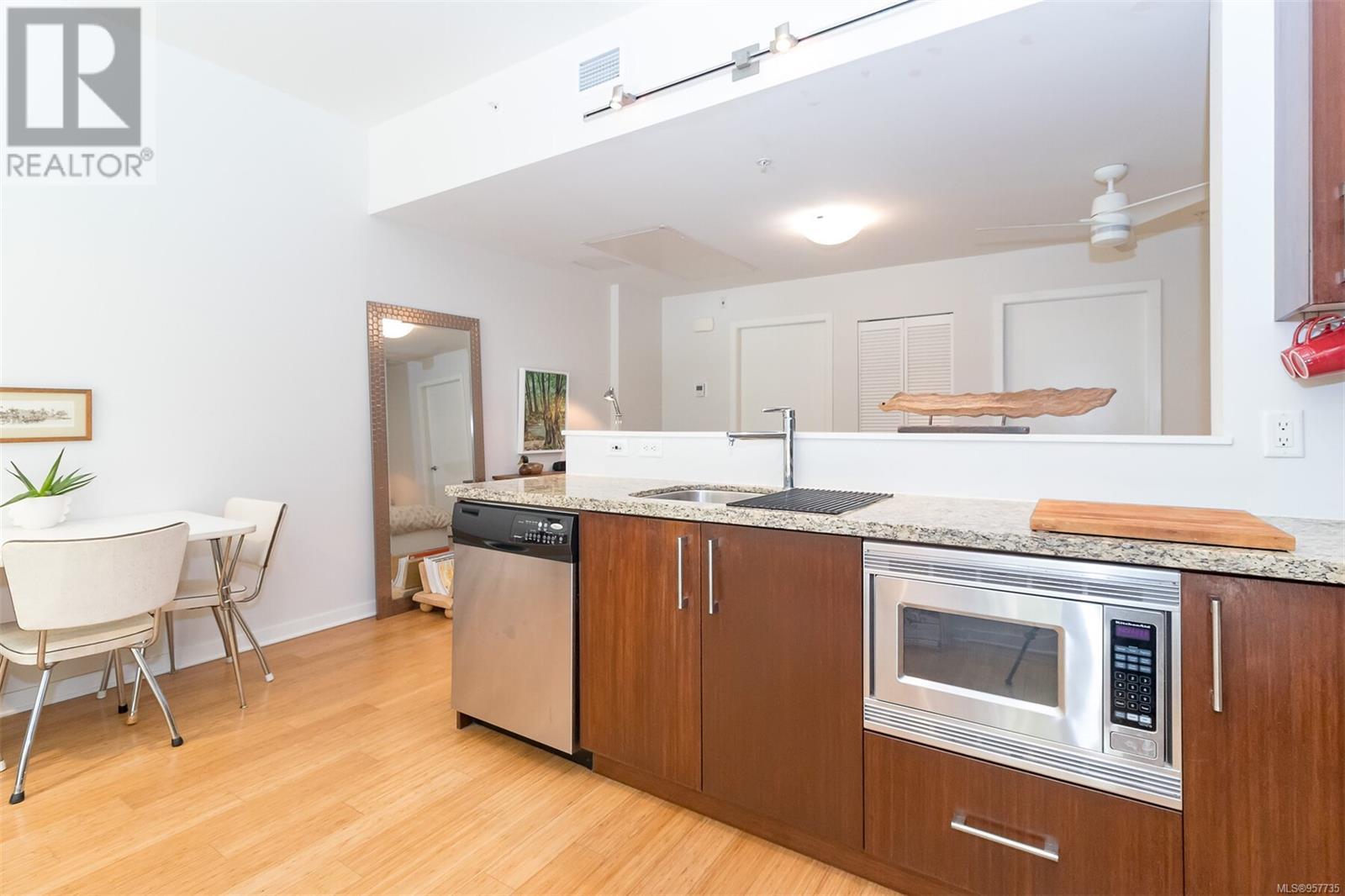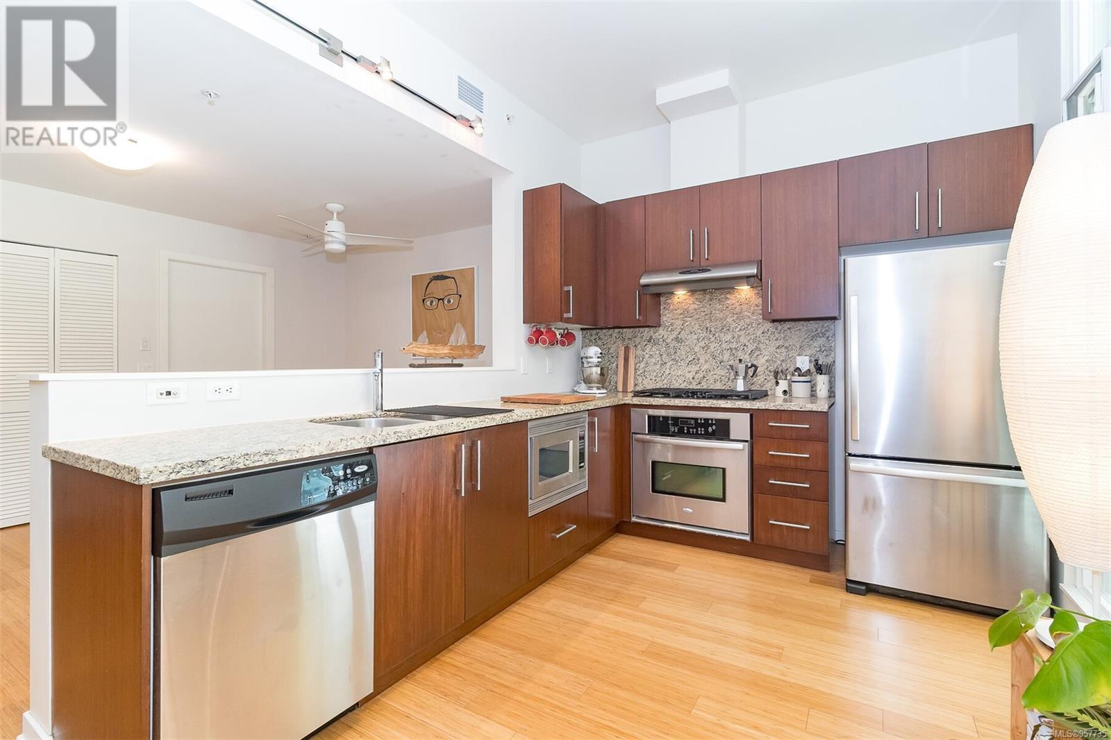 Vic West Living at is best in this bright and stylish south facing garden level suite in the popular Balance building at Dockside Green, just steps away from the Inner Harbour and everything Victoria has to offer. With its private entry from the garden terrace, this open concept suite boasts ample living space, a large kitchen with plenty of cabinets and an eating area. The 9' ceilings and soaring windows flood the space with natural light. Additional highlights include a soaker tub with modern glass shower doors, a walk-in closet, in-suite laundry, granite countertops, stainless steel appliances, and remote-controlled blinds. The LEED-certified Dockside Green incorporates innovative on-site amenities such as sewage treatment, water conservation and reclamation systems. Conveniently located along the Galloping Goose Trail for easy connectivity to bike and walking paths. Underground parking and storage are also included. (id:22211)