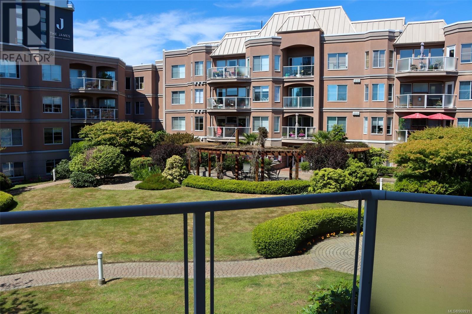 This charming and spacious 2-bed, 1256 sqft condo in excellent original condition is a hidden gem just a short walk from downtown Victoria sitting on the vibrant edge of James Bay just steps from the inner harbour. Enjoy serene courtyard views from the quiet side of the building, boasting desirable south and west exposure for natural light all day. This rare peninsula unit boasts less shared walls then exterior walls providing unparalleled privacy and tranquility. This meticulously maintained property is perfect for those seeking a blend of convenience and peaceful living in the heart of the city. Kick back and unwind on not one, but to private balconies with the piece of mind in knowing your oasis includes secure underground paring and a secure storage space for those valuables you don't need day to day. (id:22211)