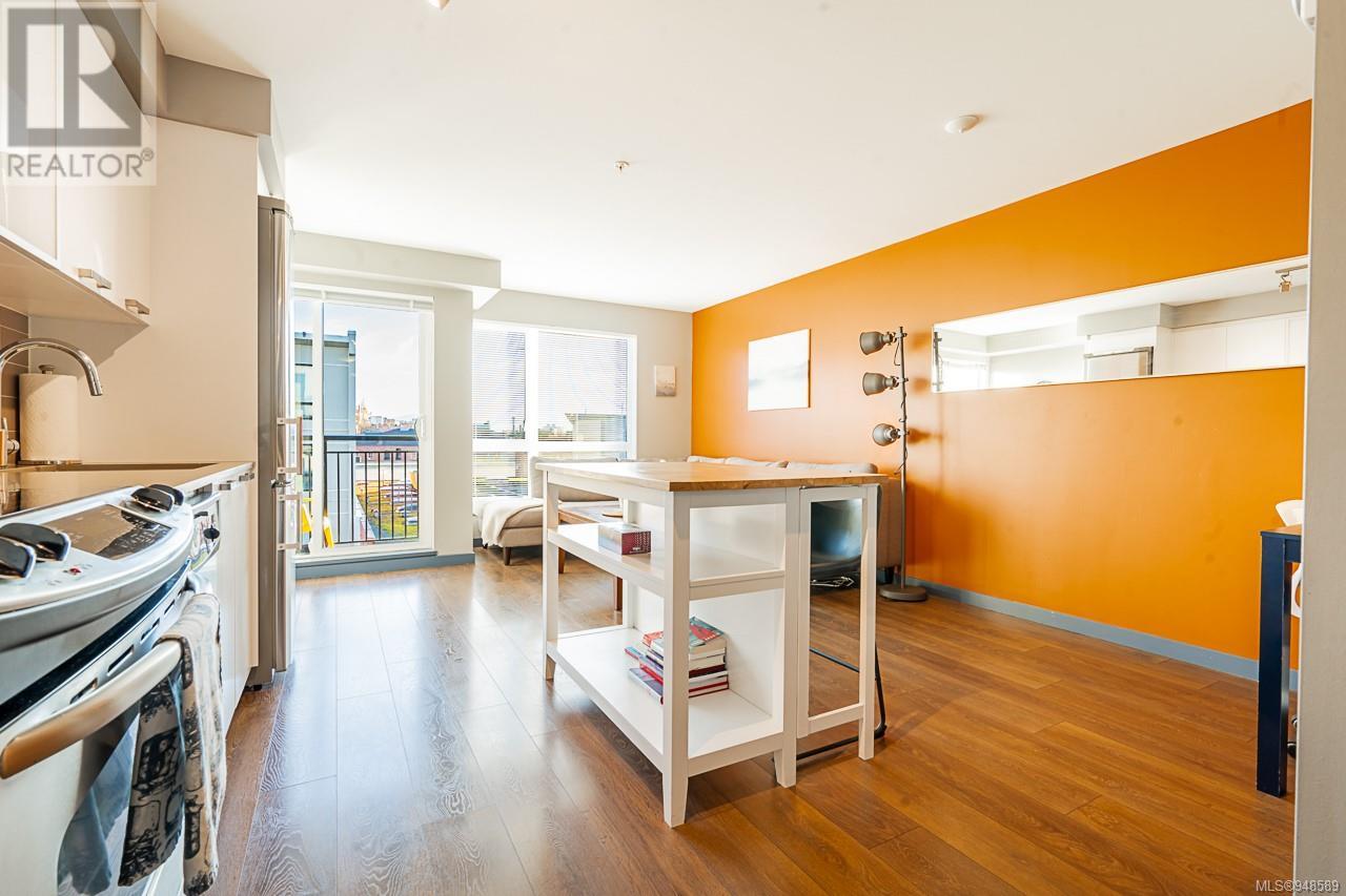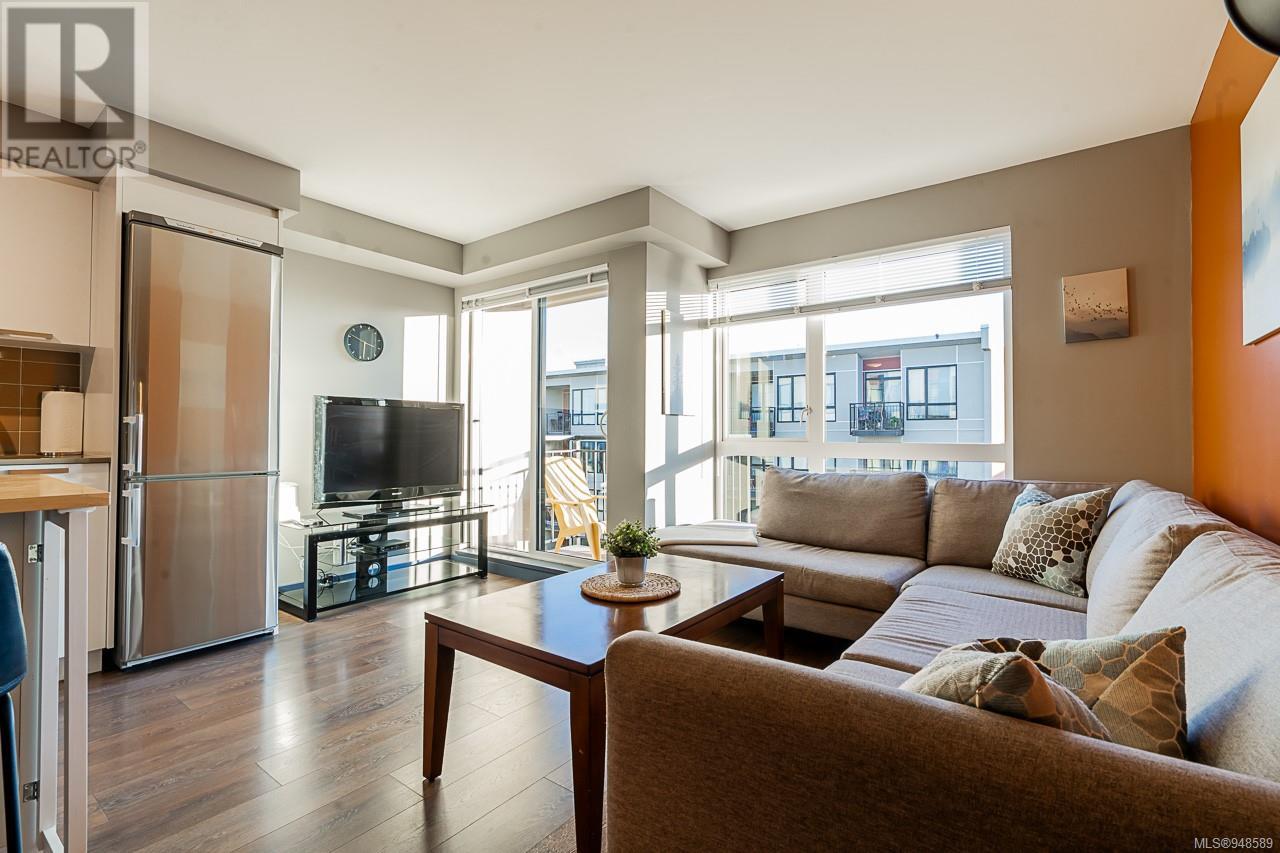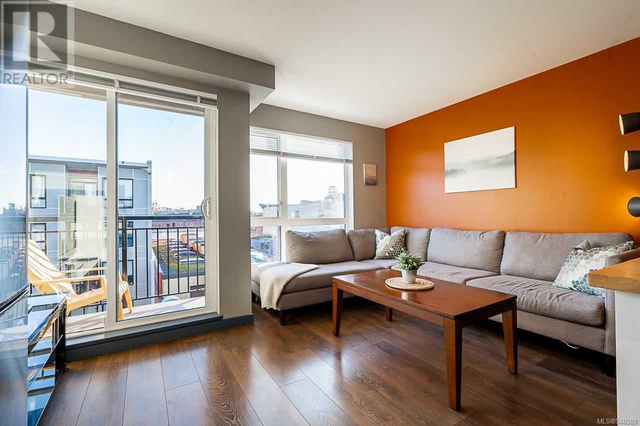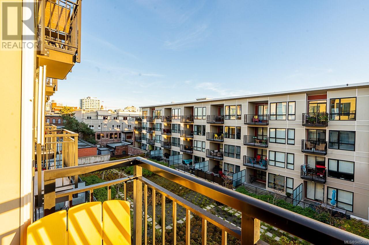 South facing, Top 4th floor unit! This highly functional one-bedroom urban flat is in the heart of Victoria's Old Town District, the downtown hub for local shopping, dining, and transportation. This home features a functional and spacious open plan. Enjoy the bright floor-to-ceiling windows overlooking the private landscaped courtyard below. With a stainless-steel GE appliance, ample storage space, wide-plank laminate flooring, in-suite laundry, and designer finishes. It includes a secure bike/storage locker. Don't miss this opportunity to own a great condo!! (id:22211)