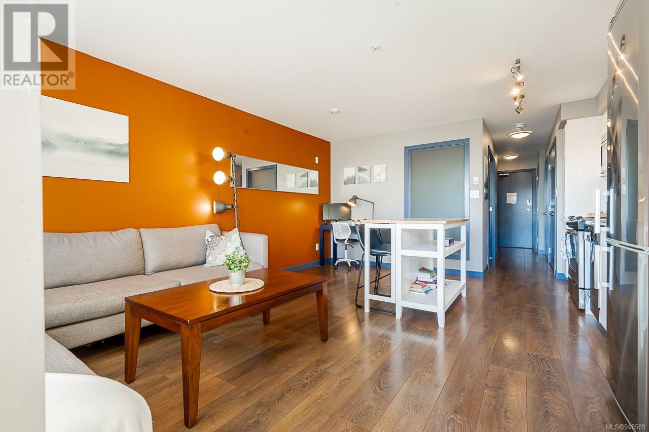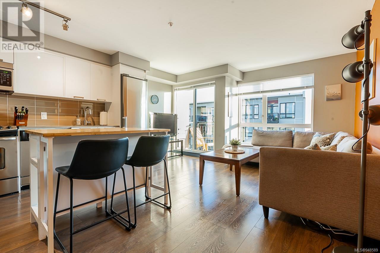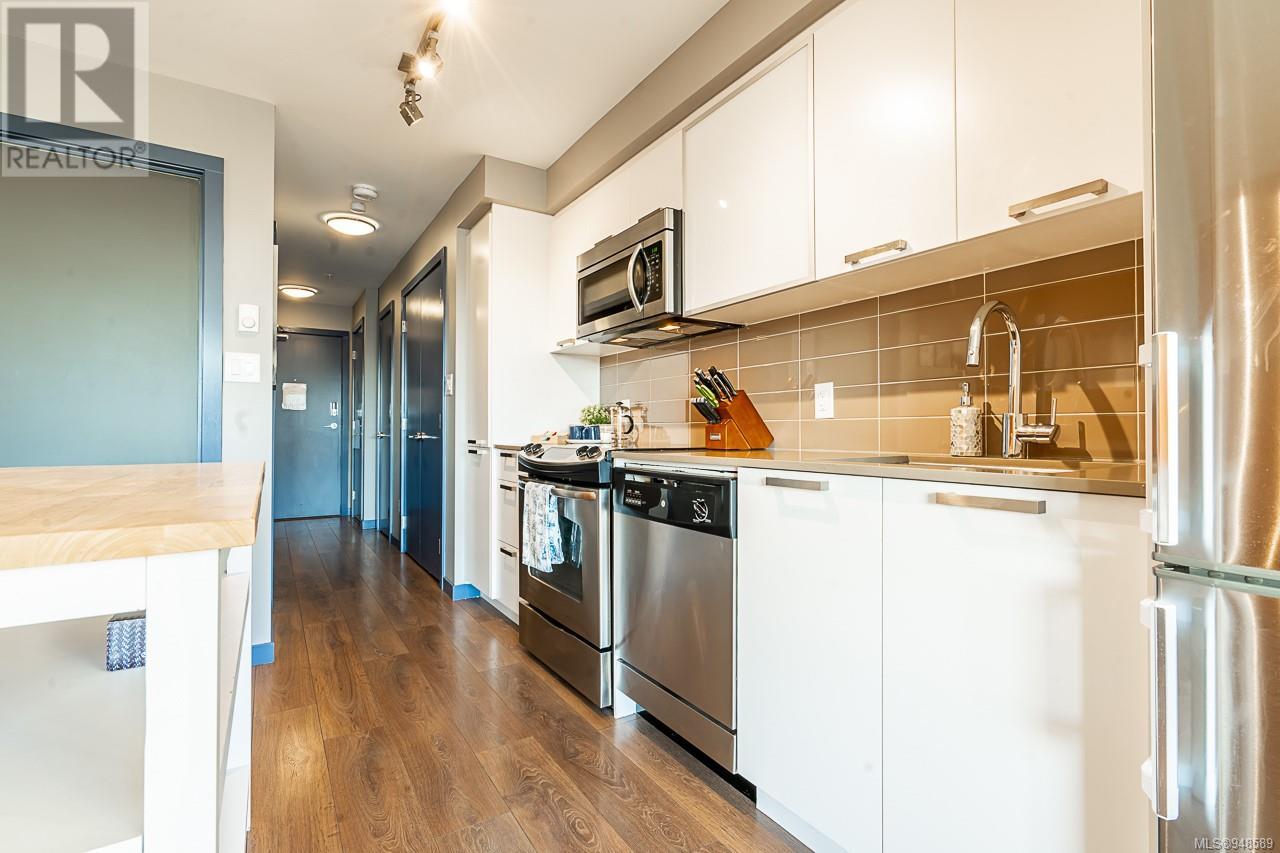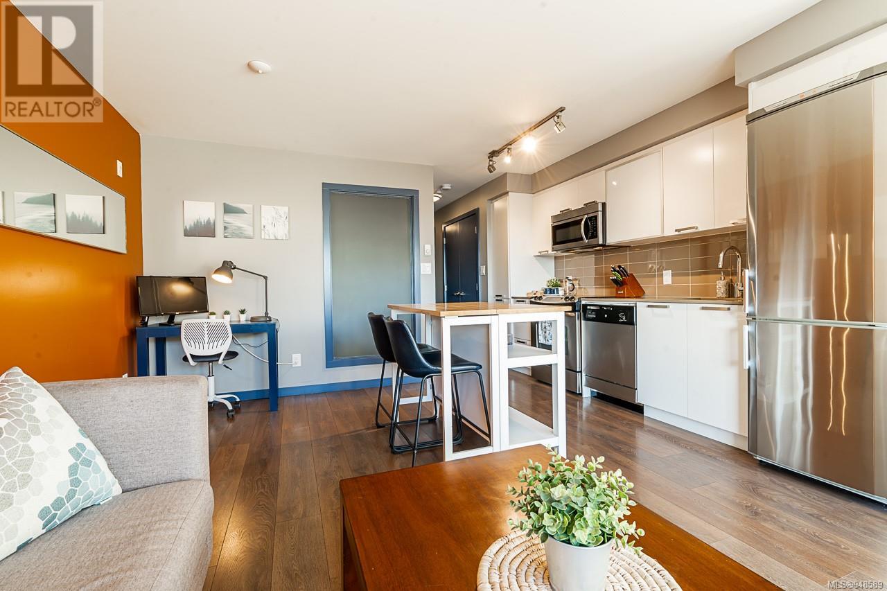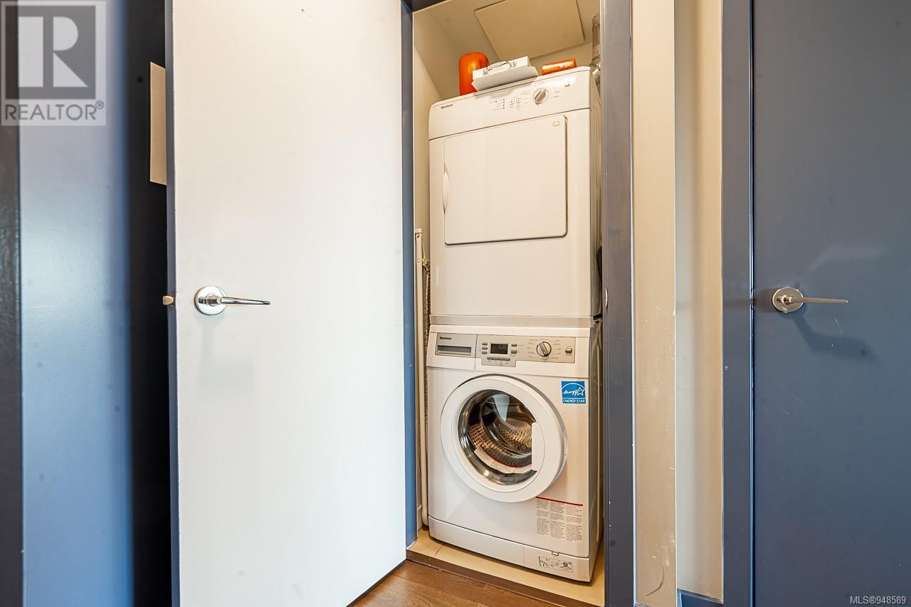 South facing, Top 4th floor unit! This highly functional one-bedroom urban flat is in the heart of Victoria's Old Town District, the downtown hub for local shopping, dining, and transportation. This home features a functional and spacious open plan. Enjoy the bright floor-to-ceiling windows overlooking the private landscaped courtyard below. With a stainless-steel GE appliance, ample storage space, wide-plank laminate flooring, in-suite laundry, and designer finishes. It includes a secure bike/storage locker. Don't miss this opportunity to own a great condo!! (id:22211)
