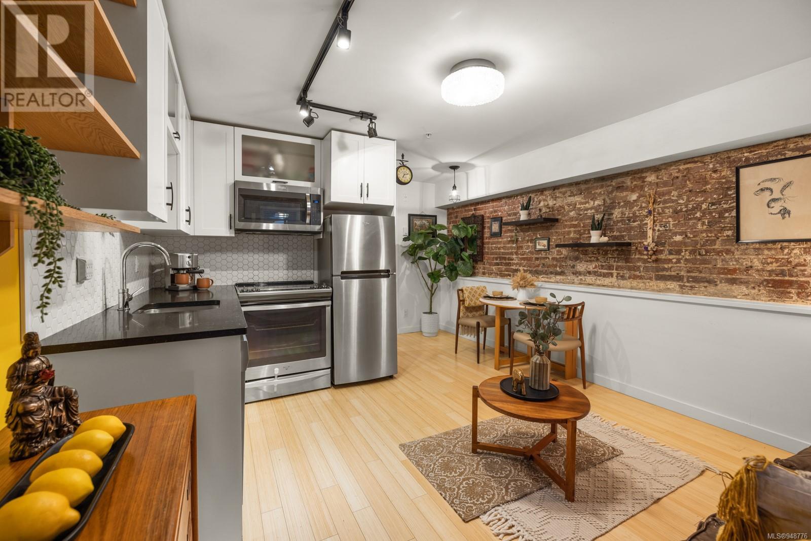 Nestled in the heart of historic Chinatown in Downtown Victoria, this exceptional condo offers a blend of contemporary luxury and timeless allure. With a seamless no-step entry, this residence ensures accessible tranquility away from the bustling city. Meticulously restored in 2017, the building showcases captivating exposed brick walls and a perfect marriage of modernity with classic charm. The private balcony offers a rare sanctuary amidst the downtown core, promising a serene escape. Featuring low strata fees, a strong contingency fund, and the added advantage of NO GST, this property presents a compelling residential opportunity. Situated in one of Downtown Victoria's most coveted areas, this home provides easy access to all the city offers while steeped in the rich cultural heritage of historic Chinatown. Don't miss the chance to own this piece of history and embrace the essence of sophisticated urban living in Victoria (id:22211)