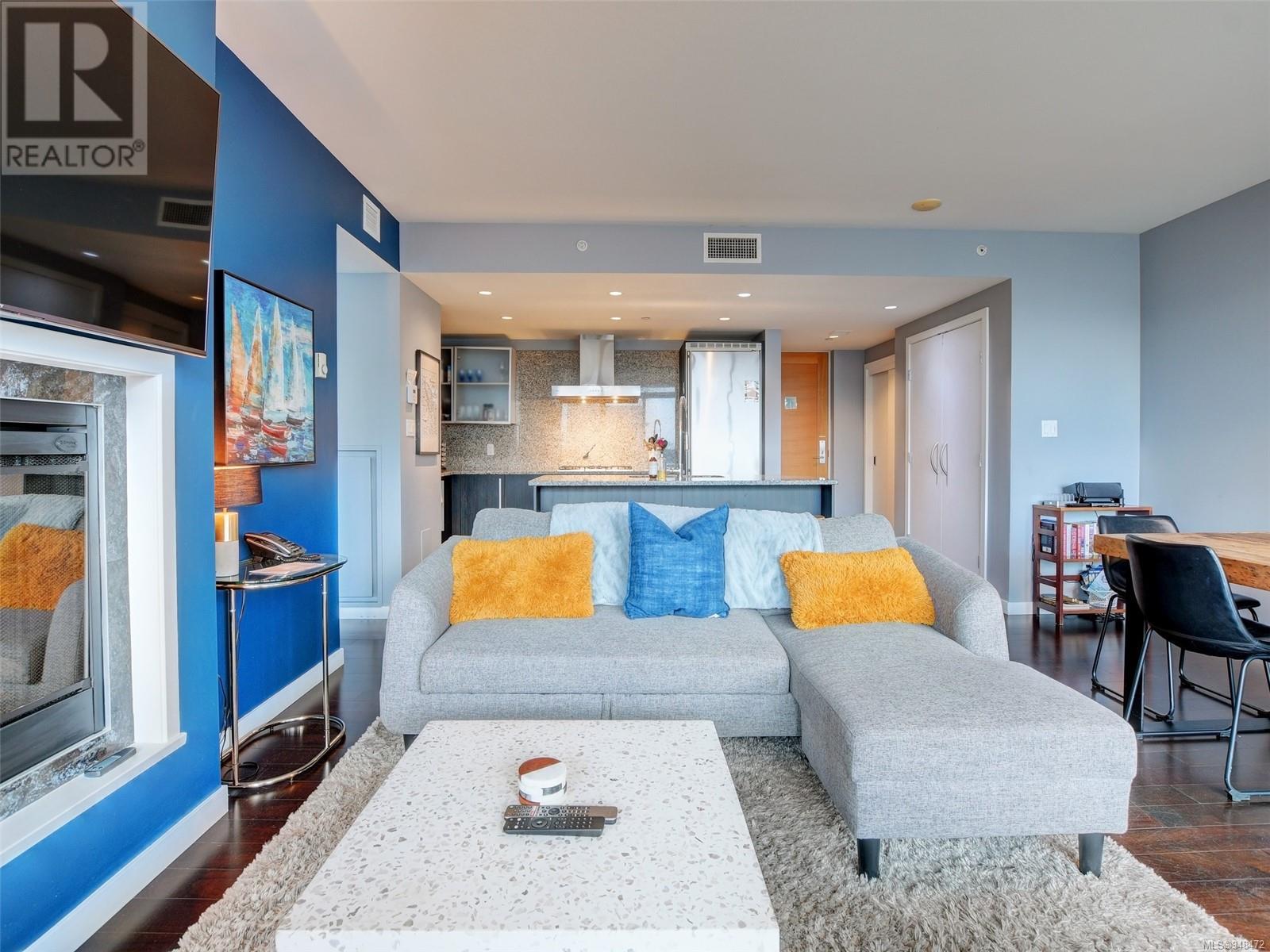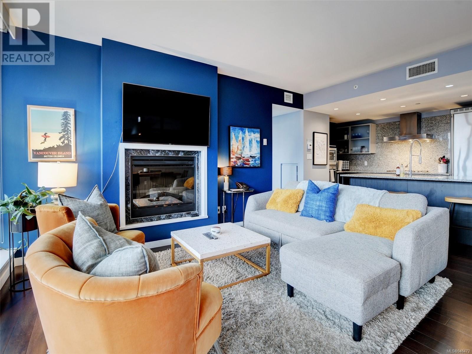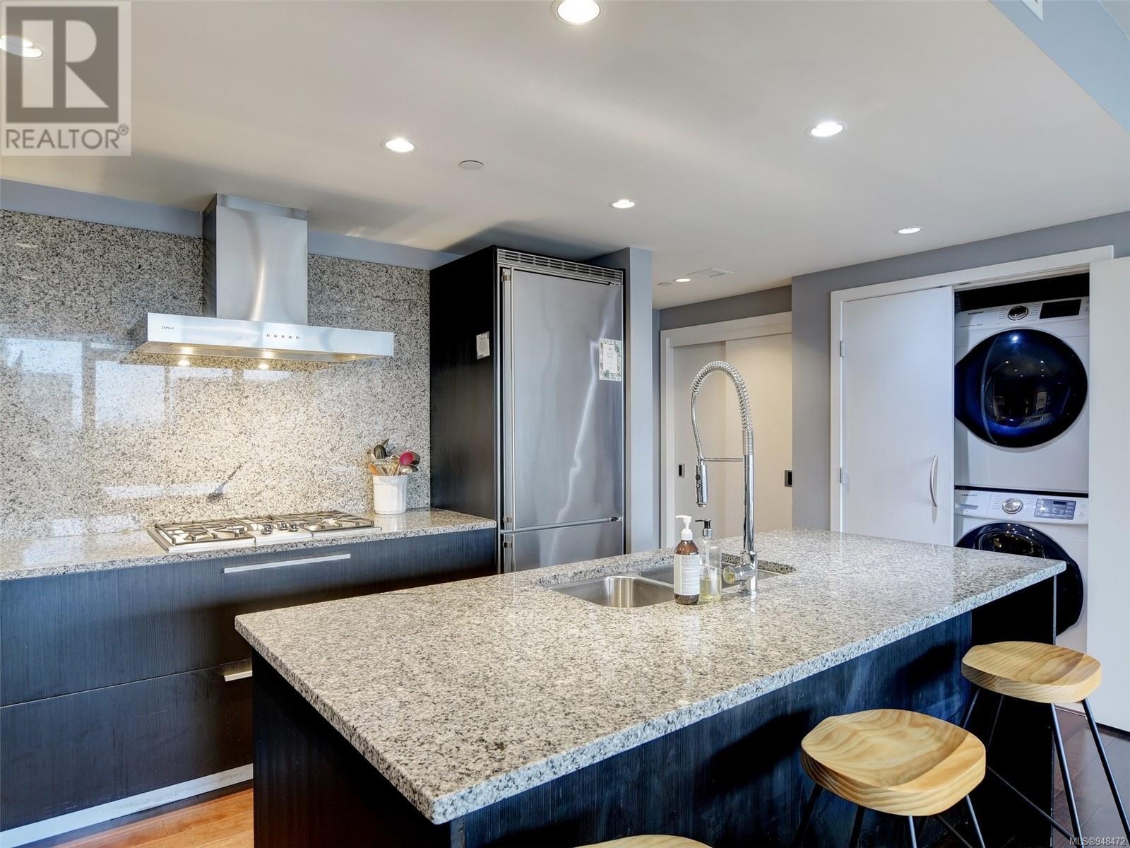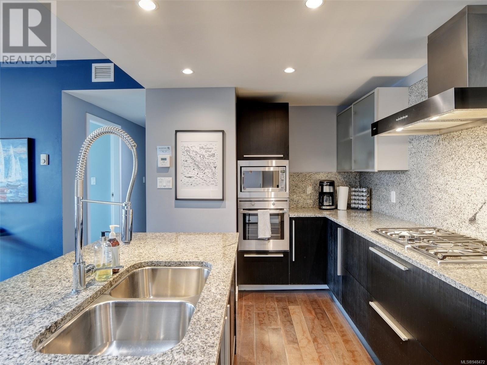 Downtown Victoria luxury condo living at its best! This spacious, 2 bedroom, 2 bath condo is located in The Falls, a steel and concrete building. West facing floor to ceiling windows stream loads of natural light into your open concept living, dining, and kitchen areas. The Italian Schiffini kitchen, with its granite counters, stainless steel appliances and gas cooktop, is a chef’s dream. Beautiful finishes include wood floors and marble bathrooms. The master bedroom has floor to ceiling windows, a walk-in closet, and a spa-like ensuite. Your own heat pump ensures efficient heating and air conditioning for year-round comfort and control. Take in the sunny west exposure and view from your own oversized deck, or enjoy the building’s outdoor heated pool, with surrounding deck, hot-tub and indoor gym for all seasons activities. With a walk score of 95, this home’s prime central location offers something for everyone. (id:22211)
