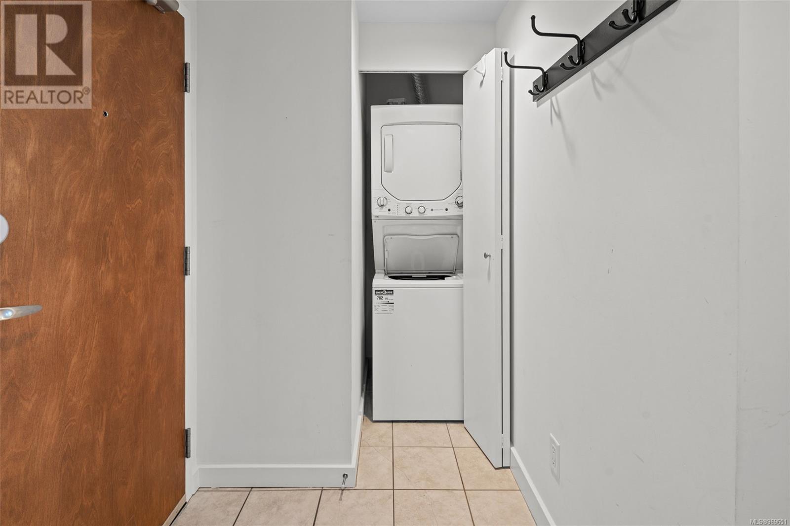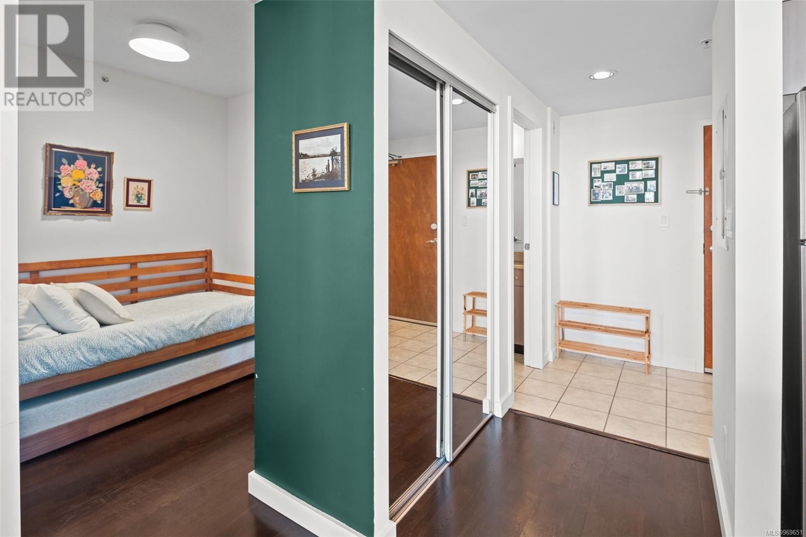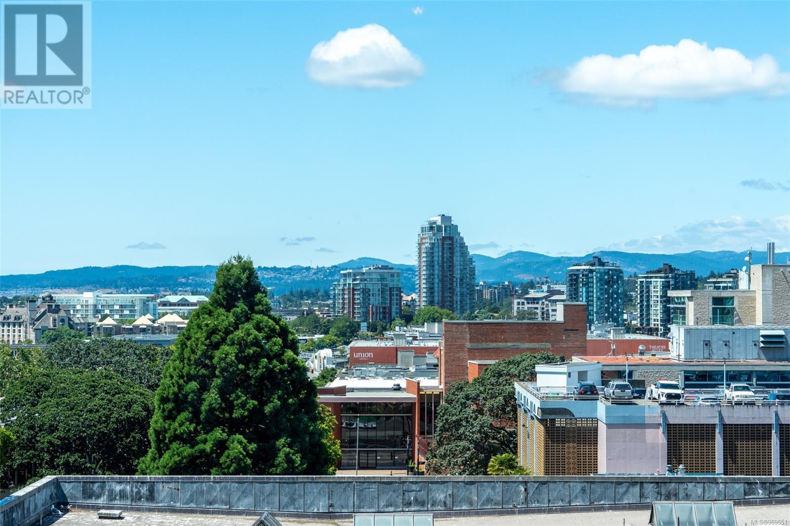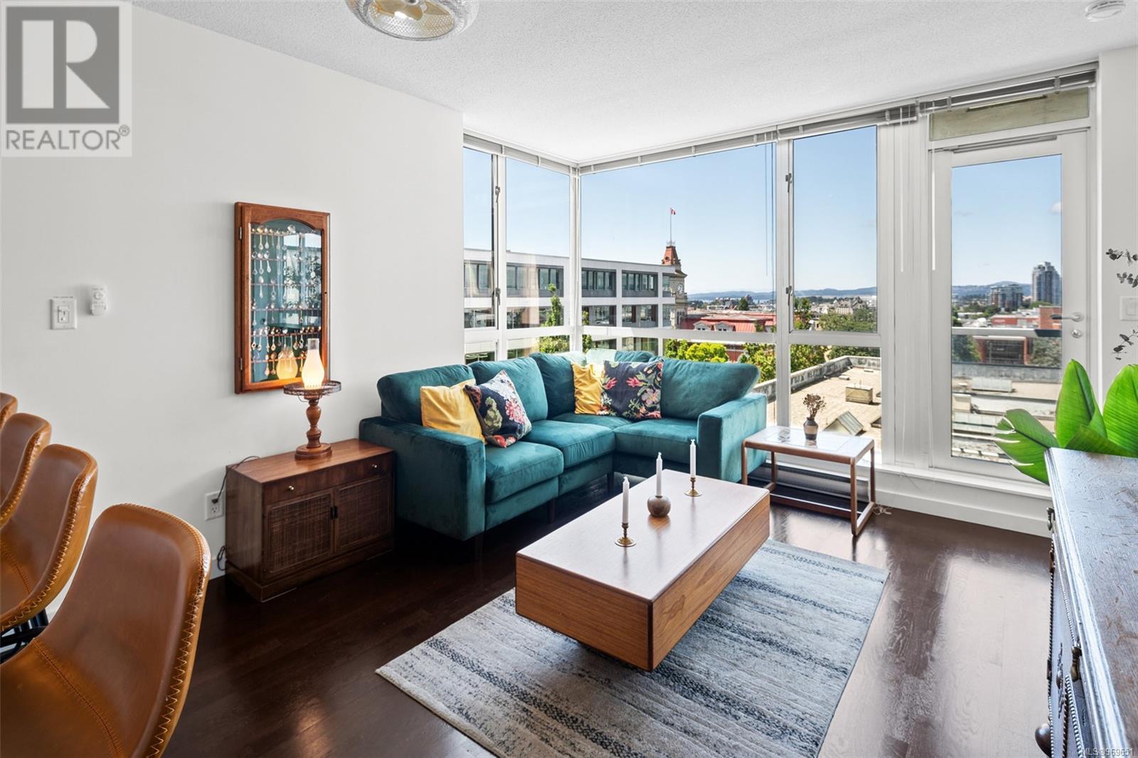 Terrific South West corner one bedroom and den condo with fantastic VIEWS of the inner harbour. The moment you enter this suite you will love the functional layout and views of the harbour from the massive floor to ceiling windows. Conveniently located on a quiet street in the heart of downtown, it's a quick walk to Chinatown, the harbour and all the shops you could ever need. This secure and solid steel & concrete building has a luxurious feel and has a resident caretaker ensuring you always feel at home. There are rich hardwood floors, stainless steel appliances, breakfast bar with in-suite laundry. It's pet friendly, allows rentals and has a secure parking space with additional storage. (id:22211)