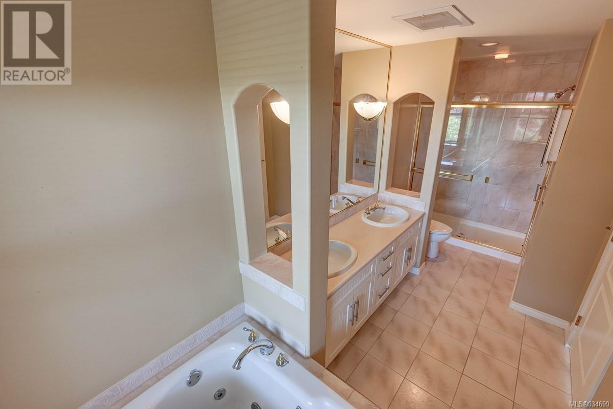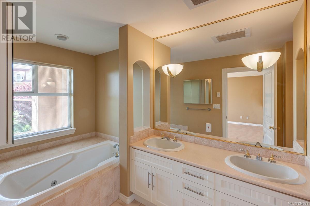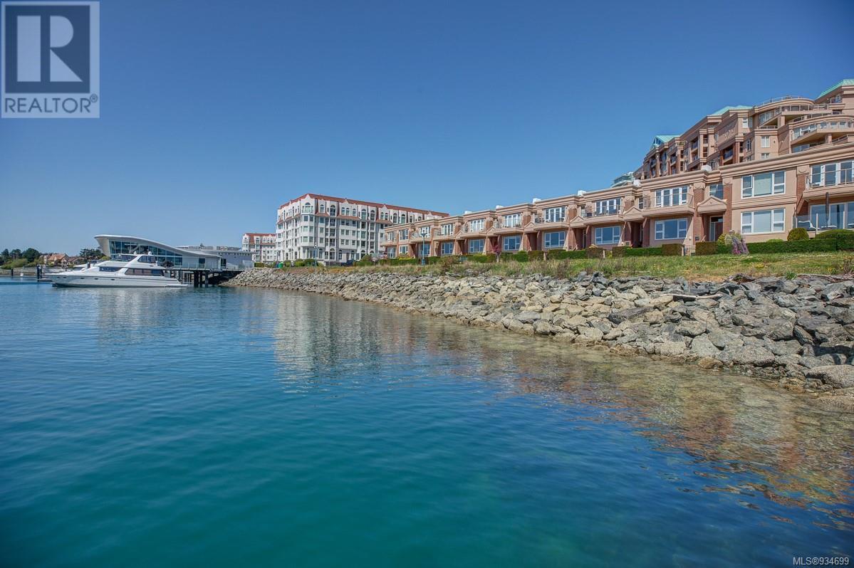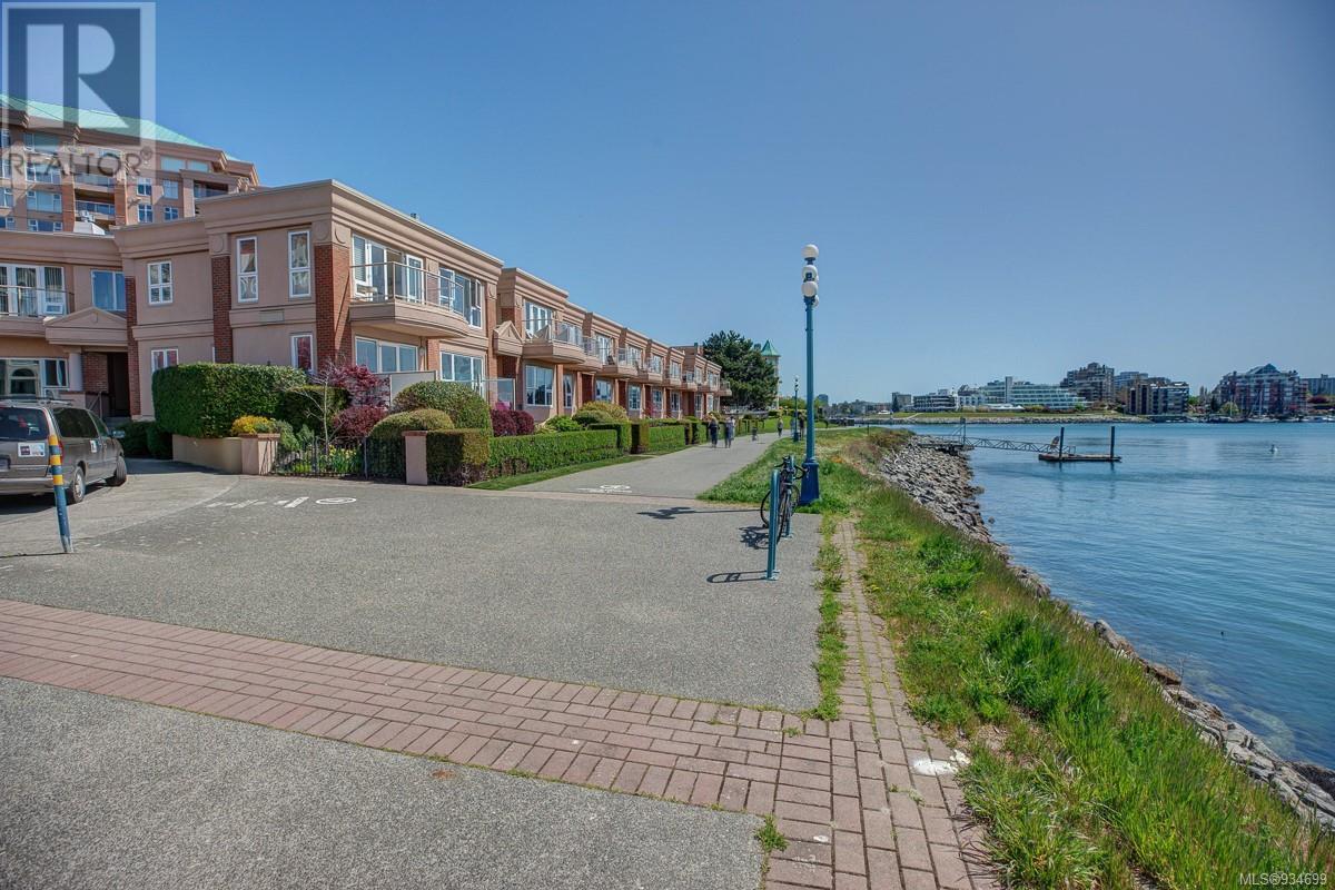 Spacious executive townhome located at Mariners Landing - one of Victoria's premier residential condomonium/townhome complexes - located in the beautiful Songhees Waterfront area - just a short stroll to downtown along the Westsong Walkway. This unit offers over 2600 sq. ft on 3 levels plus a private double car garage (rouoghed in for EV charging) within the secured underground parking of the complex. Main floor offers a large living room/dining room with a cozy gas fireplace and then an updated kitchen with a breakfast nook, adjoining family room with a fireiplace, patio for bbq's and overlooking the lovely landscaped courtyard. Primary bedroom and 2 additional bedrooms on the upper level and the lower level offers a media room or perfect guest bedroom with its own ensuite. Well managed complex with a strong financial history, note that the strata fees are for the upcoming year, bbq's permitted, 2 dogs (no size restrictions). Great community spirit within the complex! (id:22211)