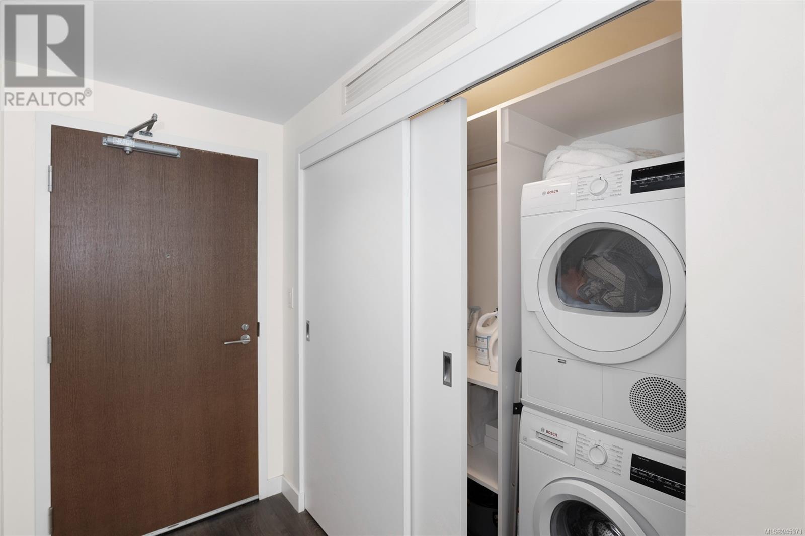 Welcome home to The Yates on Yates. Beautifully finished including some rare luxuries such as forced air/heating & cooling. Higher end appliance package to excite your inner culinary genius with integrated Fridge/freezer & drawer style d/w. Flexible open plan living with the perfect patio for downtown living and a very generous bedroom with large walk in closet. Enjoy the common Chard signature Rooftop patio with BBQ's, Community Garden, kids play area and dog run...oh and VIEWS!!! Come see for yourself and start living the vibrant downtown Victoria lifestyle with all your amenity needs in WALKING distance from Groceries and restaurants, to movies and more. Steps to transit and a short stroll to the inner harbour. Includes external storage and secure bike rack. Schedule a private viewing today! (id:22211)