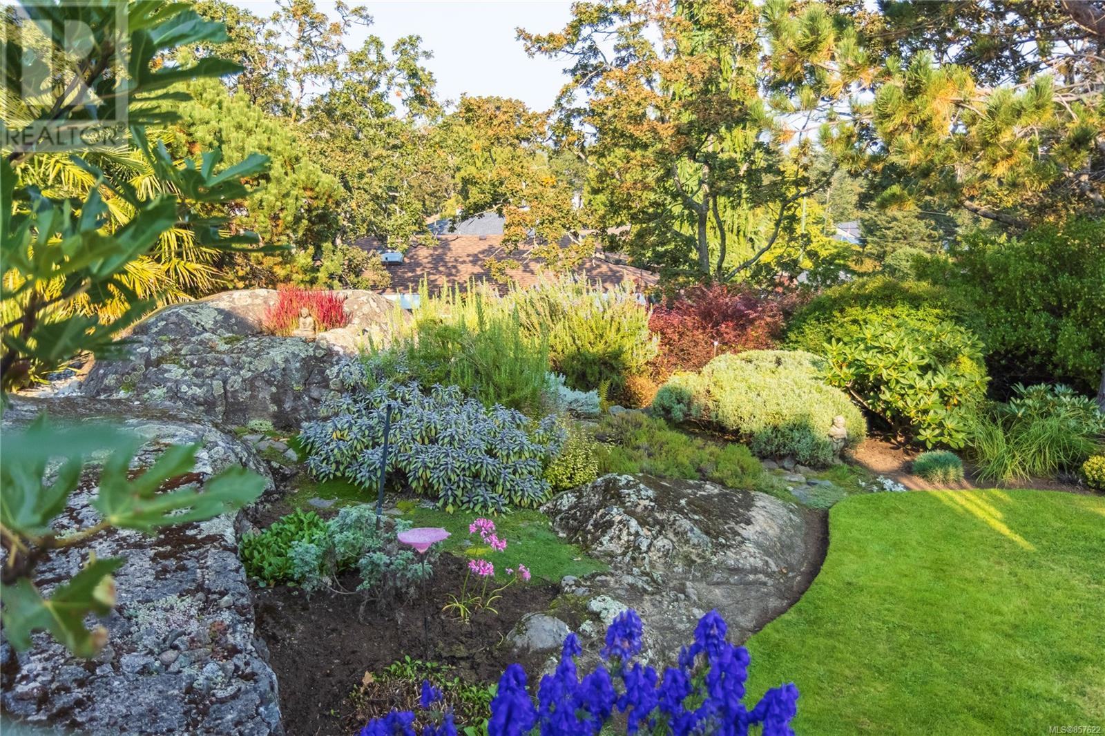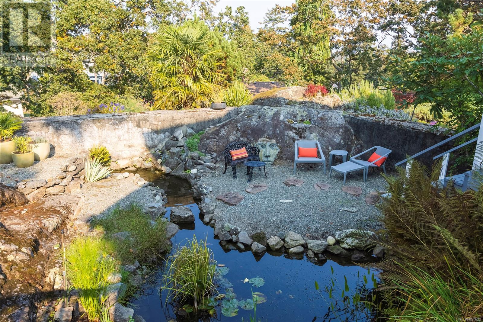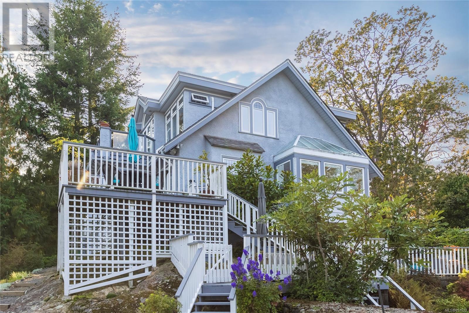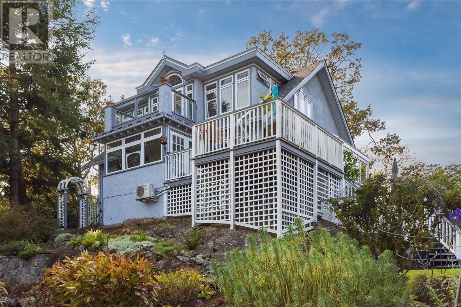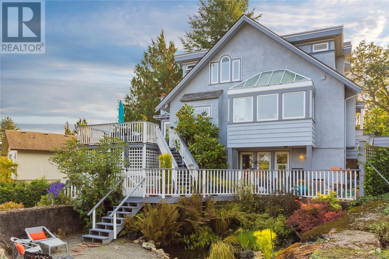 A Rockland Beauty ""Center Hall Dutch Colonial Revival"" perched on a rocky knoll with stunning views to the city,ocean & mountains.Situated on .25 acre on one of Victoria's most sought after tree lined lanes in a coveted and idyllic neighborhood.Elegant & fresh 3 bed/4 bath home has been meticulously cared for with many updates:New appliances, gas connection, heat pump & fresh paint.Main level offers gleaming hardwood floors,dinning,den & living room with gas F/P,bright kitchen with conservatory windows & sunroom opening onto the South facing deck.Upstairs there is a spacious master bed with ensuite,walk-in closet & new French doors opening onto a private balcony to enjoy the beautiful views, a 2nd bed with it's own ensuite.Lower level there is a laundry room,3 pc bath & family room/3 rd bed with French doors opening onto a garden patio.Located on a beautiful garden lot with meandering paths,rocky outcroppings and a trickling waterfall pond.Prepare to fall in love with this unique home. (id:22211)