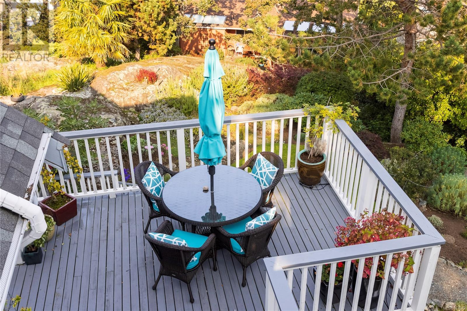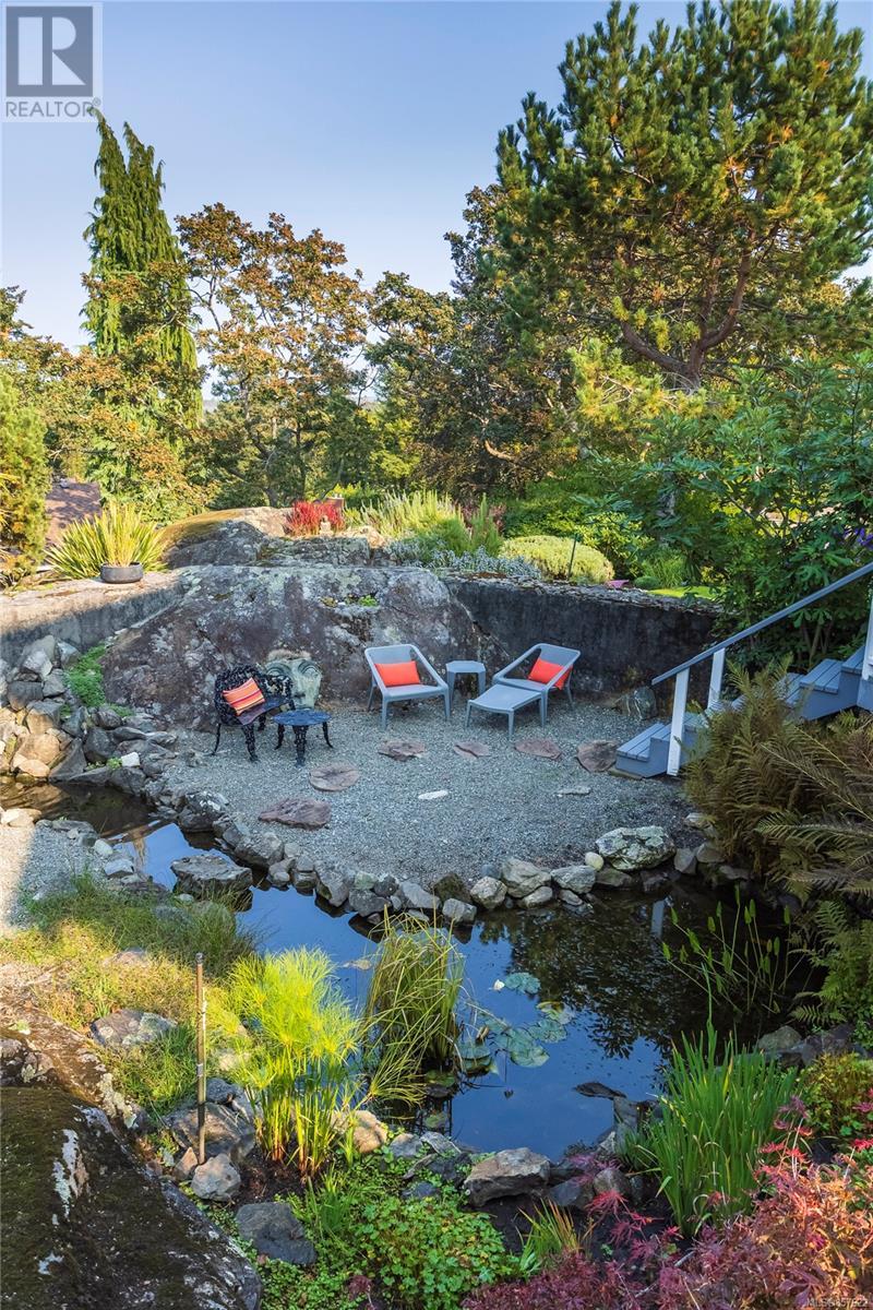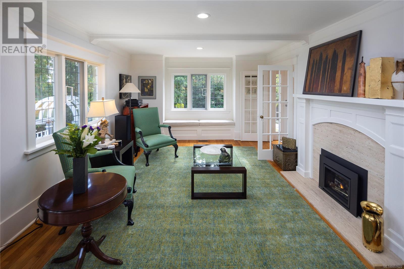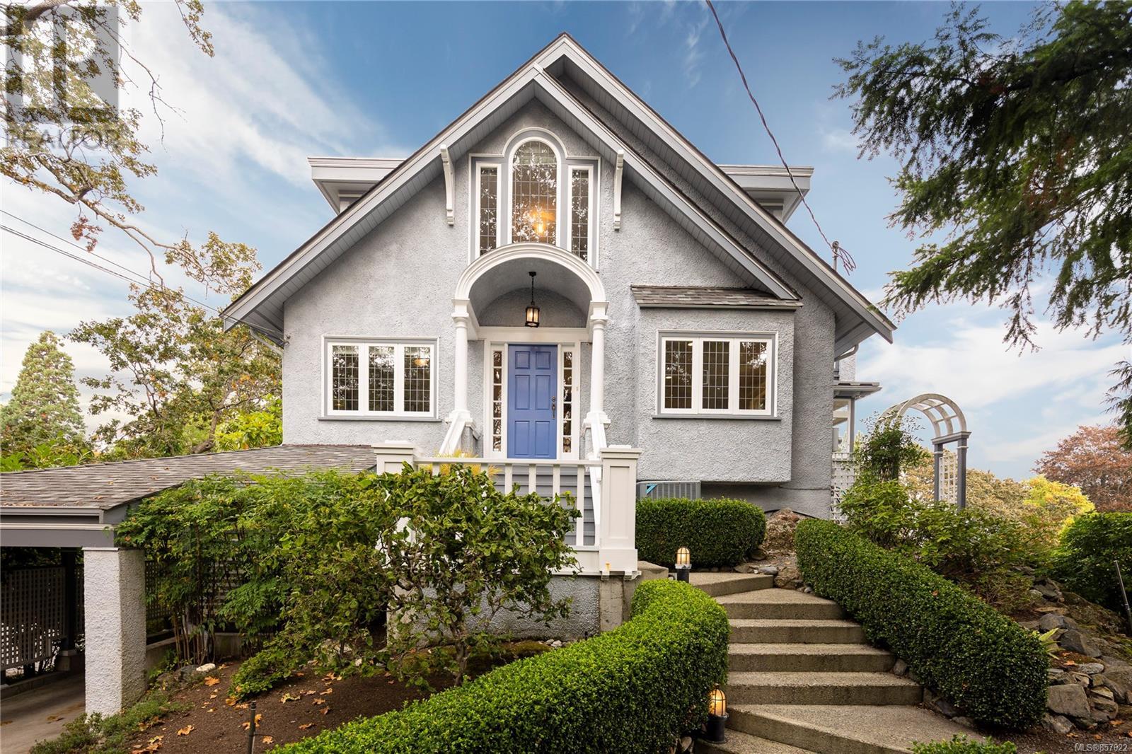 A Rockland Beauty ""Center Hall Dutch Colonial Revival"" perched on a rocky knoll with stunning views to the city,ocean & mountains.Situated on .25 acre on one of Victoria's most sought after tree lined lanes in a coveted and idyllic neighborhood.Elegant & fresh 3 bed/4 bath home has been meticulously cared for with many updates:New appliances, gas connection, heat pump & fresh paint.Main level offers gleaming hardwood floors,dinning,den & living room with gas F/P,bright kitchen with conservatory windows & sunroom opening onto the South facing deck.Upstairs there is a spacious master bed with ensuite,walk-in closet & new French doors opening onto a private balcony to enjoy the beautiful views, a 2nd bed with it's own ensuite.Lower level there is a laundry room,3 pc bath & family room/3 rd bed with French doors opening onto a garden patio.Located on a beautiful garden lot with meandering paths,rocky outcroppings and a trickling waterfall pond.Prepare to fall in love with this unique home. (id:22211)