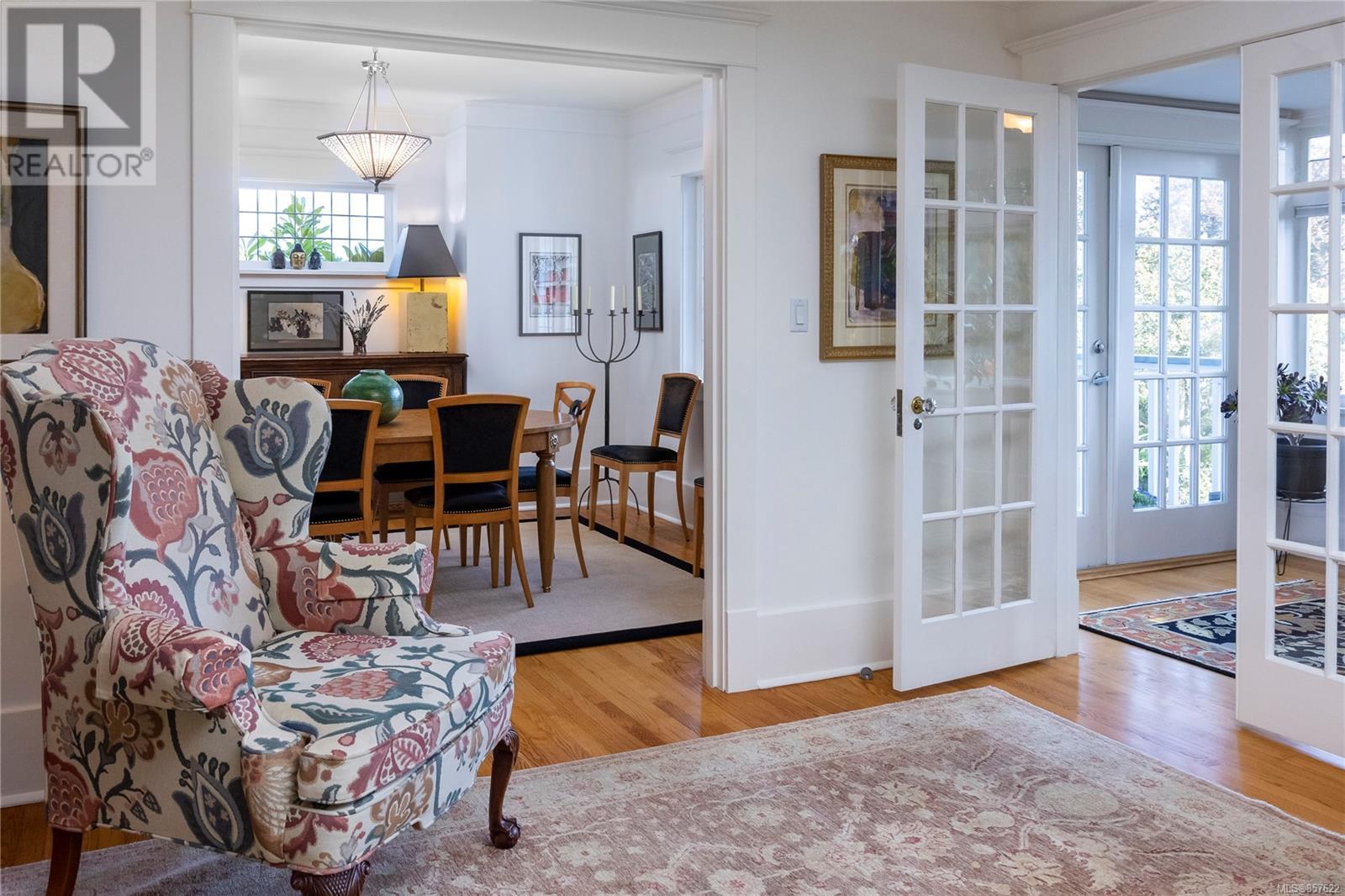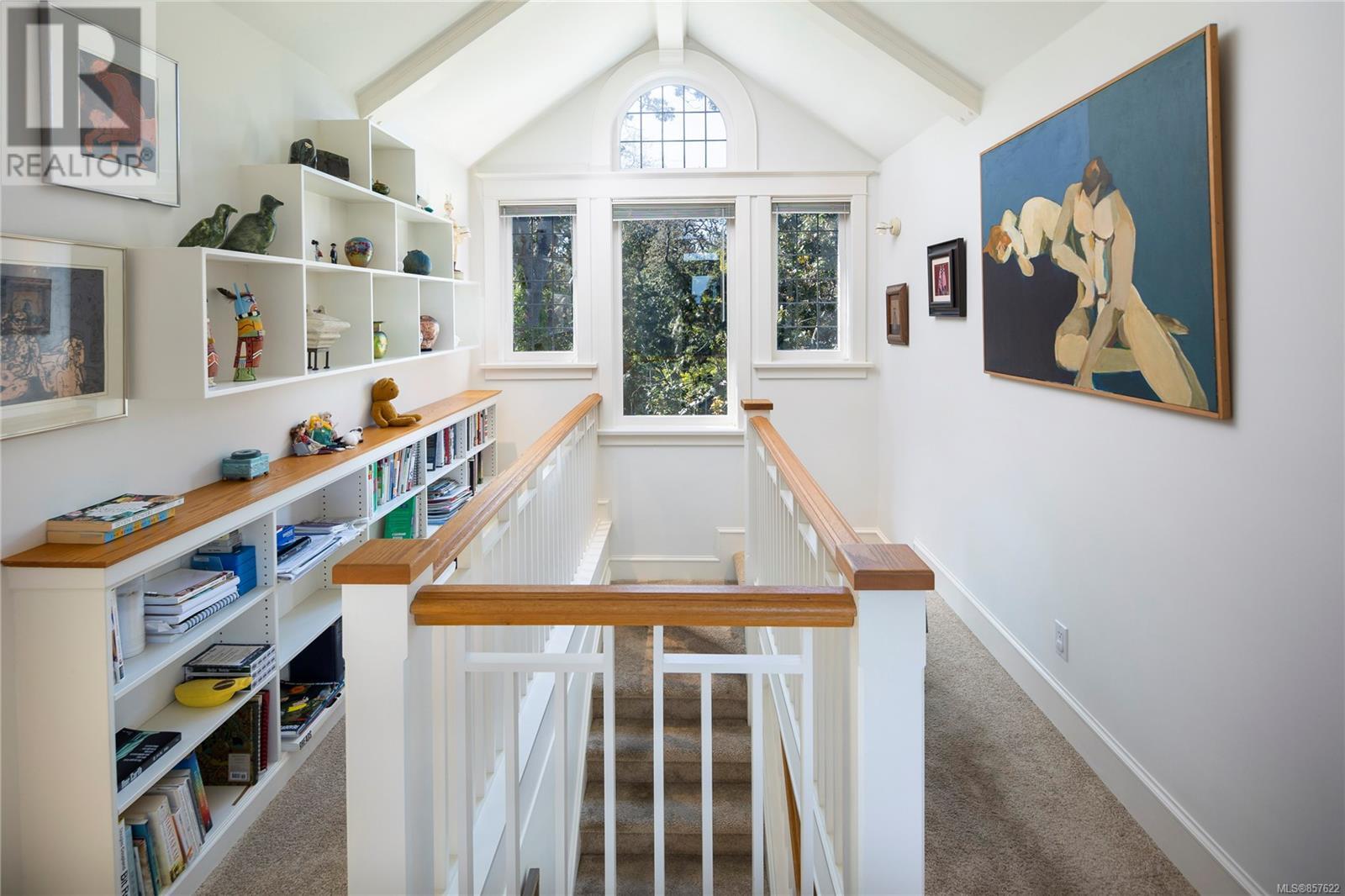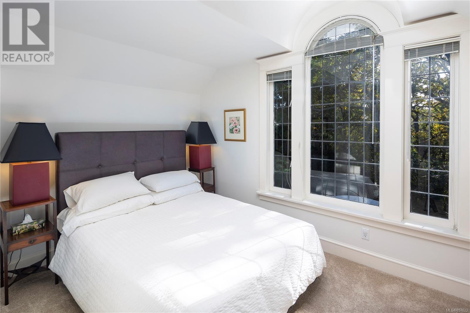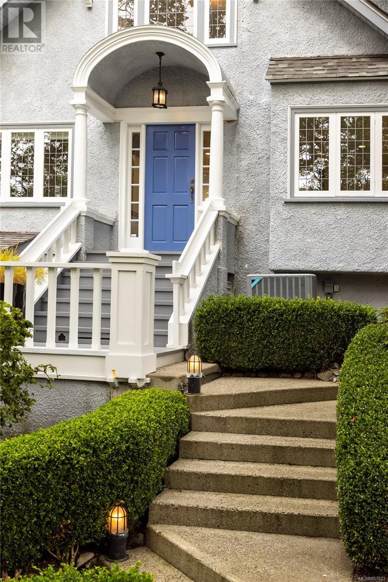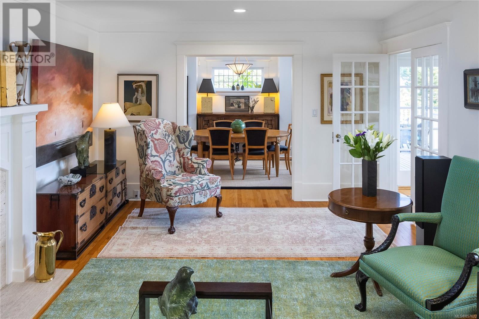 A Rockland Beauty ""Center Hall Dutch Colonial Revival"" perched on a rocky knoll with stunning views to the city,ocean & mountains.Situated on .25 acre on one of Victoria's most sought after tree lined lanes in a coveted and idyllic neighborhood.Elegant & fresh 3 bed/4 bath home has been meticulously cared for with many updates:New appliances, gas connection, heat pump & fresh paint.Main level offers gleaming hardwood floors,dinning,den & living room with gas F/P,bright kitchen with conservatory windows & sunroom opening onto the South facing deck.Upstairs there is a spacious master bed with ensuite,walk-in closet & new French doors opening onto a private balcony to enjoy the beautiful views, a 2nd bed with it's own ensuite.Lower level there is a laundry room,3 pc bath & family room/3 rd bed with French doors opening onto a garden patio.Located on a beautiful garden lot with meandering paths,rocky outcroppings and a trickling waterfall pond.Prepare to fall in love with this unique home. (id:22211)
