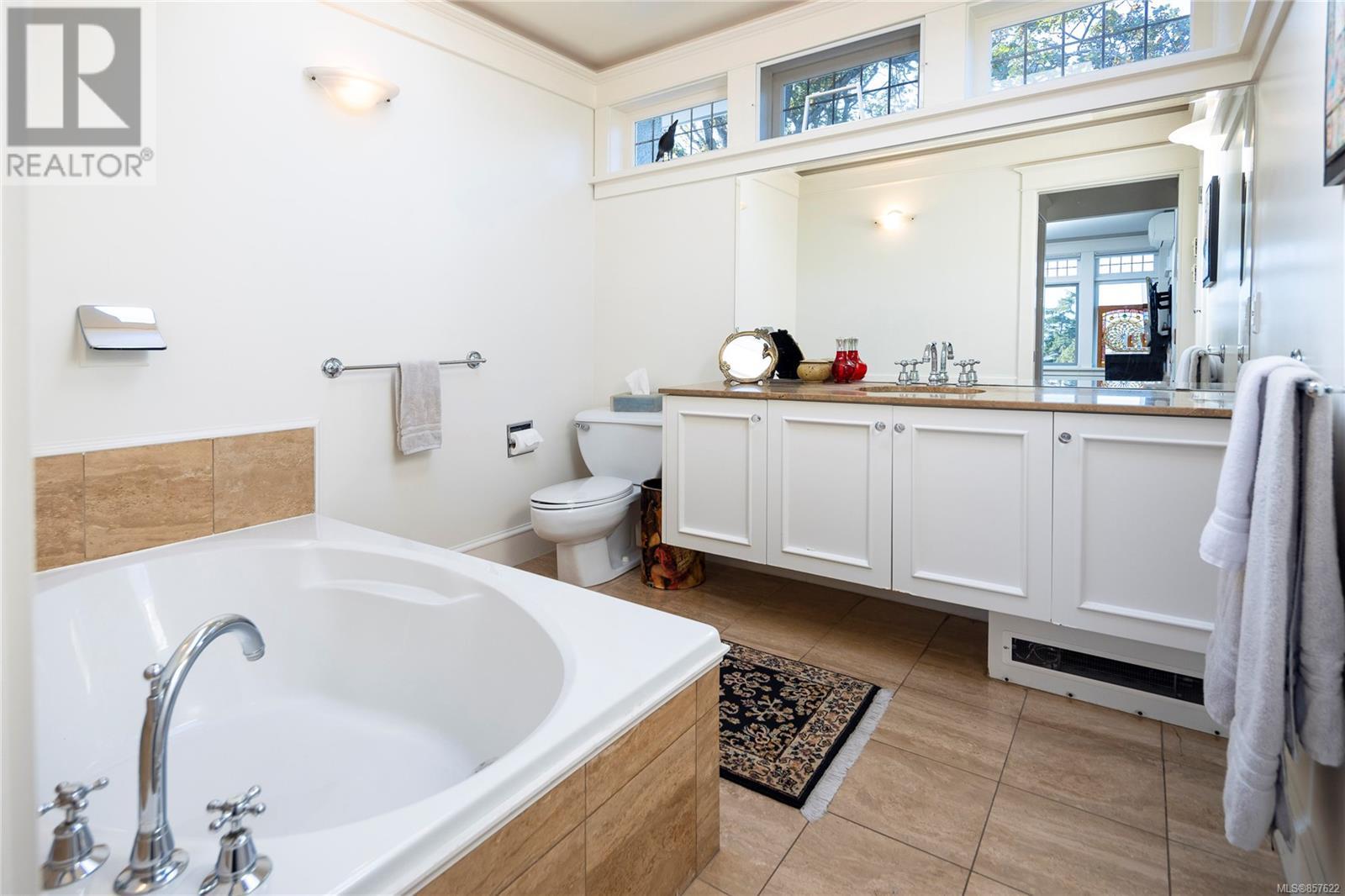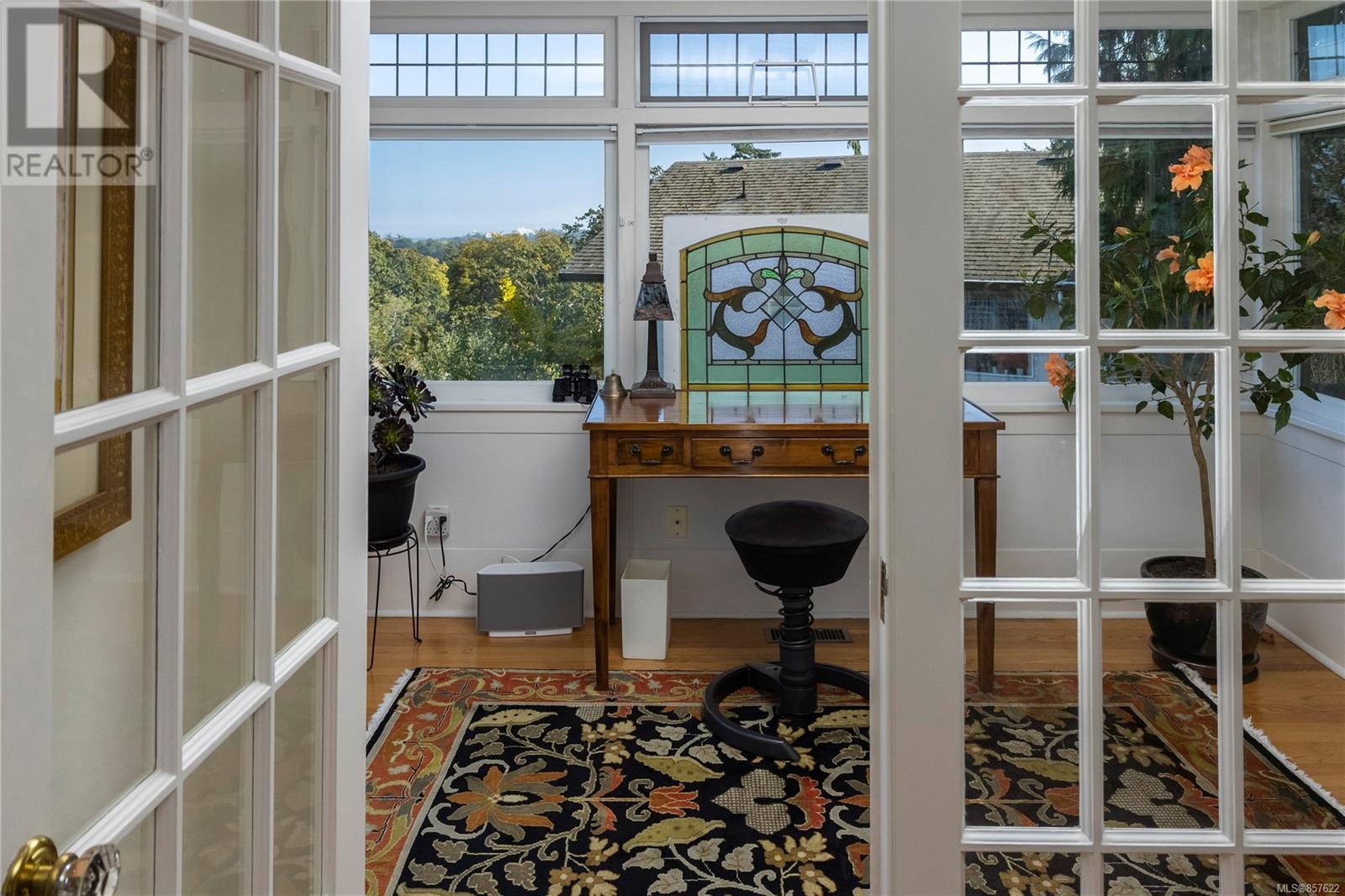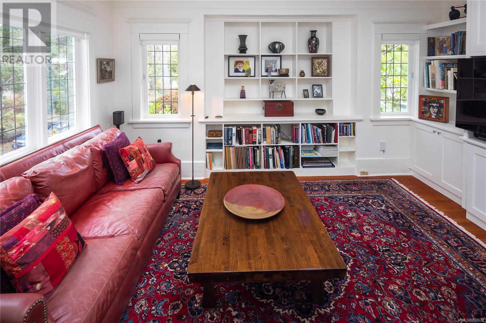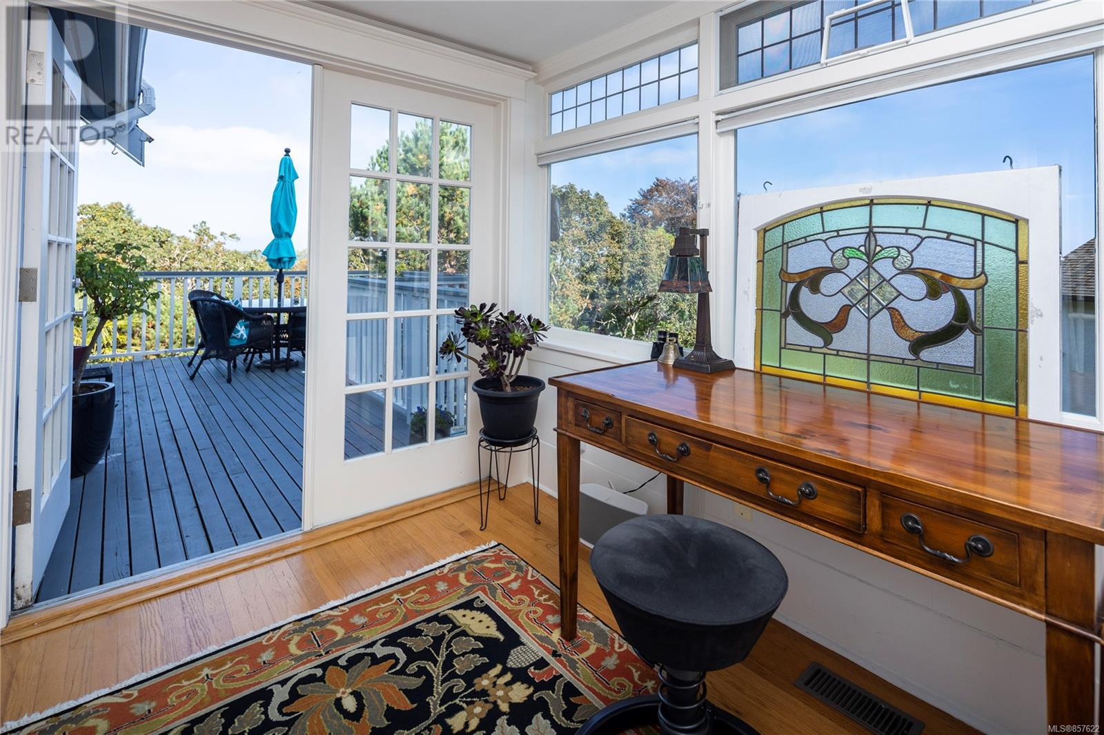 A Rockland Beauty ""Center Hall Dutch Colonial Revival"" perched on a rocky knoll with stunning views to the city,ocean & mountains.Situated on .25 acre on one of Victoria's most sought after tree lined lanes in a coveted and idyllic neighborhood.Elegant & fresh 3 bed/4 bath home has been meticulously cared for with many updates:New appliances, gas connection, heat pump & fresh paint.Main level offers gleaming hardwood floors,dinning,den & living room with gas F/P,bright kitchen with conservatory windows & sunroom opening onto the South facing deck.Upstairs there is a spacious master bed with ensuite,walk-in closet & new French doors opening onto a private balcony to enjoy the beautiful views, a 2nd bed with it's own ensuite.Lower level there is a laundry room,3 pc bath & family room/3 rd bed with French doors opening onto a garden patio.Located on a beautiful garden lot with meandering paths,rocky outcroppings and a trickling waterfall pond.Prepare to fall in love with this unique home. (id:22211)