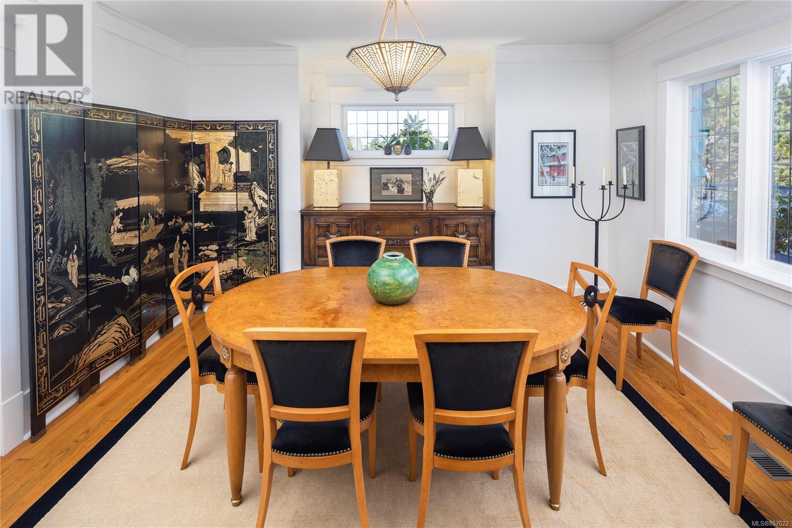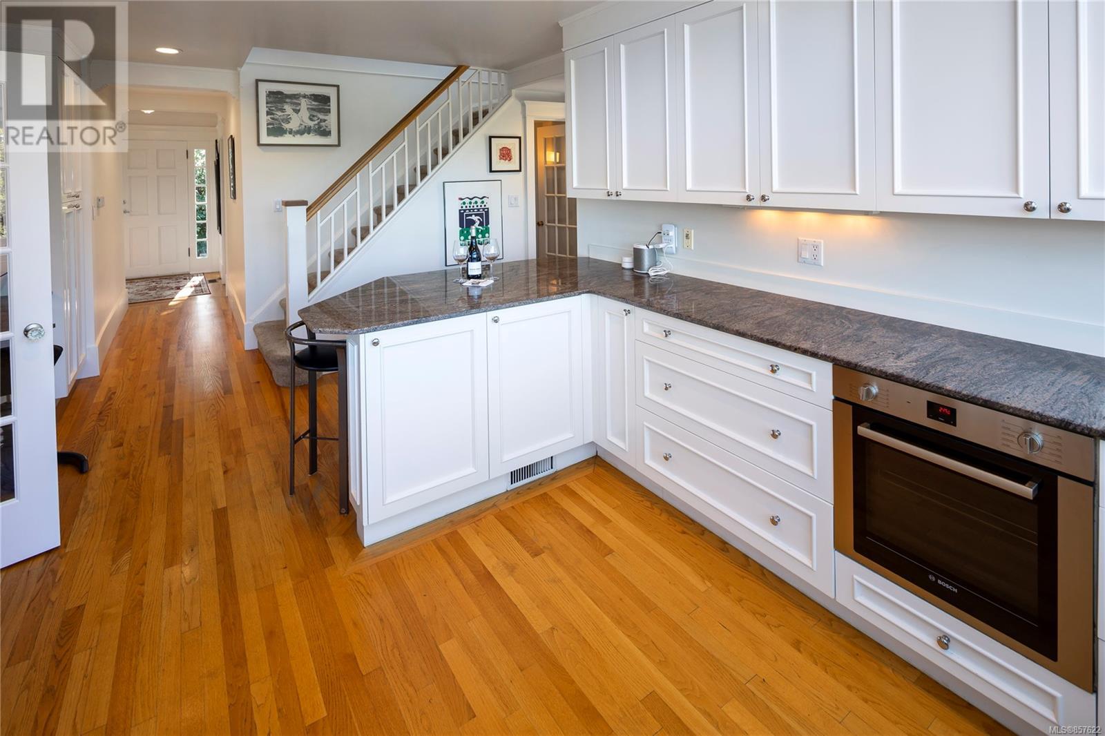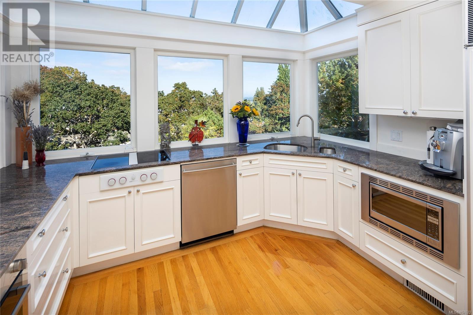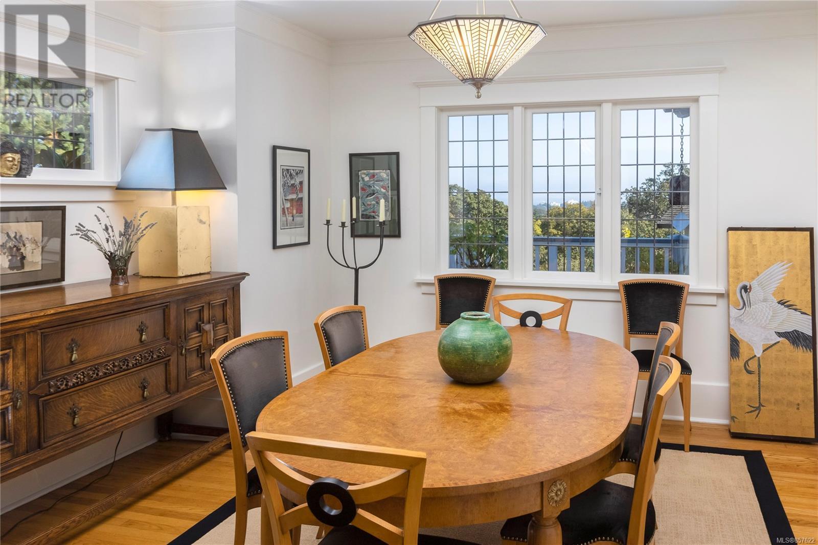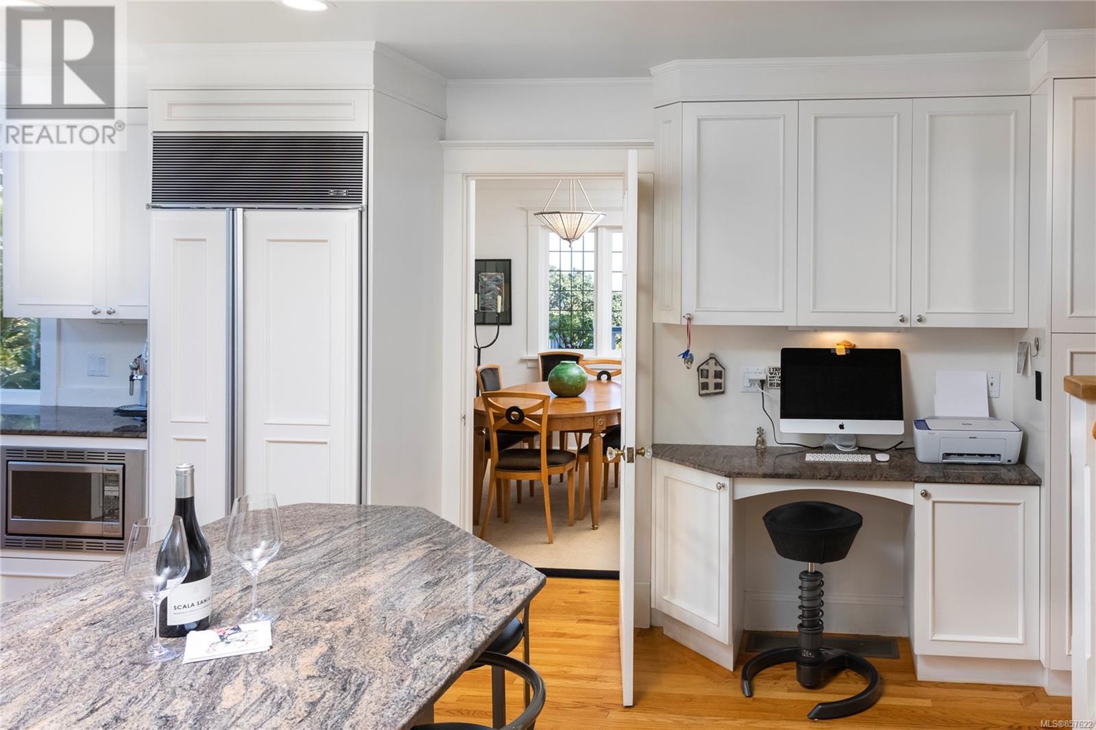 A Rockland Beauty ""Center Hall Dutch Colonial Revival"" perched on a rocky knoll with stunning views to the city,ocean & mountains.Situated on .25 acre on one of Victoria's most sought after tree lined lanes in a coveted and idyllic neighborhood.Elegant & fresh 3 bed/4 bath home has been meticulously cared for with many updates:New appliances, gas connection, heat pump & fresh paint.Main level offers gleaming hardwood floors,dinning,den & living room with gas F/P,bright kitchen with conservatory windows & sunroom opening onto the South facing deck.Upstairs there is a spacious master bed with ensuite,walk-in closet & new French doors opening onto a private balcony to enjoy the beautiful views, a 2nd bed with it's own ensuite.Lower level there is a laundry room,3 pc bath & family room/3 rd bed with French doors opening onto a garden patio.Located on a beautiful garden lot with meandering paths,rocky outcroppings and a trickling waterfall pond.Prepare to fall in love with this unique home. (id:22211)