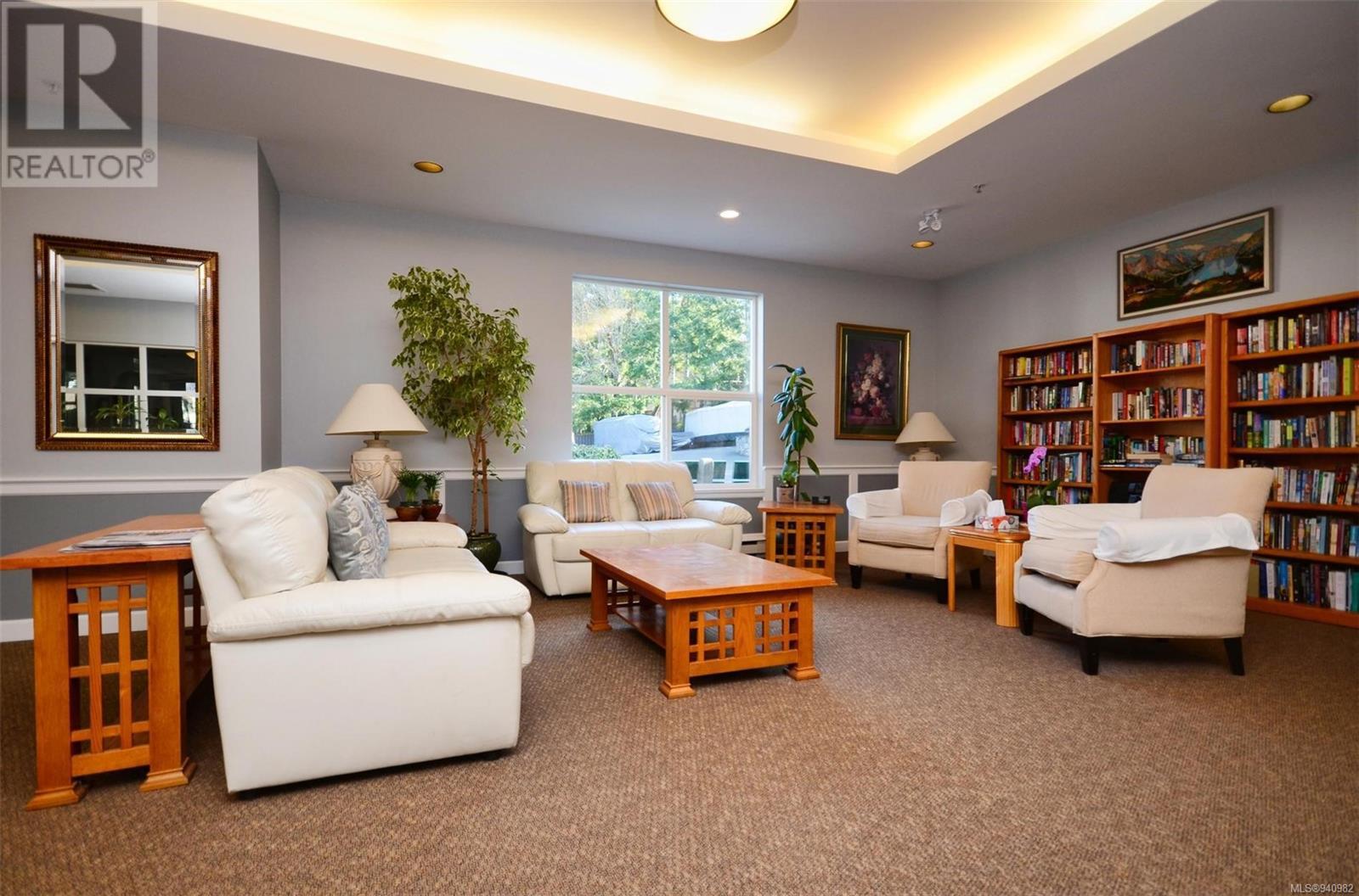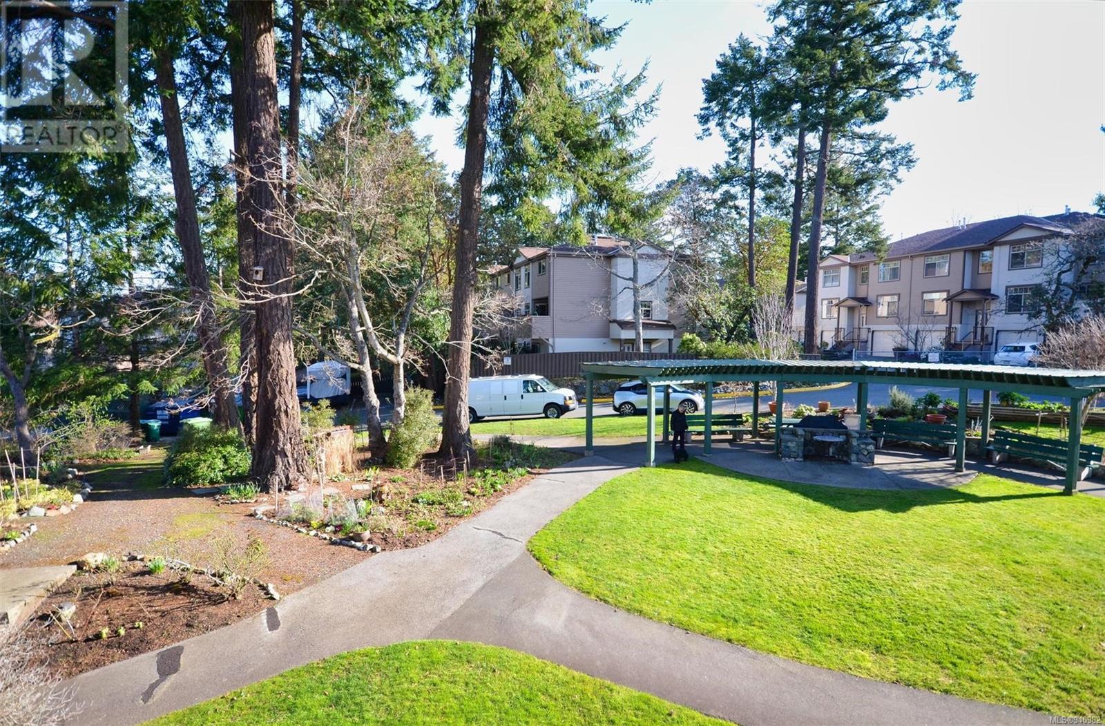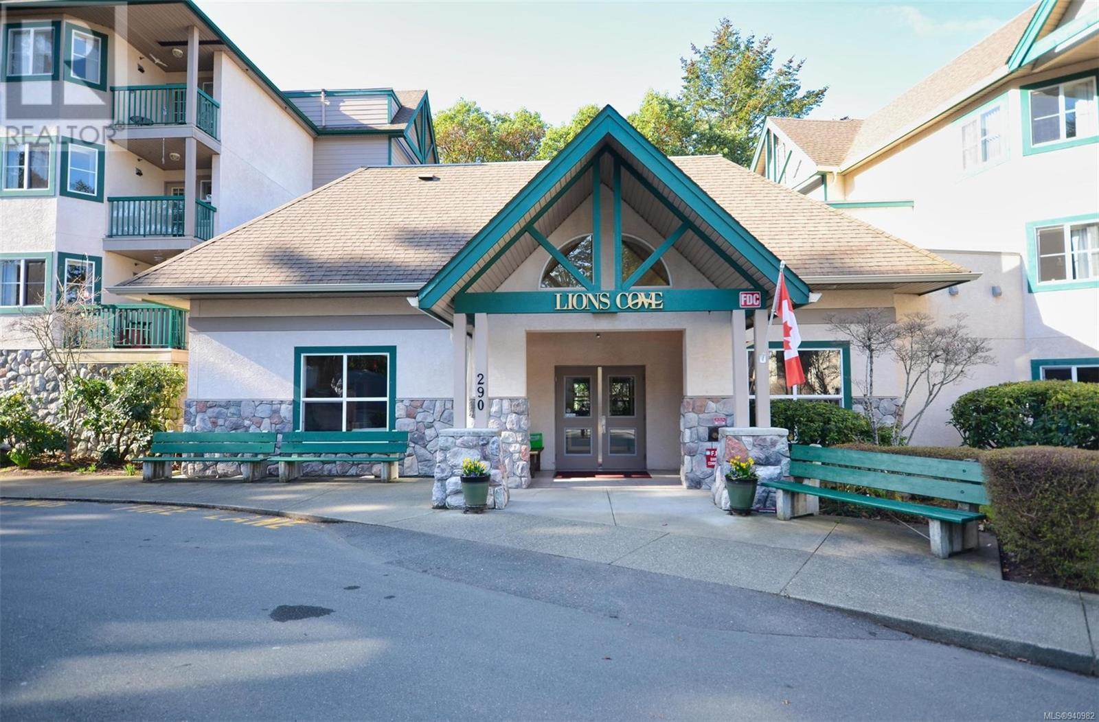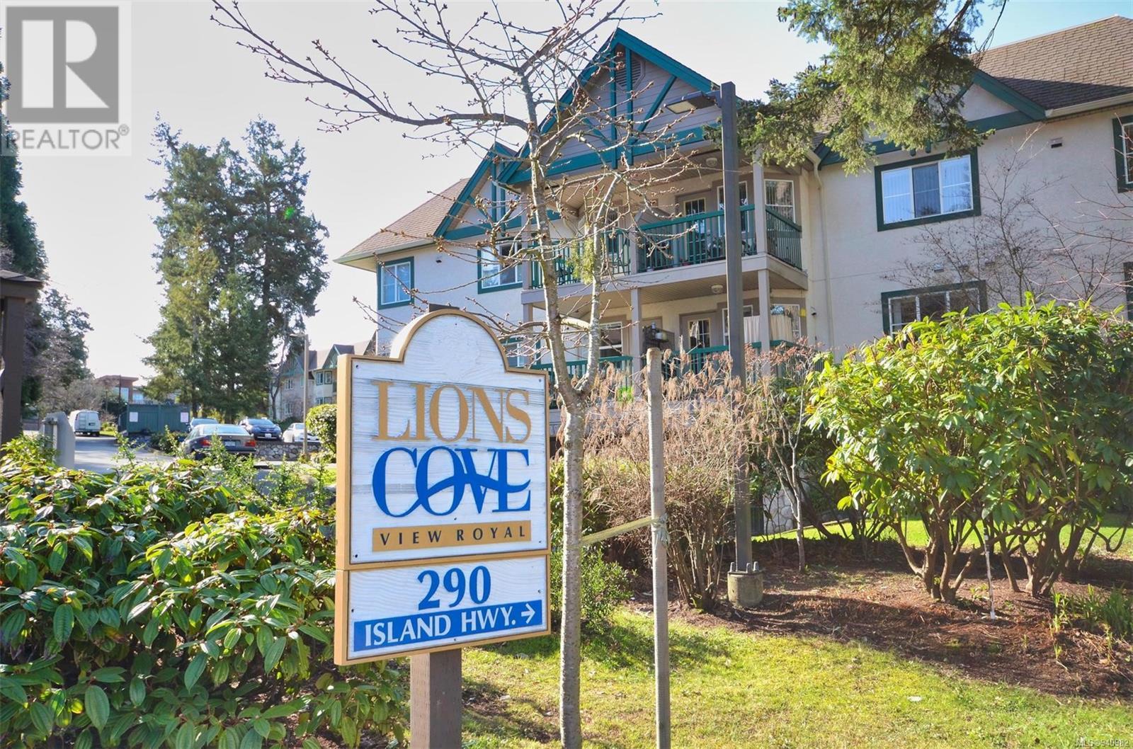 Welcome to Lions Cove. This unit offers 2 bedrooms and 2 bathrooms encompassing an 878 square feet of living space. Enjoy the view of the greenery and gardens from your private balcony situated on the peaceful side of the building. The kitchen has an open pass-bar into the combined dining and living space creating a spacious, welcoming atmosphere. Convenience meets functionality with, in suite laundry room and bonus storage space, an added perk! The primary bedroom has double closets and ensuite for your comfort and privacy. This 55+ community provides an array of amenities including a social room with kitchen, communal BBQ space, well maintained gardens a workshop for your creative pursuits and a guest suite for your visitors. Located in View Royal just minutes from Eagle Creek Village, VGH, Gorge Vale Golf Club and the Trans Canada Highway connecting you directly into downtown or the Westshore. (id:22211)