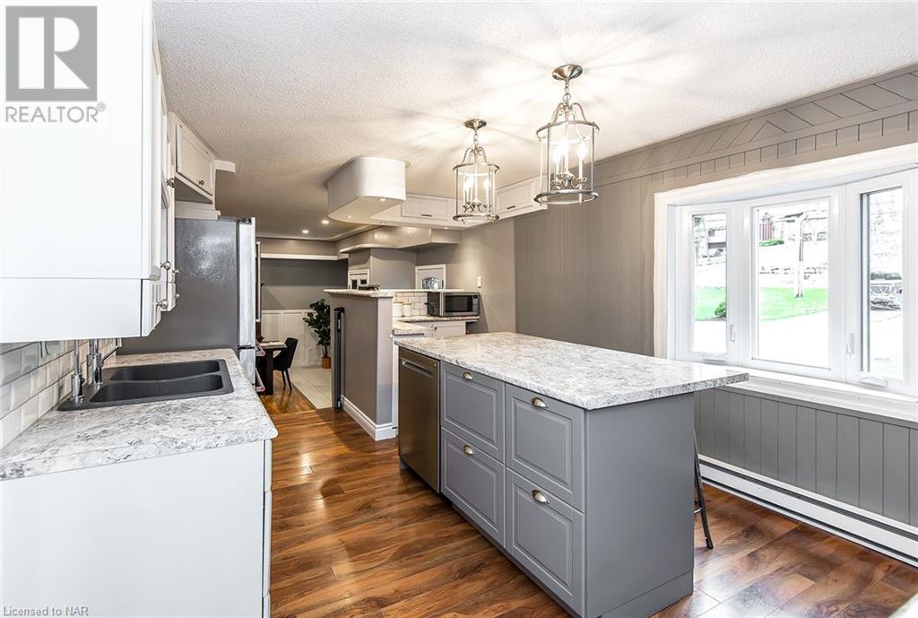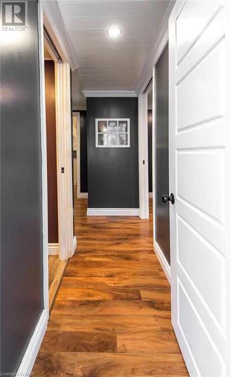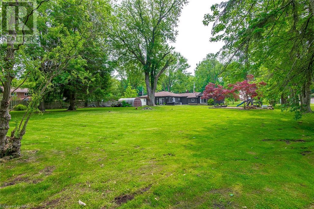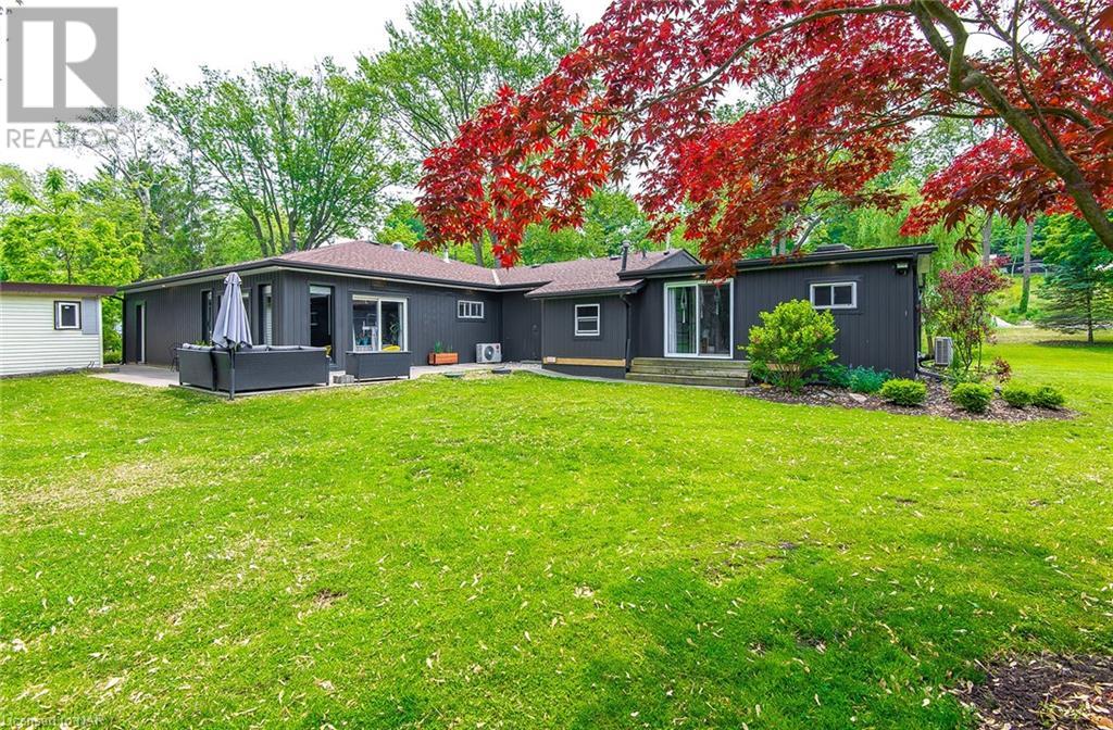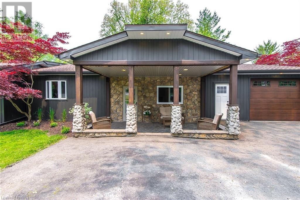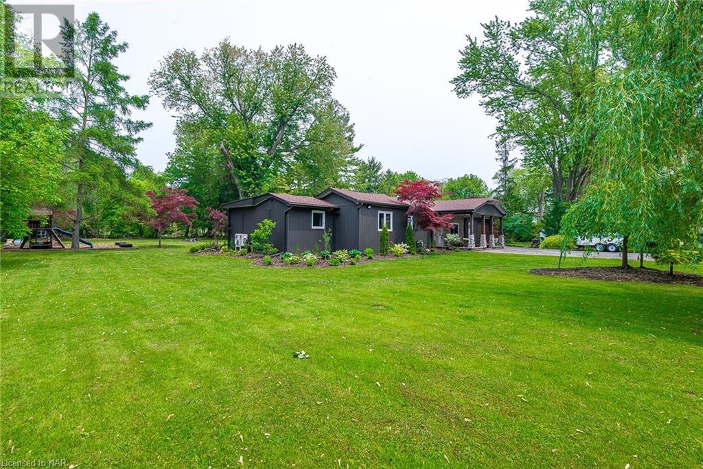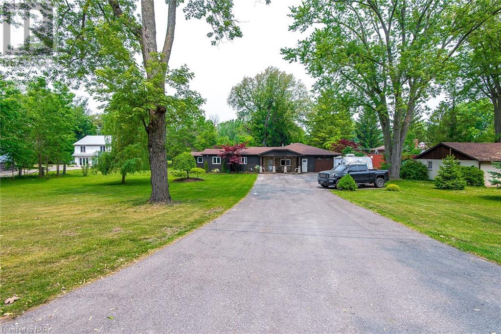 Stunning treed setting across the street from the lake! Beautifully updated 4 bedroom, 1.5 bathroom bungalow situated on a .86 acre lot, just minutes outside of Port Colborne. Large kitchen with island. Separate spacious dining room with office space. Living room features in-floor heating with patio doors to the rear yard. Four generous sized bedrooms, with sliding doors of the primary bedroom. One car attached garage with an insulated, in-floor heated shop with hydro. Park-like rear yard with tons of space for entertaining. Many updates include siding 2022, garage door with opener 2022, most windows 2022, AC units in bedrooms 2021, gas fireplace 2019. (id:22211)
