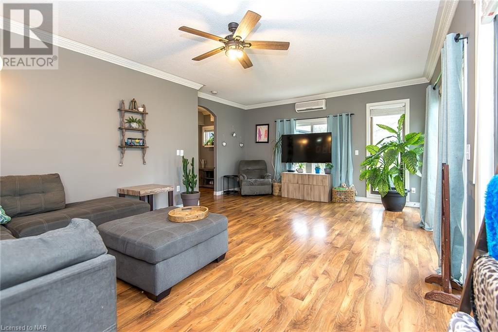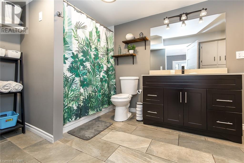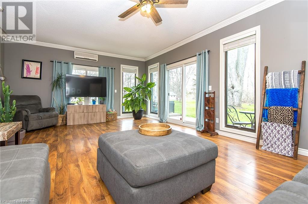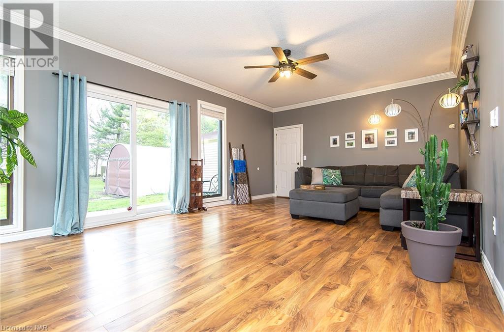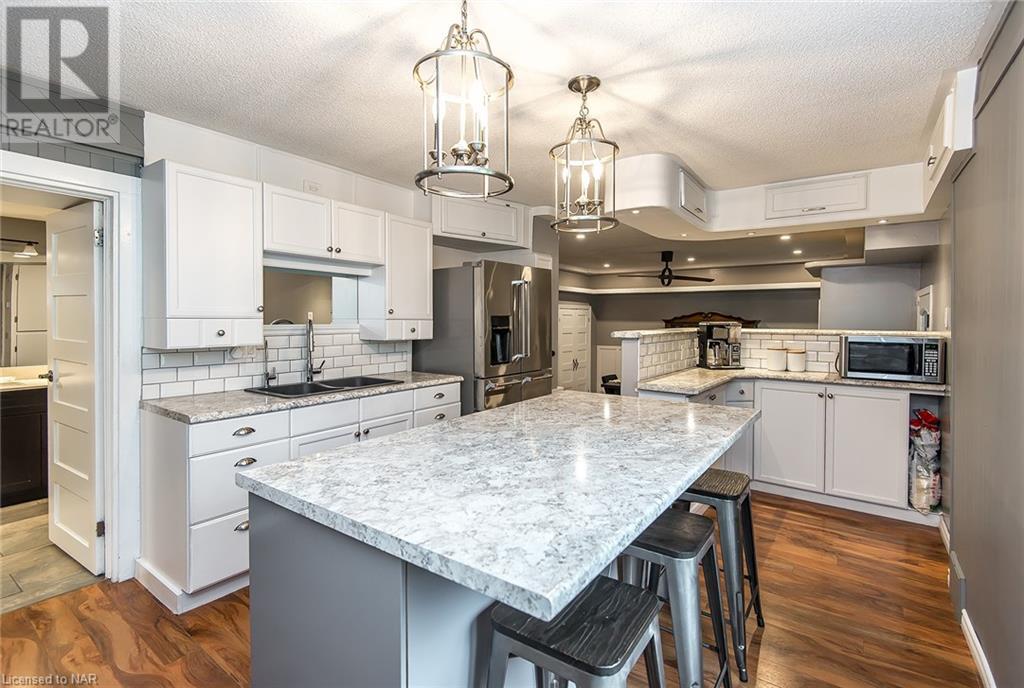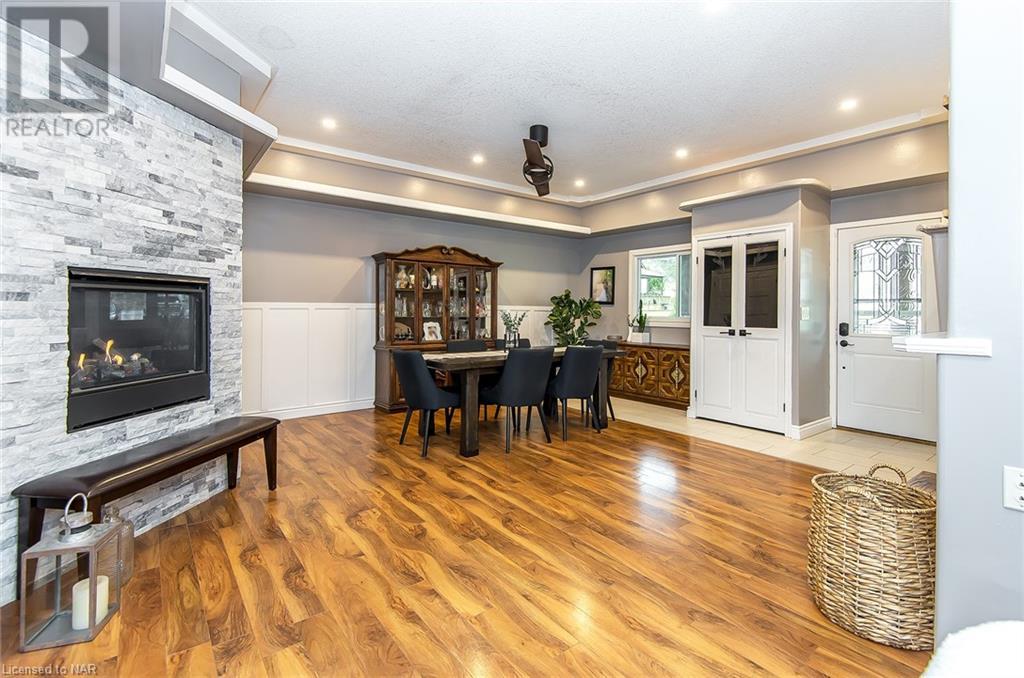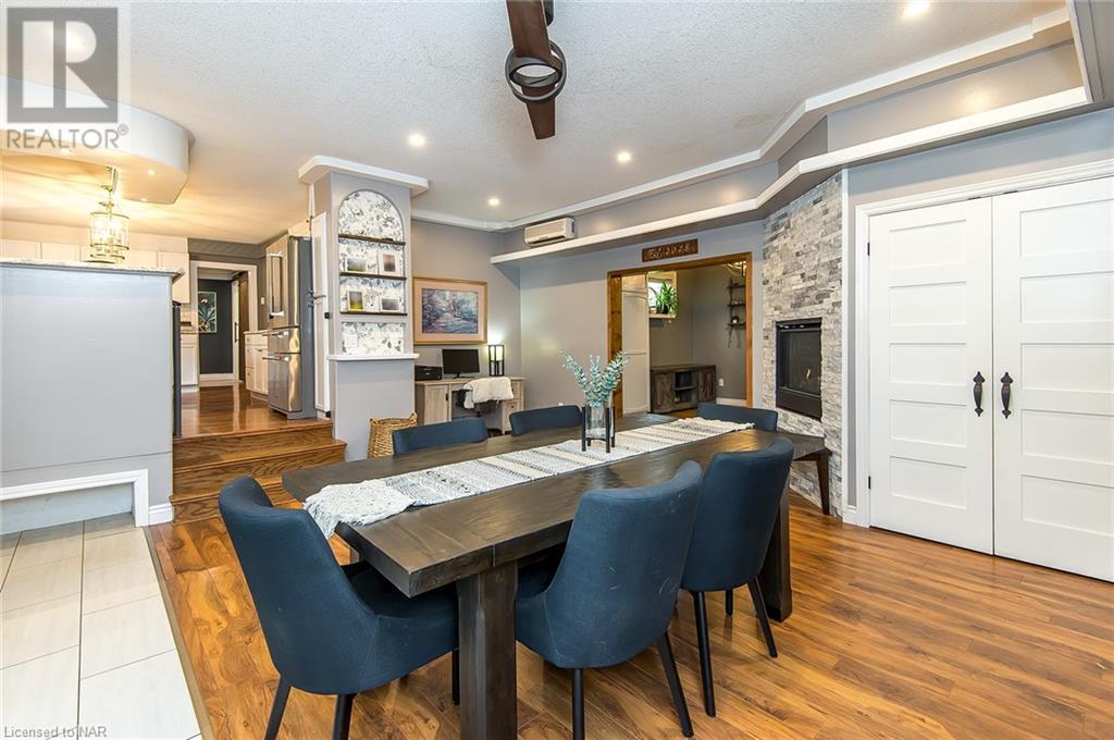 Stunning treed setting across the street from the lake! Beautifully updated 4 bedroom, 1.5 bathroom bungalow situated on a .86 acre lot, just minutes outside of Port Colborne. Large kitchen with island. Separate spacious dining room with office space. Living room features in-floor heating with patio doors to the rear yard. Four generous sized bedrooms, with sliding doors of the primary bedroom. One car attached garage with an insulated, in-floor heated shop with hydro. Park-like rear yard with tons of space for entertaining. Many updates include siding 2022, garage door with opener 2022, most windows 2022, AC units in bedrooms 2021, gas fireplace 2019. (id:22211)