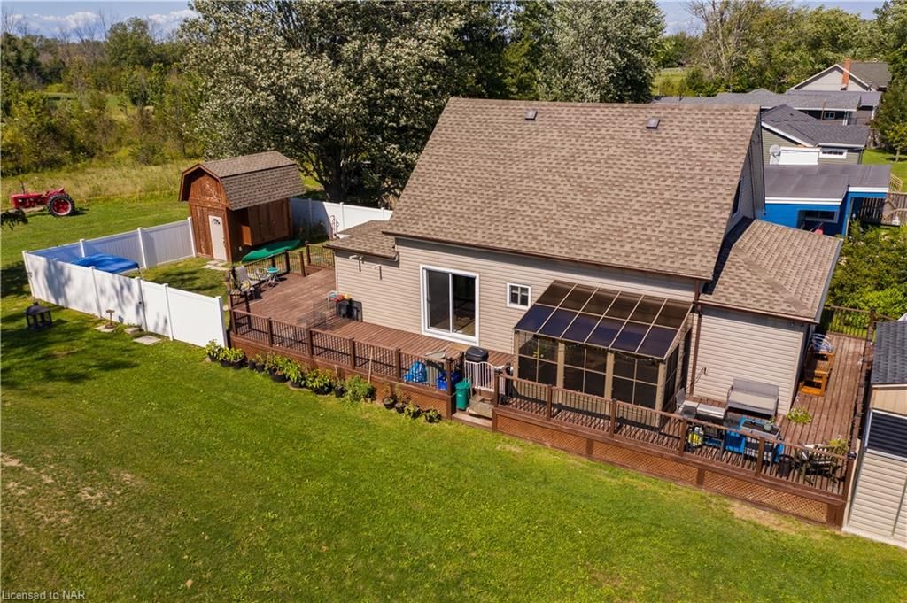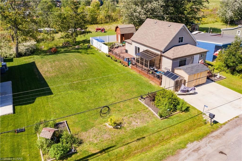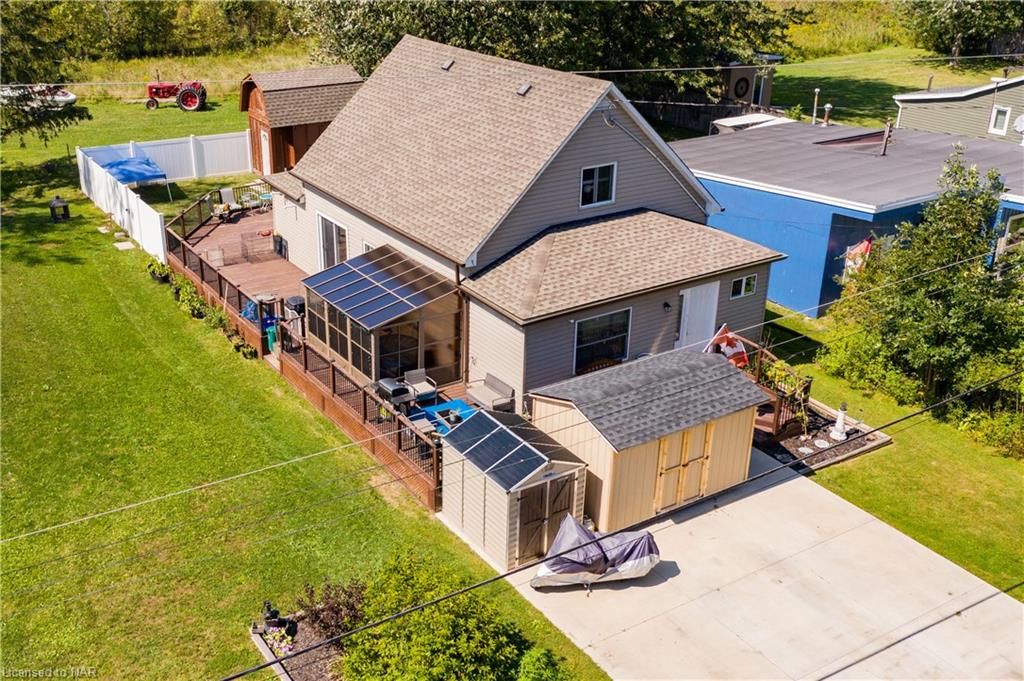 NOW IMMEDIATE POSESSION AND VACANT. WELCOME to the country and Lake Erie! This adorable 4 bedroom, 1.5 bath, updated and well maintained home could be yours. Year round living or a place to escape from the city! No houses behind you and close enough to the beach to see and hear the waves! Night skies are the best too! This home has so many recent updates including a newer 3 season (21) sun room and fully vinyl fenced yard. Updates since 2018 include a bright beautiful eat in galley kitchen with appliances and glass doors, shingles, plumbing, septic, furnace, air conditioner, tankless on demand hot water heater, eaves with gutter guard, concrete drive, front window and sliding door. Other updates include replacement windows(10), electrical (10),insulation (15), rear door with window (19).pdates include replacement windows(10), electrical (10),insulation (15), rear door with window (19).Pt Limiter on the 3000 gallon cistern is wifi enabled and tells you when you are running low on water.The large shed has a concrete floor, hydro, work bench and exterior storage. Enjoy the wrap around deck and sunroom! The lake is almost at your doorstep**INTERBOARD LISTING: NIAGARA ASSOC. OF REALTORS**