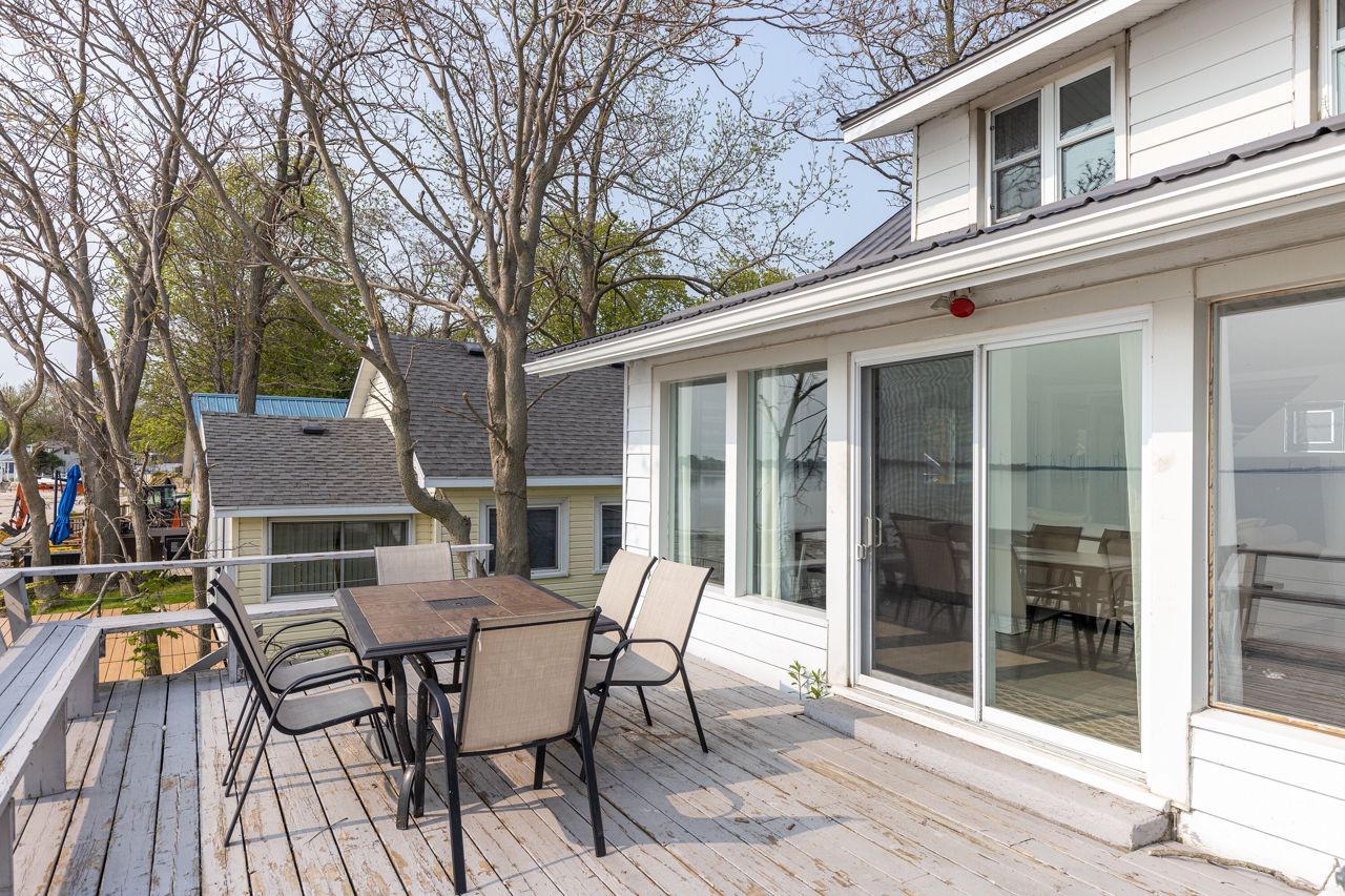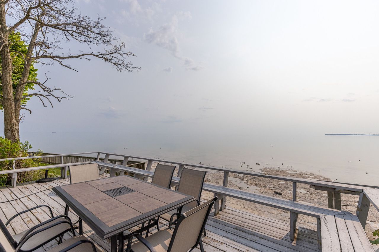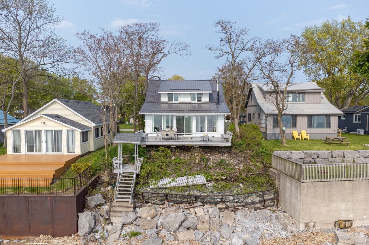Step into the wonderful lifestyle offered by this charming residence! Nestled within the highly desirable Long Beach community, this lakefront home boasts three bedrooms and two bathrooms. The main floor encompasses a tastefully designed three-piece bathroom, a convenient laundry area, a spacious dining room, a well-appointed kitchen, and a generously-sized living room. The living room is adorned with wooden posts and enhanced by a wood-burning fireplace, creating a cozy ambiance while offering a breathtaking panoramic view of the magnificent Lake Erie. The upper level offers you three comfortably proportioned bedrooms and another well-appointed three-piece bathroom. Relaxation awaits you on the home's lakefront deck, where you can unwind and savor one of nature's most awe-inspiring vistas.Positioned on a flat rock shore, this property allows you to relish the tranquility of the lake in a private setting, free from concerns about crowded waterfronts with your own set of stairs down to the waterfront.
