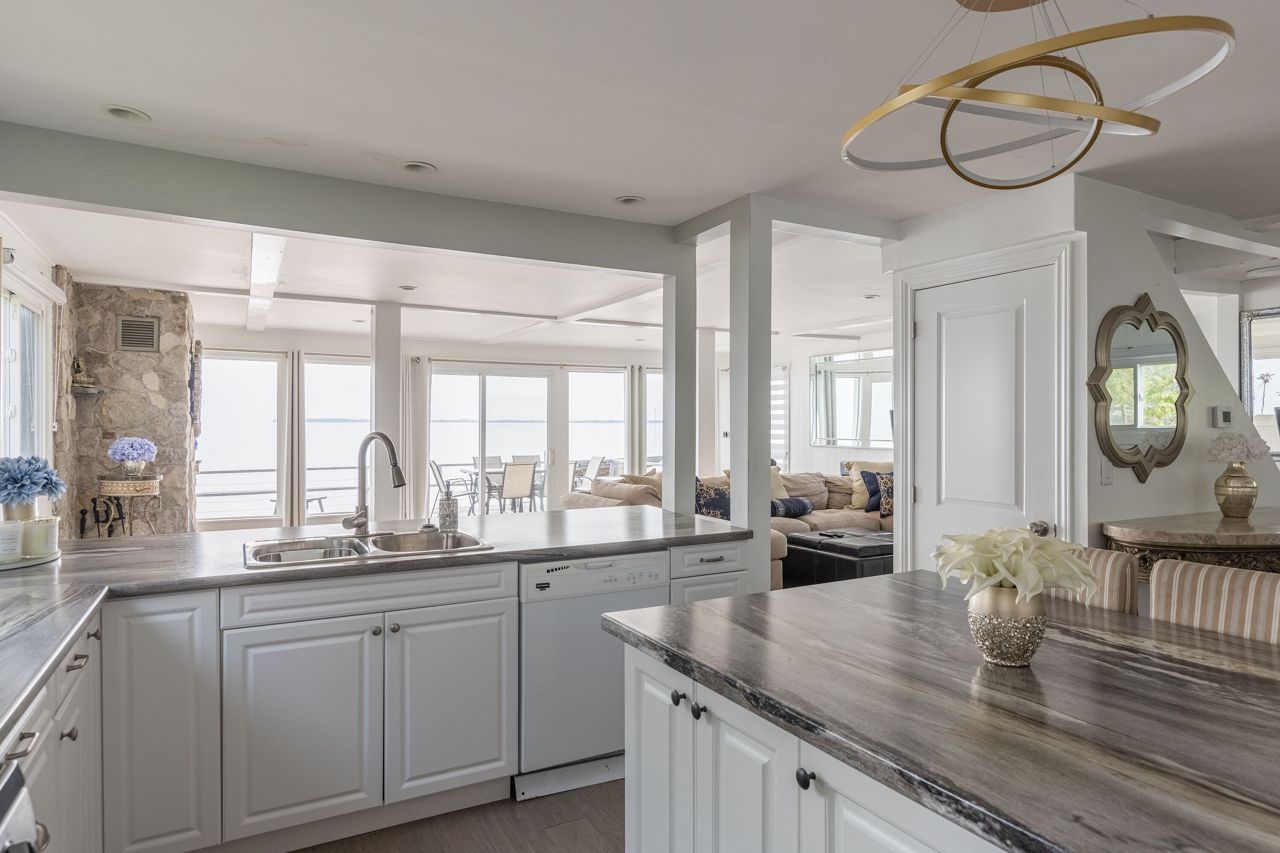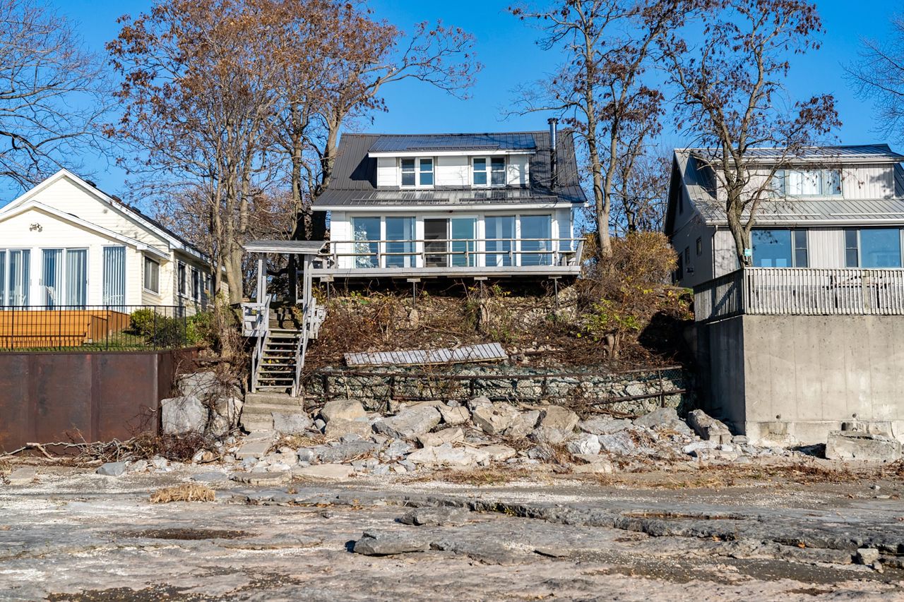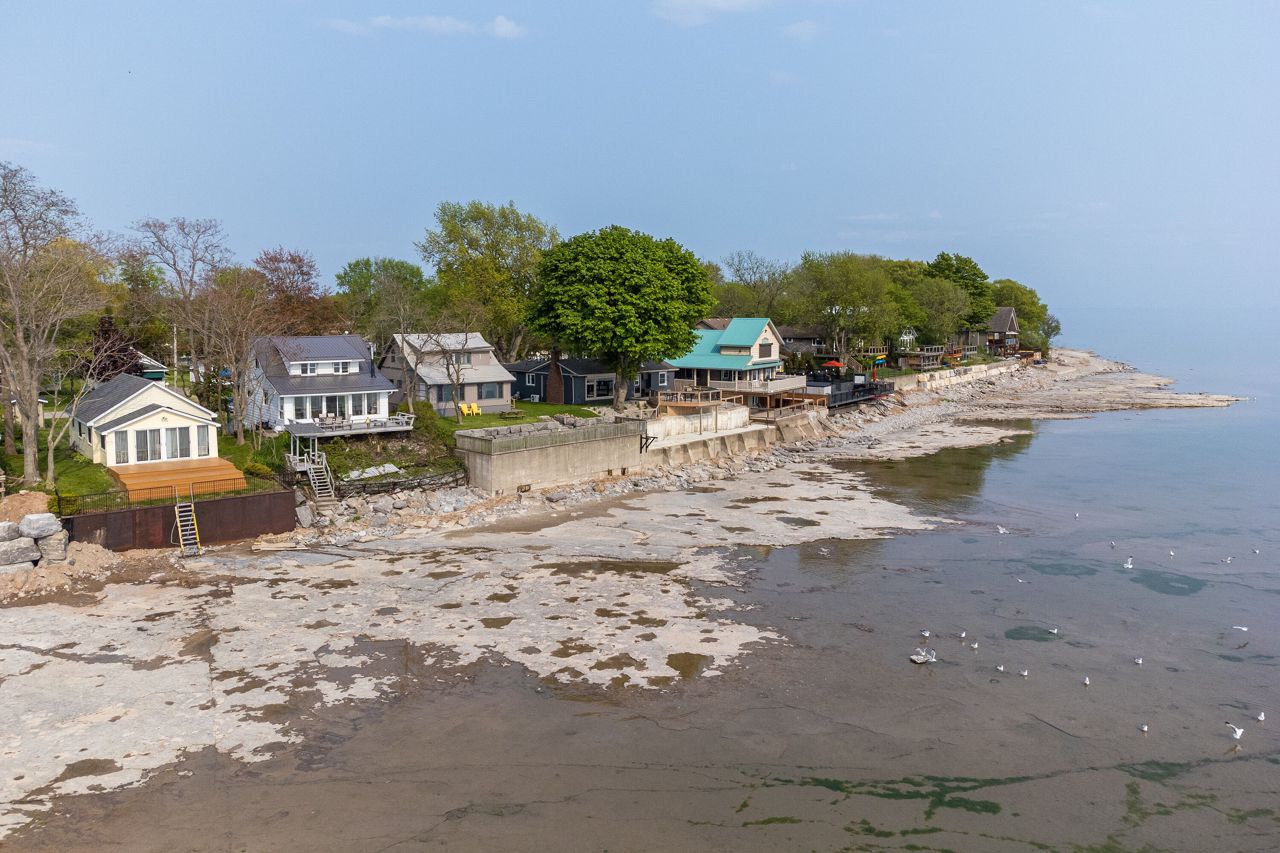 Step into the wonderful lifestyle offered by this charming residence! Nestled within the highly desirable Long Beach community, this lakefront home boasts three bedrooms and two bathrooms. The main floor encompasses a tastefully designed three-piece bathroom, a convenient laundry area, a spacious dining room, a well-appointed kitchen, and a generously-sized living room. The living room is adorned with wooden posts and enhanced by a wood-burning fireplace, creating a cozy ambiance while offering a breathtaking panoramic view of the magnificent Lake Erie. The upper level offers you three comfortably proportioned bedrooms and another well-appointed three-piece bathroom. Relaxation awaits you on the home's lakefront deck, where you can unwind and savor one of nature's most awe-inspiring vistas.Positioned on a flat rock shore, this property allows you to relish the tranquility of the lake in a private setting, free from concerns about crowded waterfronts with your own set of stairs down to the waterfront.