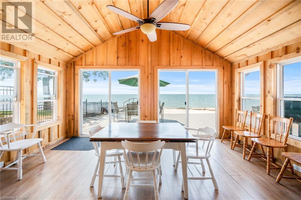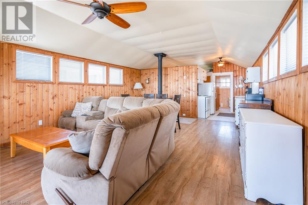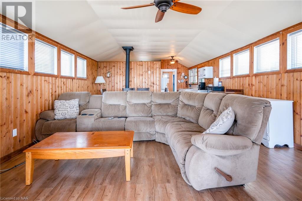 EXPANSIVE LAKE VIEWS AND A+ SUNSETS are just a few of the many great things about this charming waterfront 4 bedroom family cottage! This rustic, open concept property boasts a large newly built south facing sunroom to enjoy incredibly spacious updated composite deck, cement pad and armour stone break wall.. tons of space for your BBQ and family and friends. 2 sets of large south facing patio doors with cozy gas fireplace, upgraded electrical, cistern w/ wifi monitor, and ample parking for group stays! (id:22211)