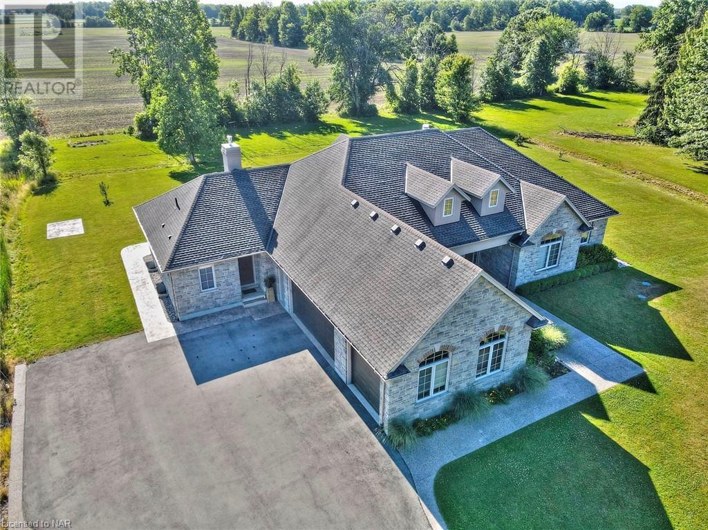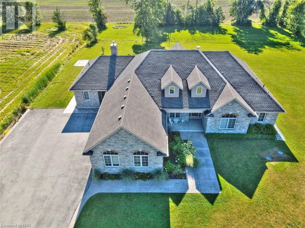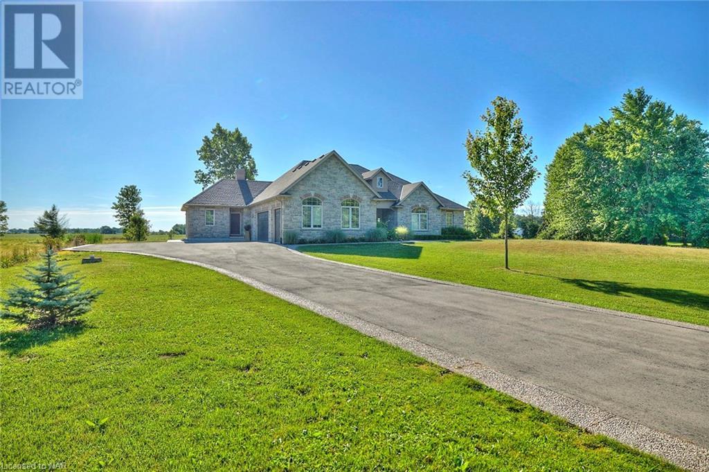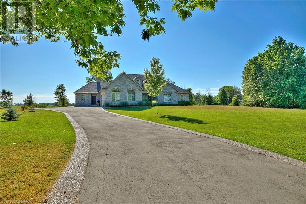 Here is the 1.7 acre country estate you have been waiting for, with attention to detail evident the moment you pull in the driveway with two covered patios to enjoy the peaceful surroundings! Nothing to do here, but move in & enjoy this immaculate home thanks to the owners meticulous care! Not often do you get natural gas & high speed internet in the country! This MABO custom built stone home is over 3100 sqft above grade boasting 5 spacious bedrooms, 4 full baths (3 ensuites), extensive landscaping, large paved & concrete edged driveway & walkways as well as an oversized 3 car garage. The North end of the home has an in-law/granny suite with it's own entrance, a large bedroom/sitting area overlooking (O/L) the backyard, 4 pc ensuite with heated floors, large closet & linen closet. The open concept family room & kitchen is the perfect informal gathering area with a gas fireplace, breakfast eating area &patio door to the back covered porch. Every counter surface in the home is stone, including the laundry room with a 2nd dishwasher built-in. The kitchen has a gorgeous backsplash, eating island, expansive counter space with all the amenities you need &then some including a pantry! The formal living room has a custom fireplace surround with cathedral ceilings & a wall of glass O/L the back yard with patio doors for access. There is also a formal dining room with a Swarovski light fixture. Hardwood floors are throughout the home & in pristine condition. The principal suite is spacious with sitting area/bay window, walk-in closet, 5 pc ensuite w/heated floors &huge tiled shower. A guest suite w/ vaulted ceilings & ensuite O/L the front yard. Bonus hot tub hook-up installed. Expansive full bsmt has separate stairs from garage, oversized windows, bath rough-in & high ceilings. Only minutes from the quaint hamlet of Wainfleet, less than 15 min to several surrounding communities of Fonthill, Welland & Port Colborne with beautiful Lake Erie beaches & an easy drive to the QEW. (id:22211)