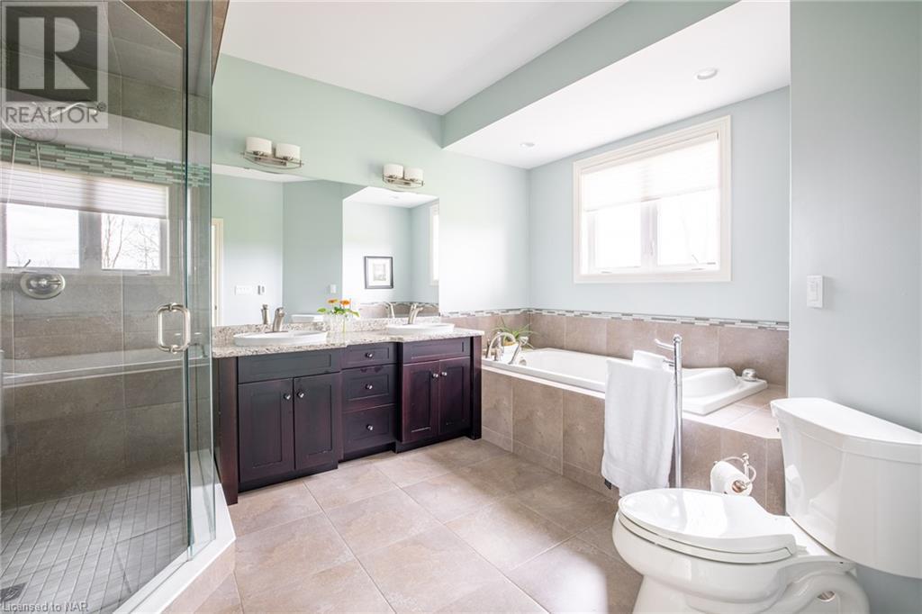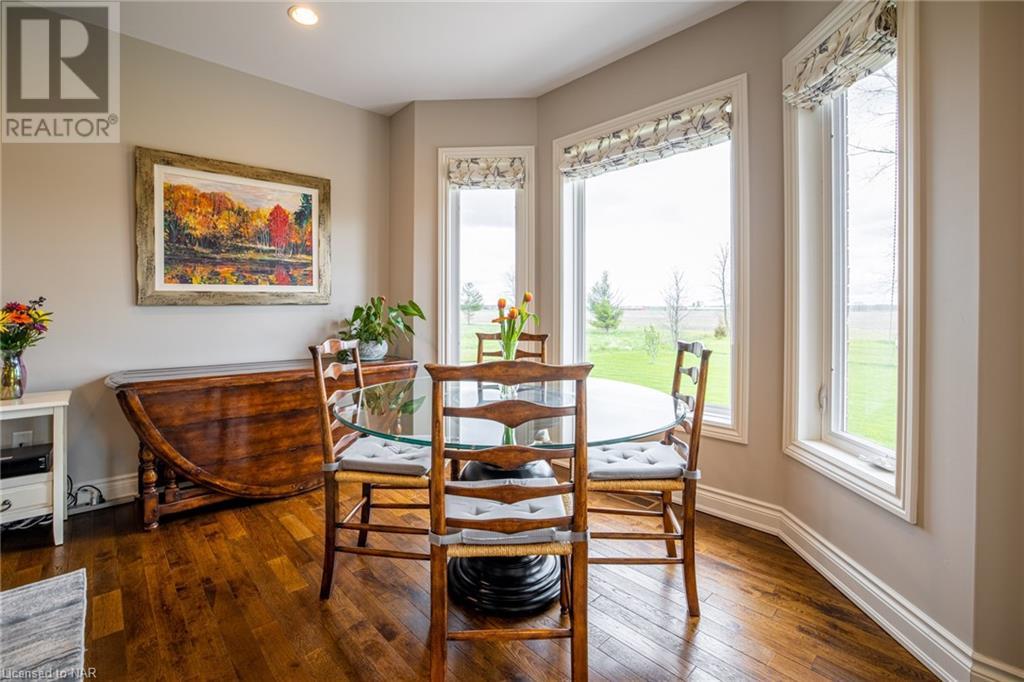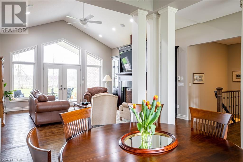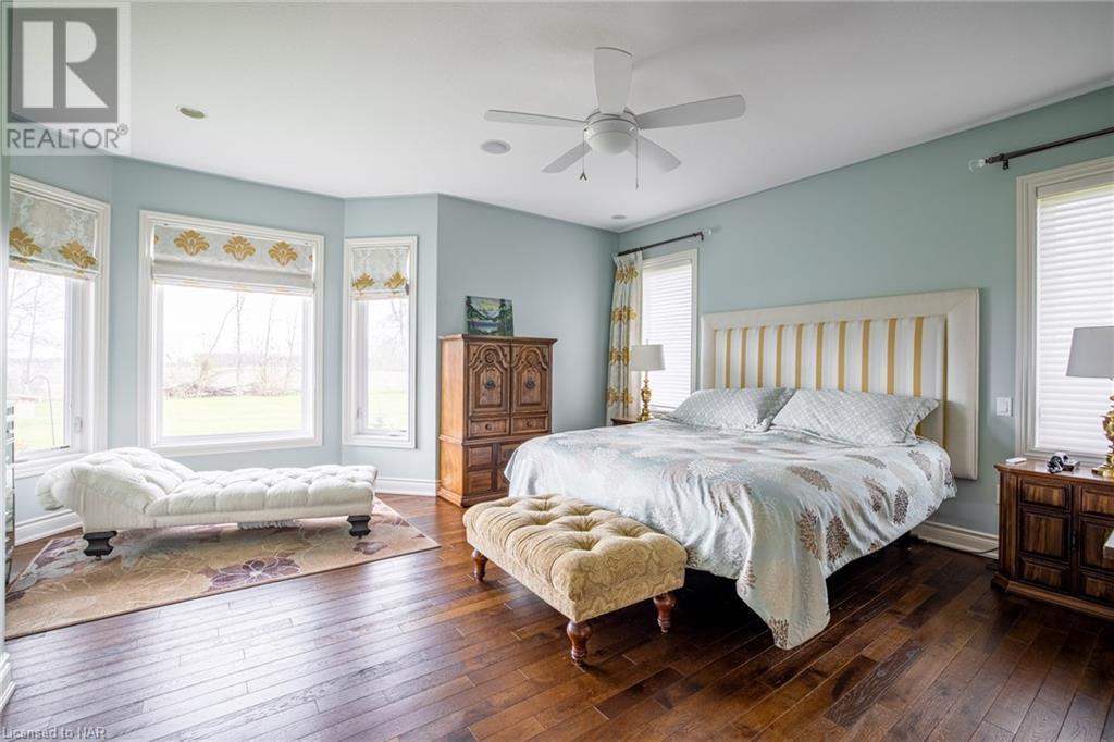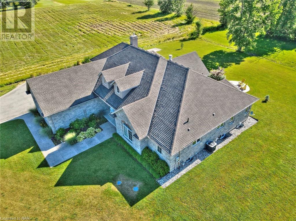 Here is the 1.7 acre country estate you have been waiting for, with attention to detail evident the moment you pull in the driveway with two covered patios to enjoy the peaceful surroundings! Nothing to do here, but move in & enjoy this immaculate home thanks to the owners meticulous care! Not often do you get natural gas & high speed internet in the country! This MABO custom built stone home is over 3100 sqft above grade boasting 5 spacious bedrooms, 4 full baths (3 ensuites), extensive landscaping, large paved & concrete edged driveway & walkways as well as an oversized 3 car garage. The North end of the home has an in-law/granny suite with it's own entrance, a large bedroom/sitting area overlooking (O/L) the backyard, 4 pc ensuite with heated floors, large closet & linen closet. The open concept family room & kitchen is the perfect informal gathering area with a gas fireplace, breakfast eating area &patio door to the back covered porch. Every counter surface in the home is stone, including the laundry room with a 2nd dishwasher built-in. The kitchen has a gorgeous backsplash, eating island, expansive counter space with all the amenities you need &then some including a pantry! The formal living room has a custom fireplace surround with cathedral ceilings & a wall of glass O/L the back yard with patio doors for access. There is also a formal dining room with a Swarovski light fixture. Hardwood floors are throughout the home & in pristine condition. The principal suite is spacious with sitting area/bay window, walk-in closet, 5 pc ensuite w/heated floors &huge tiled shower. A guest suite w/ vaulted ceilings & ensuite O/L the front yard. Bonus hot tub hook-up installed. Expansive full bsmt has separate stairs from garage, oversized windows, bath rough-in & high ceilings. Only minutes from the quaint hamlet of Wainfleet, less than 15 min to several surrounding communities of Fonthill, Welland & Port Colborne with beautiful Lake Erie beaches & an easy drive to the QEW. (id:22211)