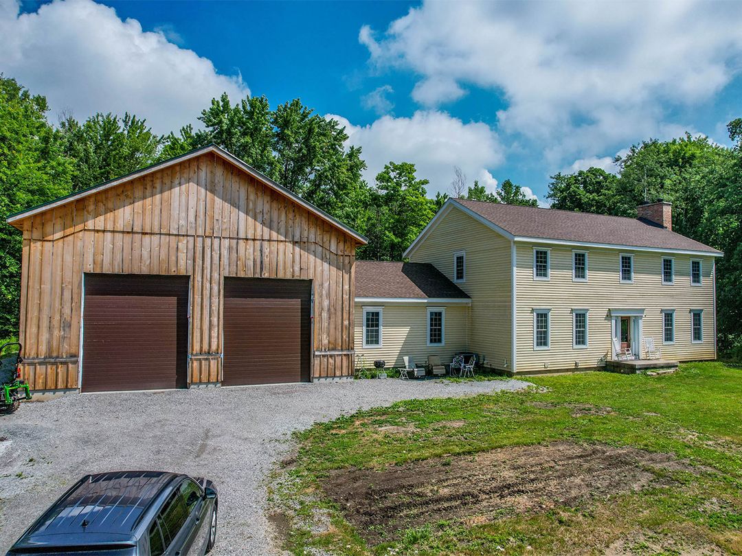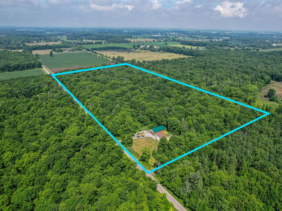 Your own private retreat! Hidden on 28.6 Acs of forested land, this gem offers a custom 2-storey home and a remarkable 40' x 64' board & batten workshop with 30' ceilings and concrete, heated floor. The 4-bed, 3.5-bath home features white cedar siding, 10' red pine board flooring, and a brick fireplace. The kitchen boasts granite countertops, a breakfast bar, and a pantry. Upstairs, a spacious primary bedroom includes a walk-in closet and ensuite bath. The full basement has 9'1" ceilings and is brimming with potential. The property's Agricultural zoning allows for diverse uses and ensures peace & quiet. Just a 3-minute drive to all the essentials - milk, coffee and the LCBO - at Chambers Corners, and 15 minutes from Port Colborne & Dunnville, with easy access to the QEW.