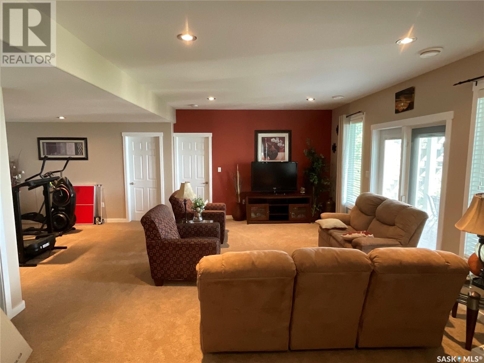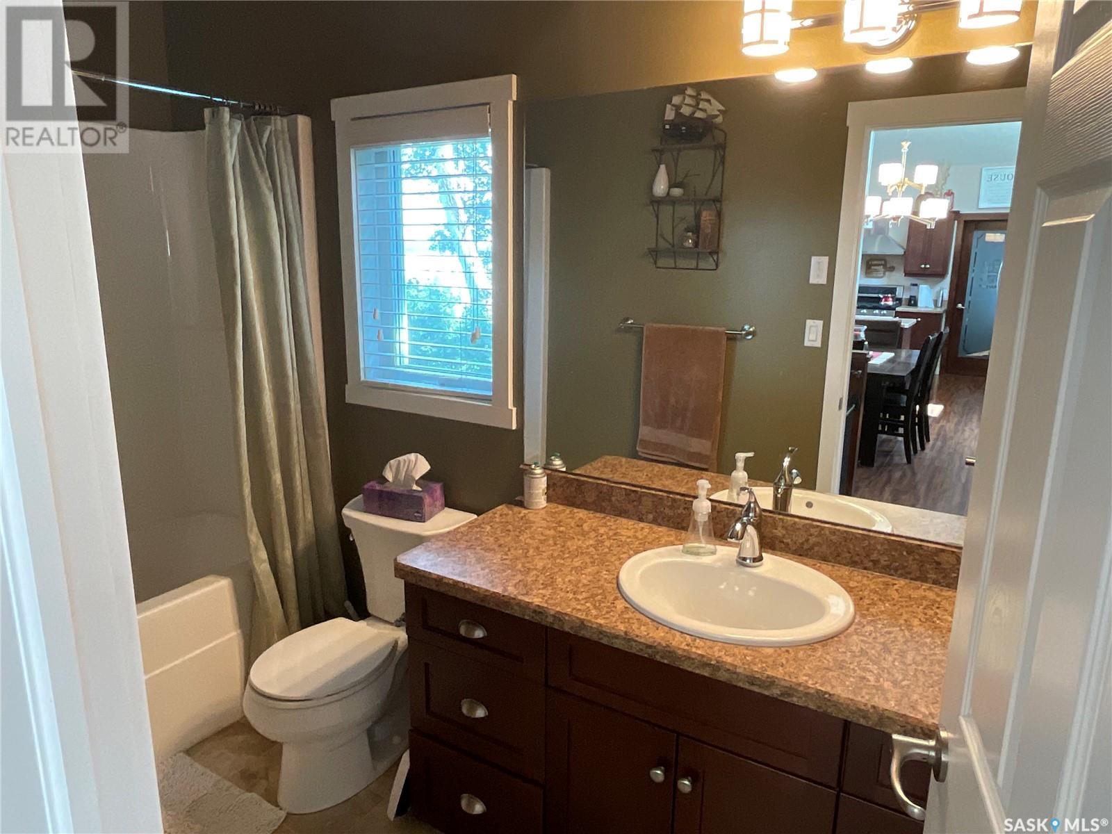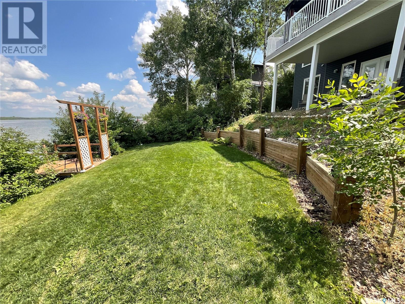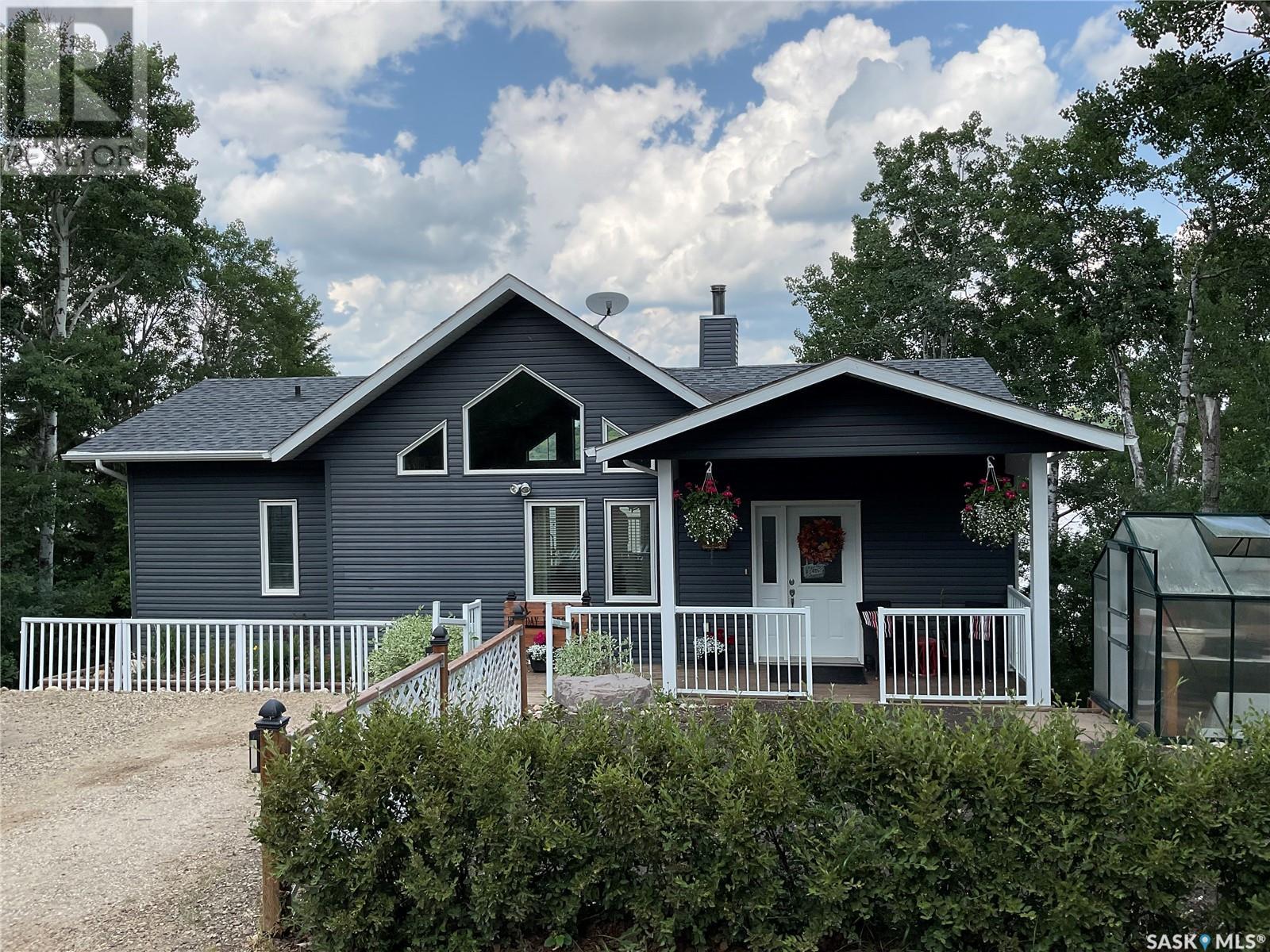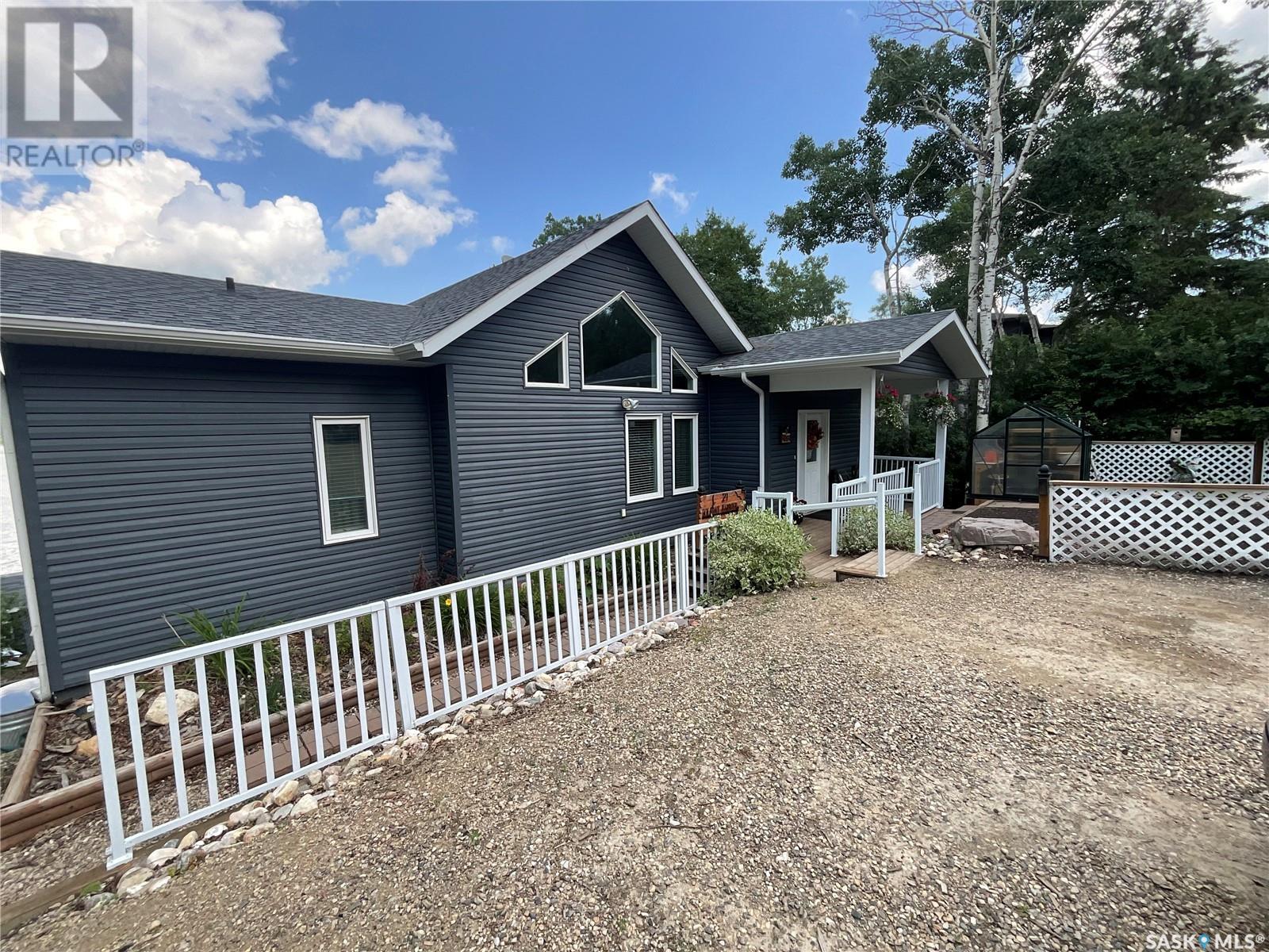 Enjoy the quiet serenity of Wakaw Lake from your beautiful four-season walkout overlooking the lake, only 3 km from the Wakaw town site. At the front you'll find a lovely garden and a covered veranda. Inside the main living area is bright and inviting with huge vaulted ceilings, floor to ceiling windows and laminate flooring throughout. Enjoy the warmth and comfort of the wood burning fireplace, in the spacious living room, overlooking the lake. The kitchen is a dream, offering plenty of cupboard and counter space with a massive built in island with breakfast bar seating, and a walk-in pantry. There's a built in oven, gas range and dishwasher, and the stainless steel fridge is also included. Off the main living area is the primary bedroom suite which has a walk-in closet, a three-piece bathroom and a garden door to the upper deck. Also on the main level are another bedroom, a full four-piece bathroom and the laundry room. The fully developed lower level has a huge family/games room with direct access to the lower deck, an additional two bedrooms and another full four-piece bathroom. Coming out the back, there's a spacious lawn area and a dock onto the lake which is included as well. (id:22211)