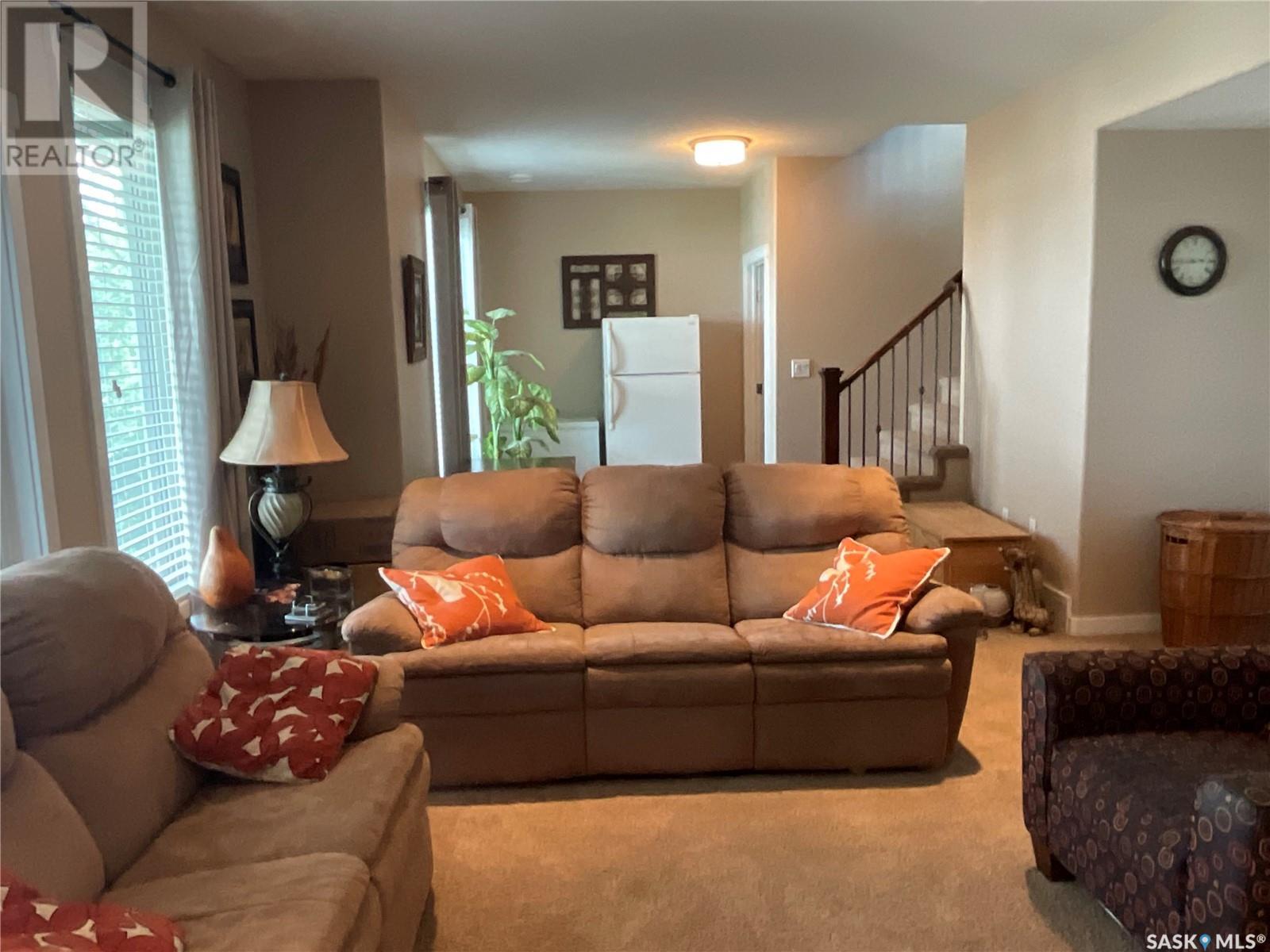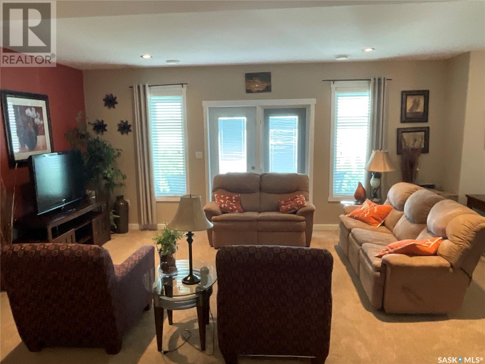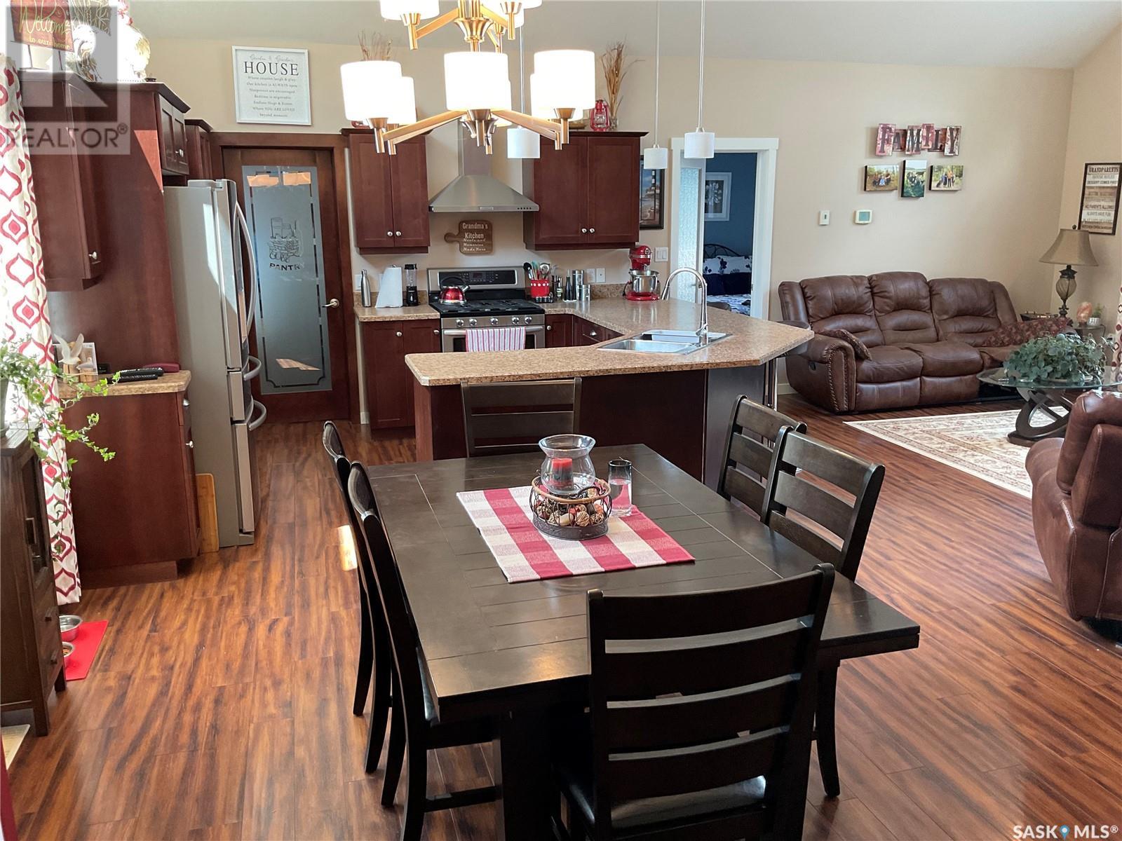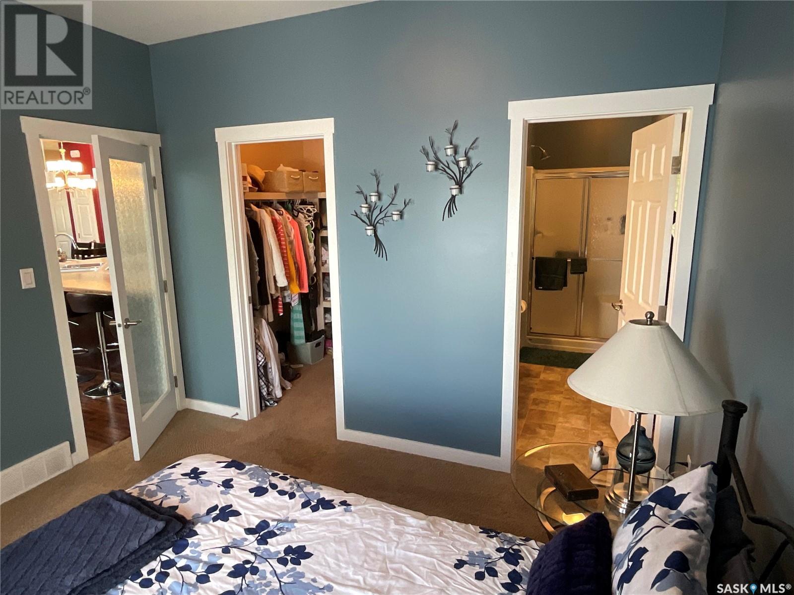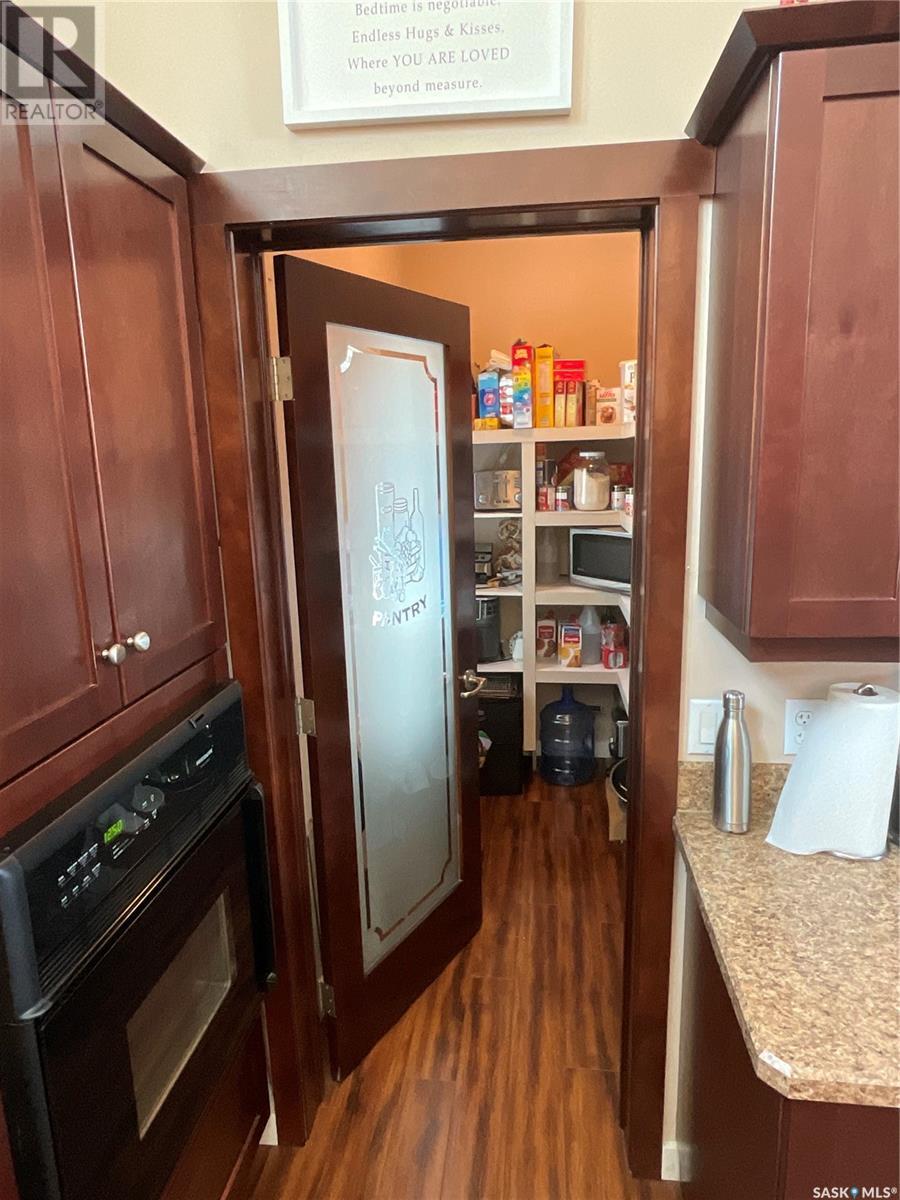 Enjoy the quiet serenity of Wakaw Lake from your beautiful four-season walkout overlooking the lake, only 3 km from the Wakaw town site. At the front you'll find a lovely garden and a covered veranda. Inside the main living area is bright and inviting with huge vaulted ceilings, floor to ceiling windows and laminate flooring throughout. Enjoy the warmth and comfort of the wood burning fireplace, in the spacious living room, overlooking the lake. The kitchen is a dream, offering plenty of cupboard and counter space with a massive built in island with breakfast bar seating, and a walk-in pantry. There's a built in oven, gas range and dishwasher, and the stainless steel fridge is also included. Off the main living area is the primary bedroom suite which has a walk-in closet, a three-piece bathroom and a garden door to the upper deck. Also on the main level are another bedroom, a full four-piece bathroom and the laundry room. The fully developed lower level has a huge family/games room with direct access to the lower deck, an additional two bedrooms and another full four-piece bathroom. Coming out the back, there's a spacious lawn area and a dock onto the lake which is included as well. (id:22211)