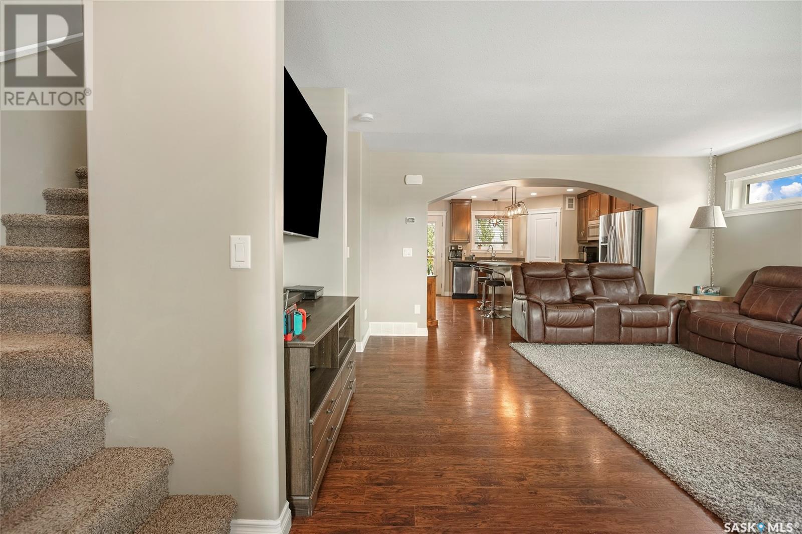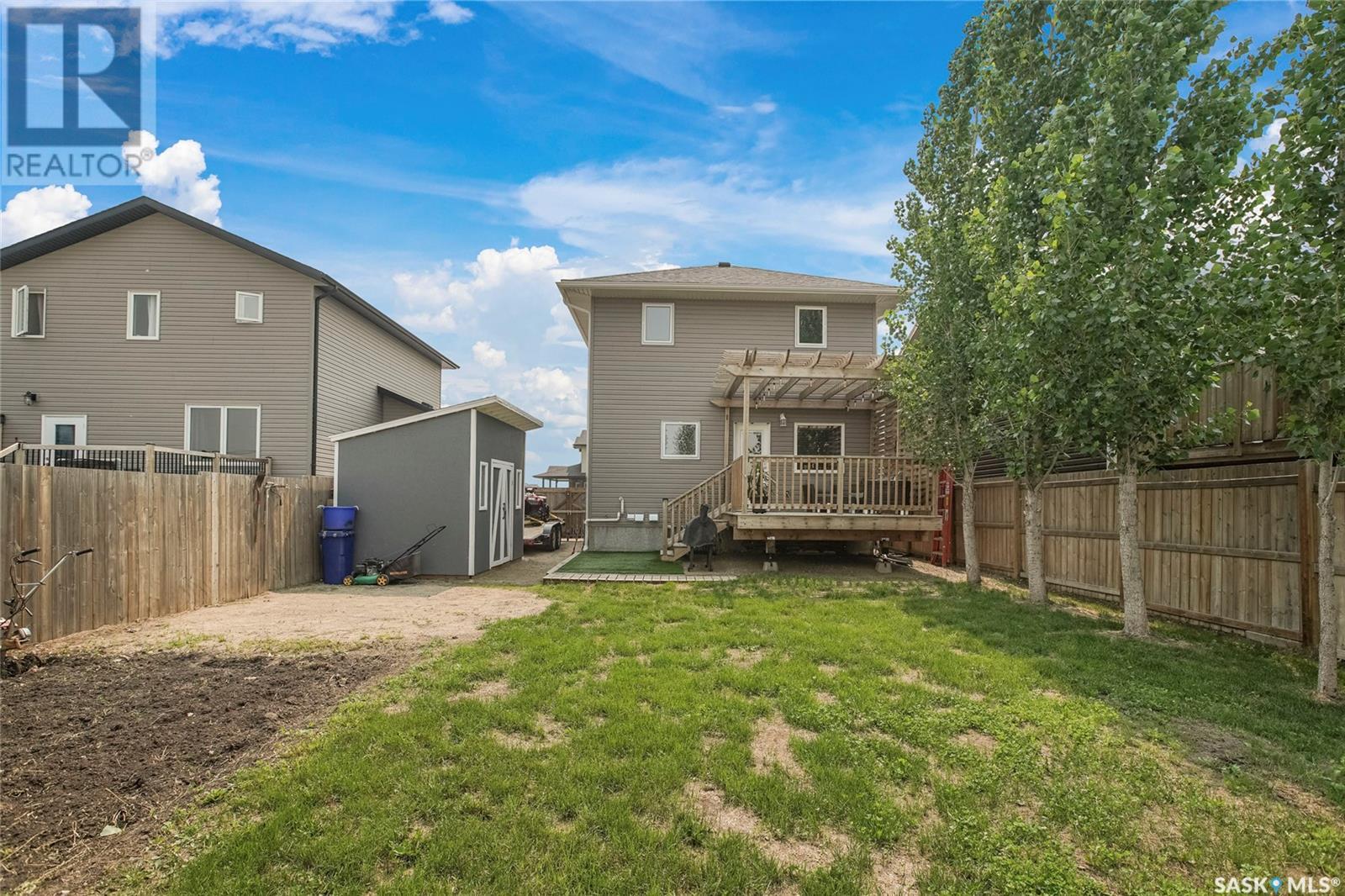 Known to many in Warman as the beloved "Christmas light house" because of its extensive light show and Christmas movie set up-this awesome two storey home is now ready for you to make new family traditions. This beautiful property has been extremely well cared for. As soon as you step onto the lawn you'll enjoy the front yard landscaping complete with pond/ stream. Once you're on the large covered deck- you can imagine enjoying your morning coffee. The main floor has an open concept layout with a large maple kitchen featuring stainless steel appliances and a big corner pantry. Upstairs there are 3 excellent sized bedrooms and 2 full baths. The basement 99% complete with a large family room, and 4th bedroom (basement bedroom doesn't have a closet). There is also a rough in for a 4th bathroom. Out the back patio doors you can enjoy your pressure treated deck complete with privacy wall, additional parking on the side of the home that could easily be used for a drive-thru garage, and a garden area. A must see for any buyer. call your favourite Realtor® today to arrange showing. (id:22211)